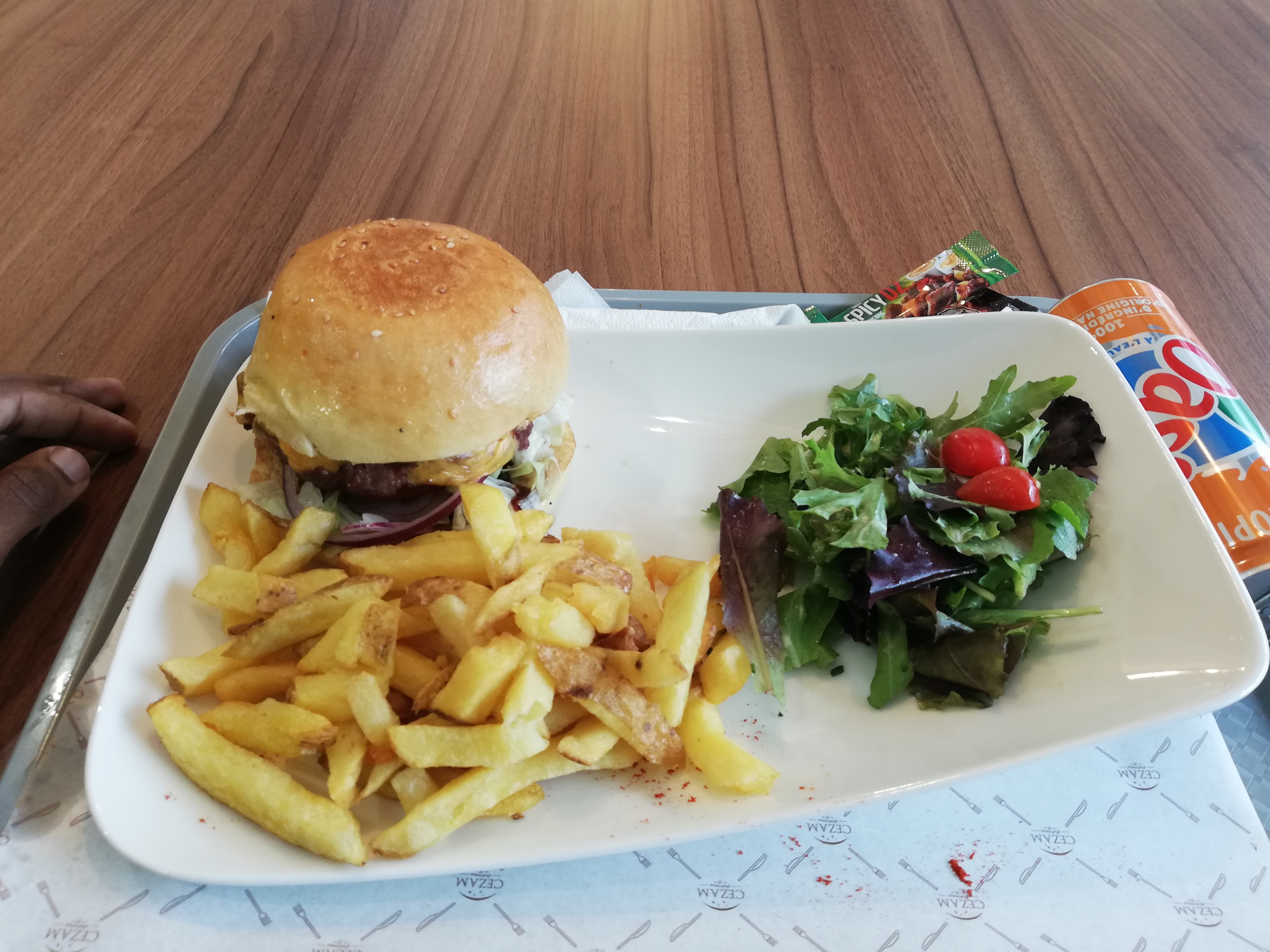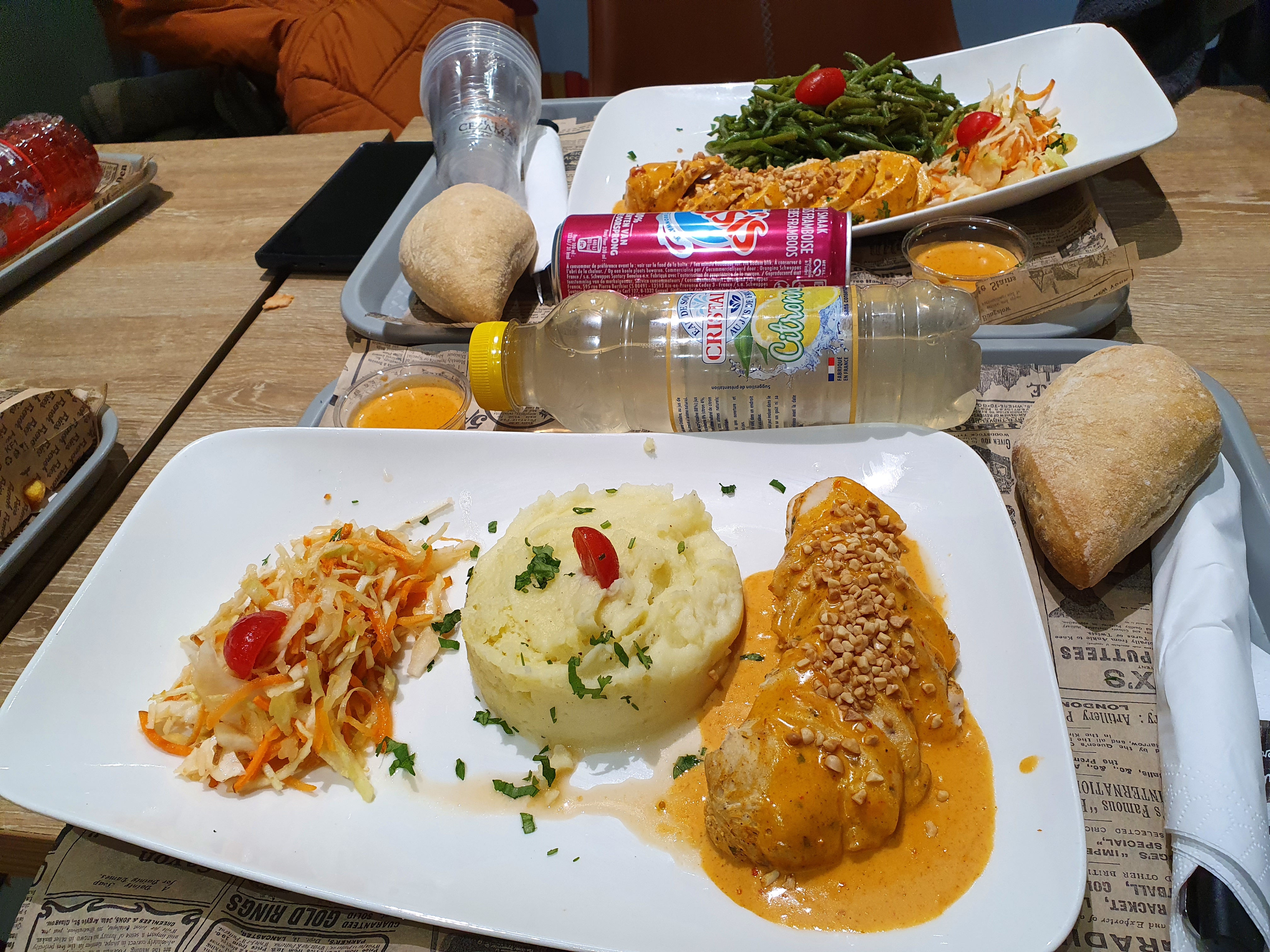 Le restaurant est grand et spacieux et les burgers maison sont délicieux. Malheureusement y a un manque flagrant d'organisation quand on soit obligé de payer pour un café pas au stand café mais plutôt au stand brasserie et fast good. Ce n'est pas normal de commander un café et que le personnel répond qu'ils sont en rupture de stock de dosettes café. Y a plus d'effort à faire sur les desserts qui sont beaucoup trop sucré avec peu de choix