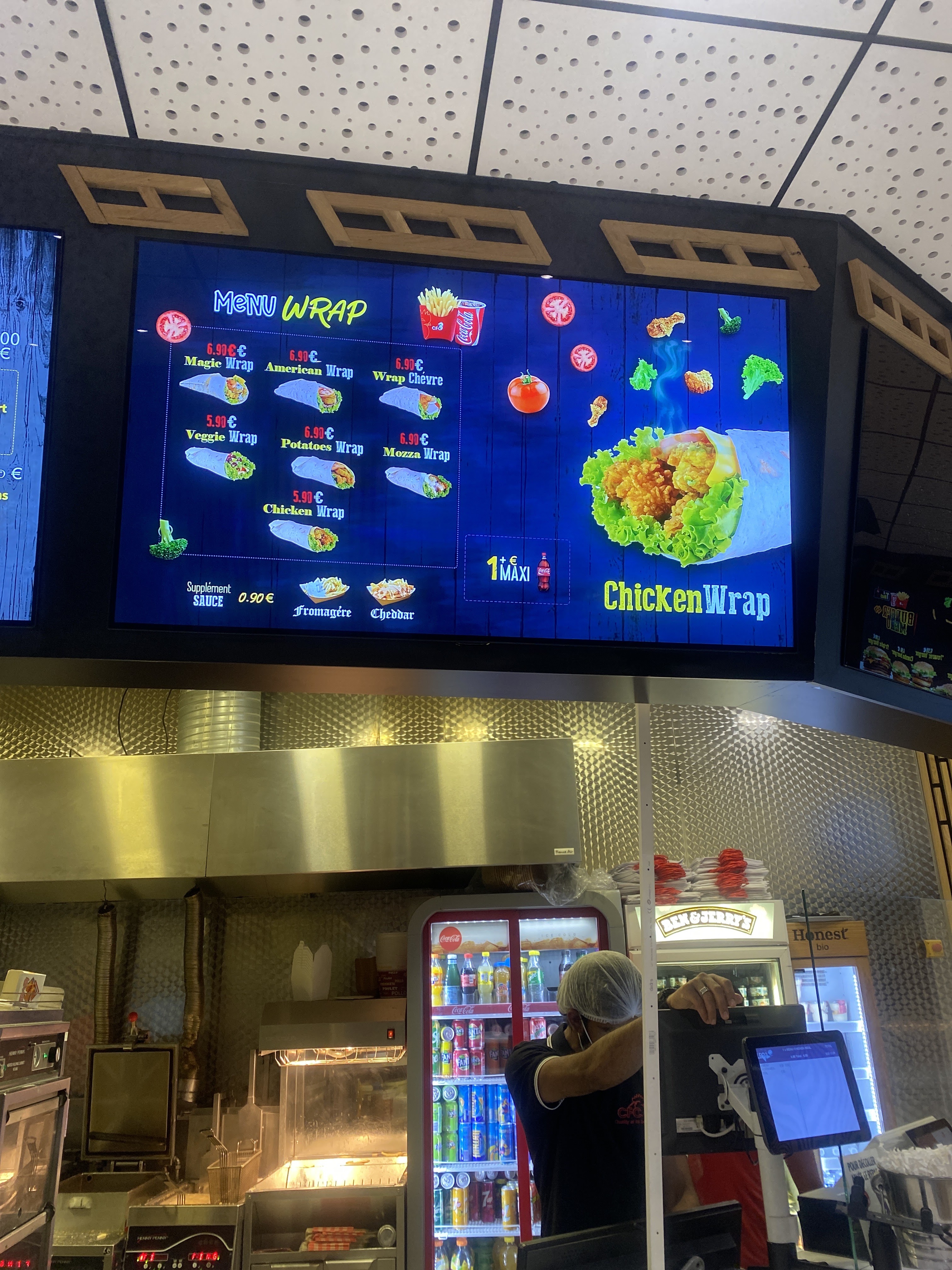 Un peu Lent, pas forcément ultra ultra qualitatif, frites souvent mal cuites, pas assez cuites en fait. Mais regardez le prix… impossible de faire mieux. Et puis pas besoin de prendre la moitié de la carte comme au McDo pour être rassasié. C’est très copieux. Les wraps sont quand même très bons a mon goûts. Gros, copieux et frais. Les sauces sont multiples donc chacun y trouve sont compte. Un peu d’indulgence. Allez-y en sachant ce qui vous attend c’est tout. C’est un fast food pour les jeunes. Si vous voulez quelque chose de mieux alors n’y allez pas tout simplement.