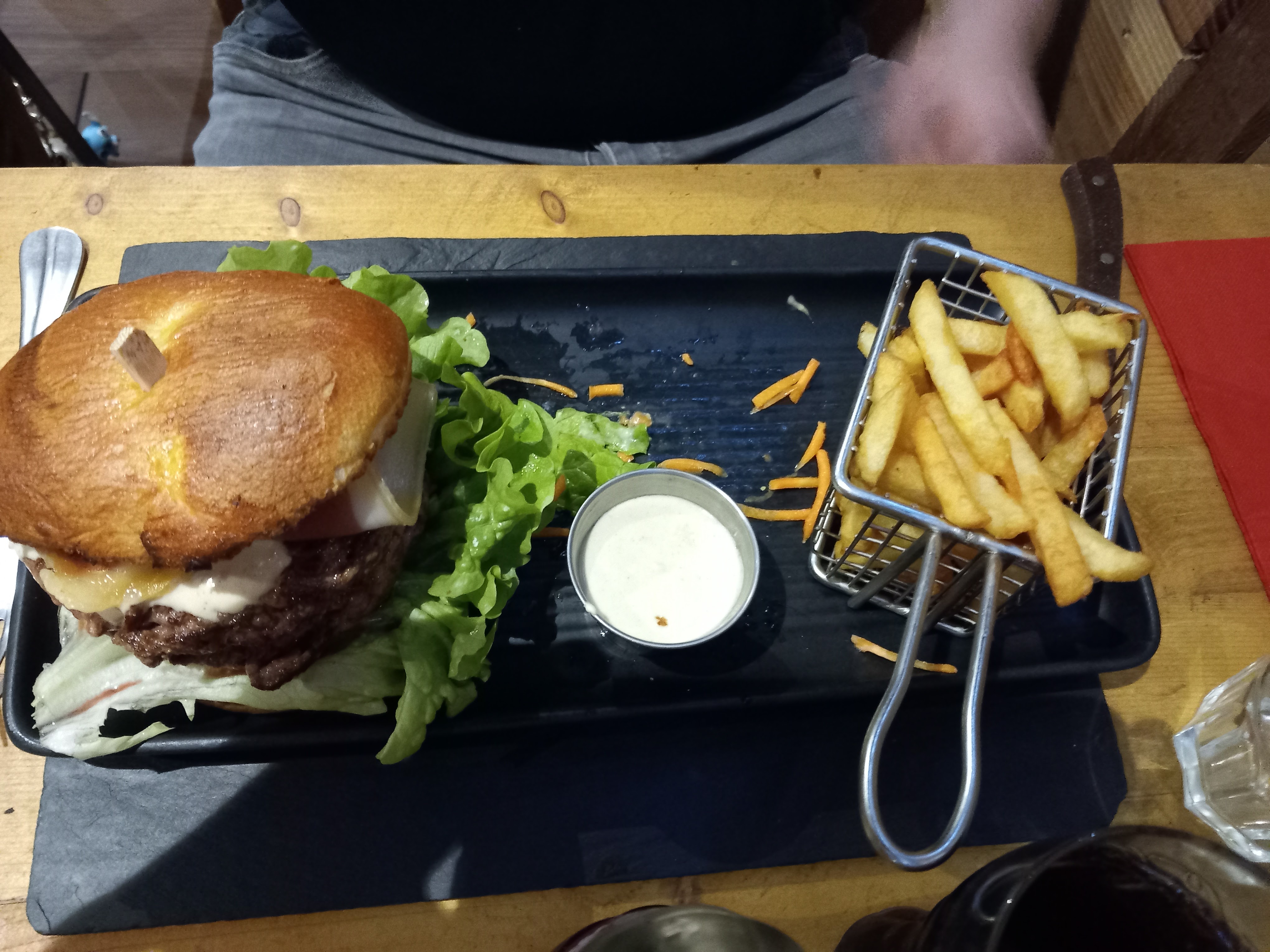 Déco montagnarde sympa. Repas copieux mais qui manque de finesse. Frites servies très cuites et à peine tièdes, jambon dans le Burger très très salé,... Cuisine à améliorer.