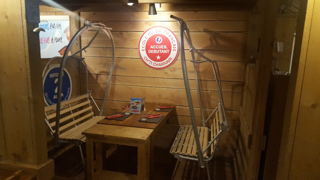 Amateurs de fromage et de plats savoyard, cette adresse est pour vous ! Au menu, de délicieuses tartiflettes, fondues, tablettes ou encore hamburgers façon welsh... Nous nous sommes régalé! Tout ça dans un cadre vraiment sympa...où les skis et télésièges sont roi. Une ambiance chaleureuse et conviviale au parfum typique des plats montagnards. Le petit détail sympathique: la bande son des bronzés dans les toilettes :)