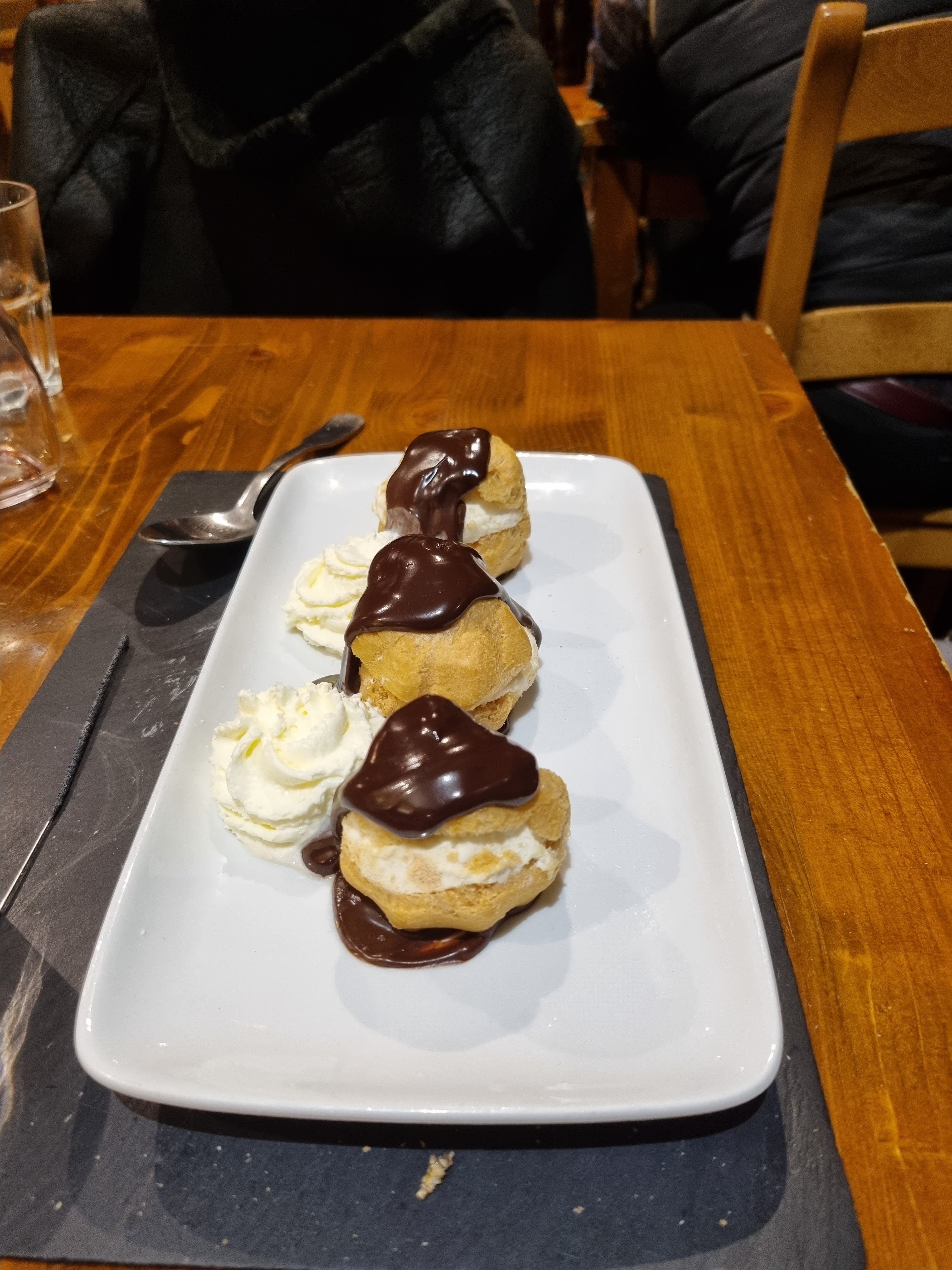 J’étais un peu déçue de la tartiflette car je trouve la portion un peu légère. Par contre mon copain a pris le welsh burger et il avait l’air super bon et très très gourmand ! J’ai été aussi déçue des profiteroles car elles étaient encore congelées quand elles m’ont été servies. Le service était également très très très très long et pourtant nous sommes venus un soir en pleine semaine et y avait quasiment personne dans le restaurant. Le serveur était sympa malgré l’attente qui fut longue. L’ambiance du restaurant est top, on a l’impression d’être en Haute-Savoie