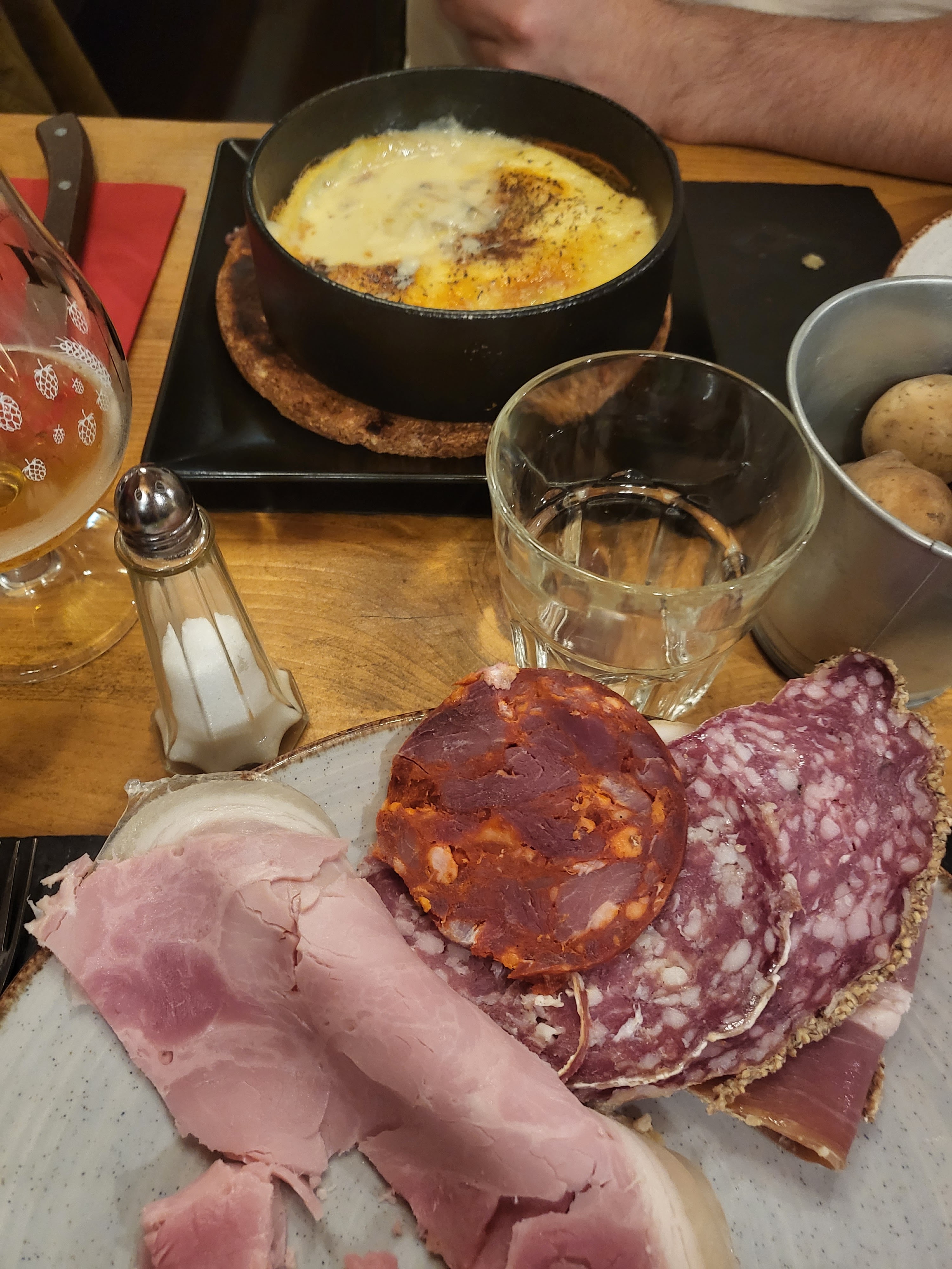 L'endroit parfait pour déguster une bonne raclette. Nous avons choisi la formule raclette a volonté. La charcuterie était de bonne qualité, les petites pommes de terre grenailles très bonne (bien que sur notre seconde tournée de pomme de terre, elles n’étaient pas assez cuite) et le fromage à raclette super bon. Nous avons mangé environ 700g de fromage par personne suivi d'un digestion difficile. Je recommande ce restaurant. La formule raclette à volonté coûte 22€ mais pour de bon manger, vous en avez pour votre argent. Les serveurs étaient très sympathique et venez régulièrement nous voir afin de vérifier que nous ne manquions de rien.