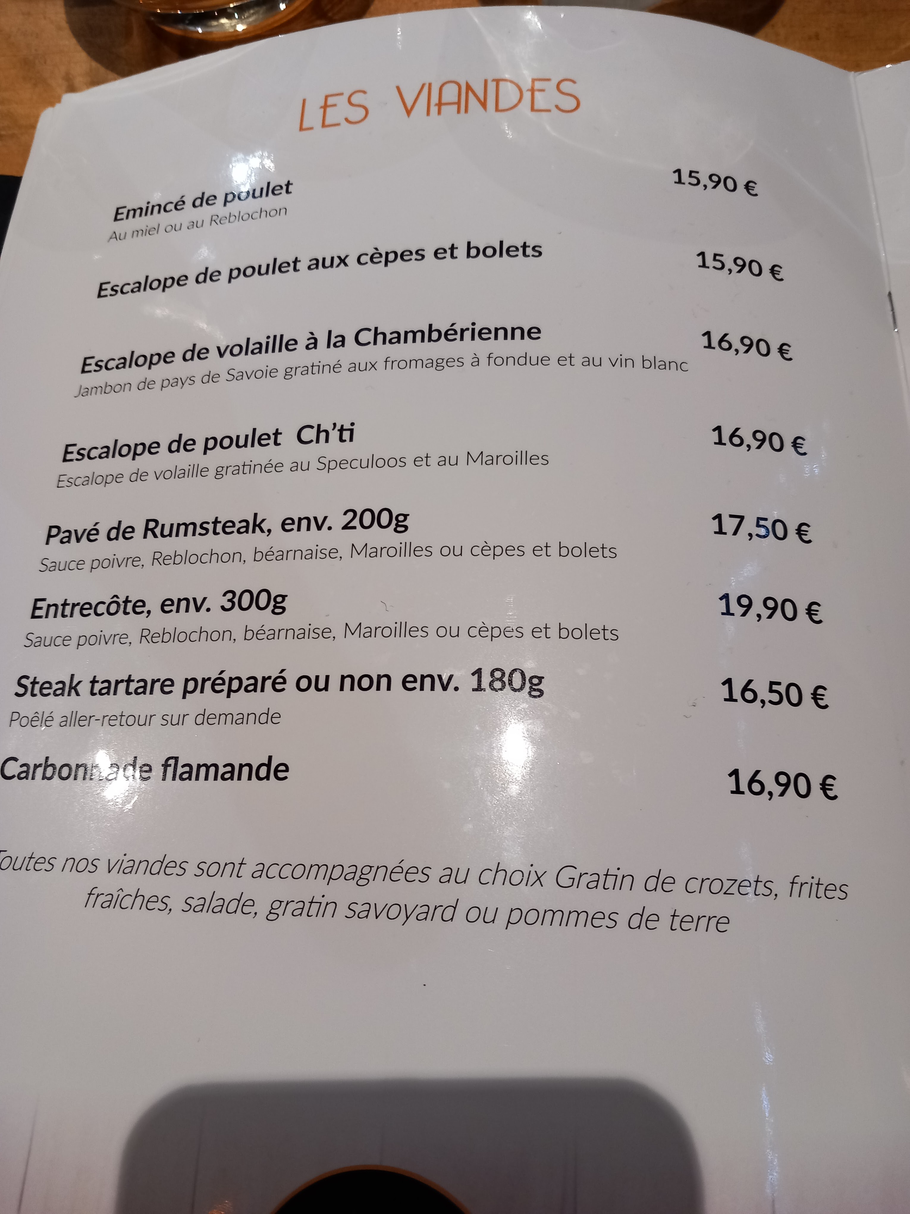 Rien de savoyard (sauf moi..), produits de mauvaise qualité (planche apéro avec du jambon blanc de grande surface, pareil pour le fromage qui n a rien de savoyard..) Accueil et Service déplorable (10 clients dans le restaurant).à éviter, faites une raclette à la maison..