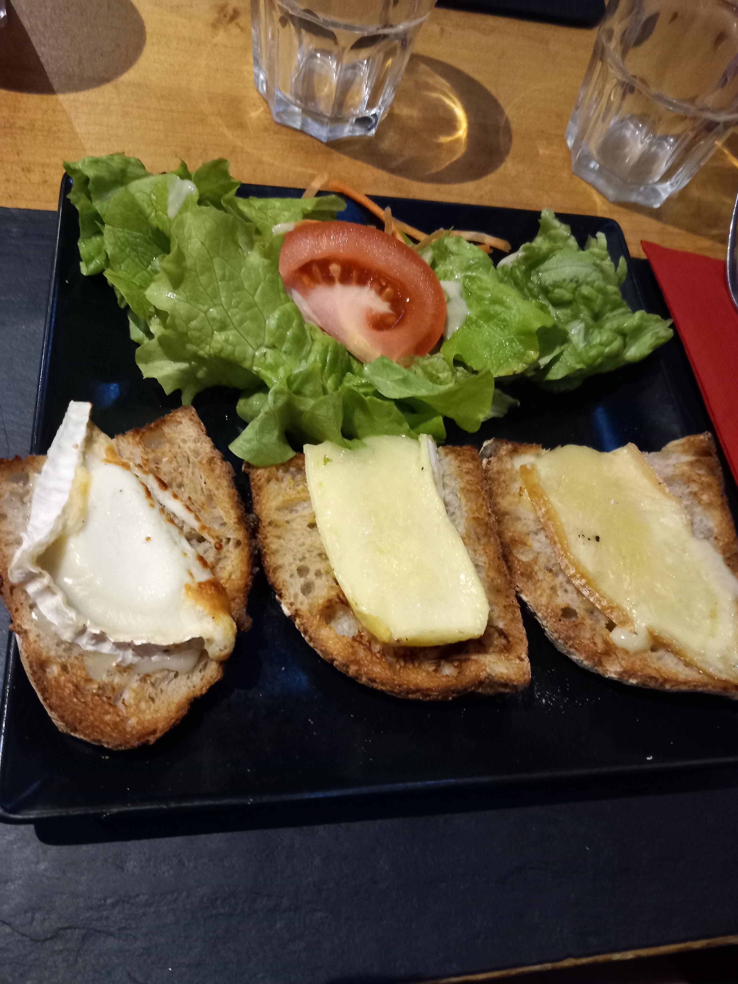 Une boite chaude (mont d'or) plus vendue et pas annoncée. Dans le même style, le camembert aux pommes et miel annoncé est servi avec de la compote de pommes, pas de saveur miel. Les pommes de terres sont flétries et ne donne pas forcément très envie. Pour un midi, le serveur courait dans tous les sens car tout seul. Acceuil agréable tout de même.
