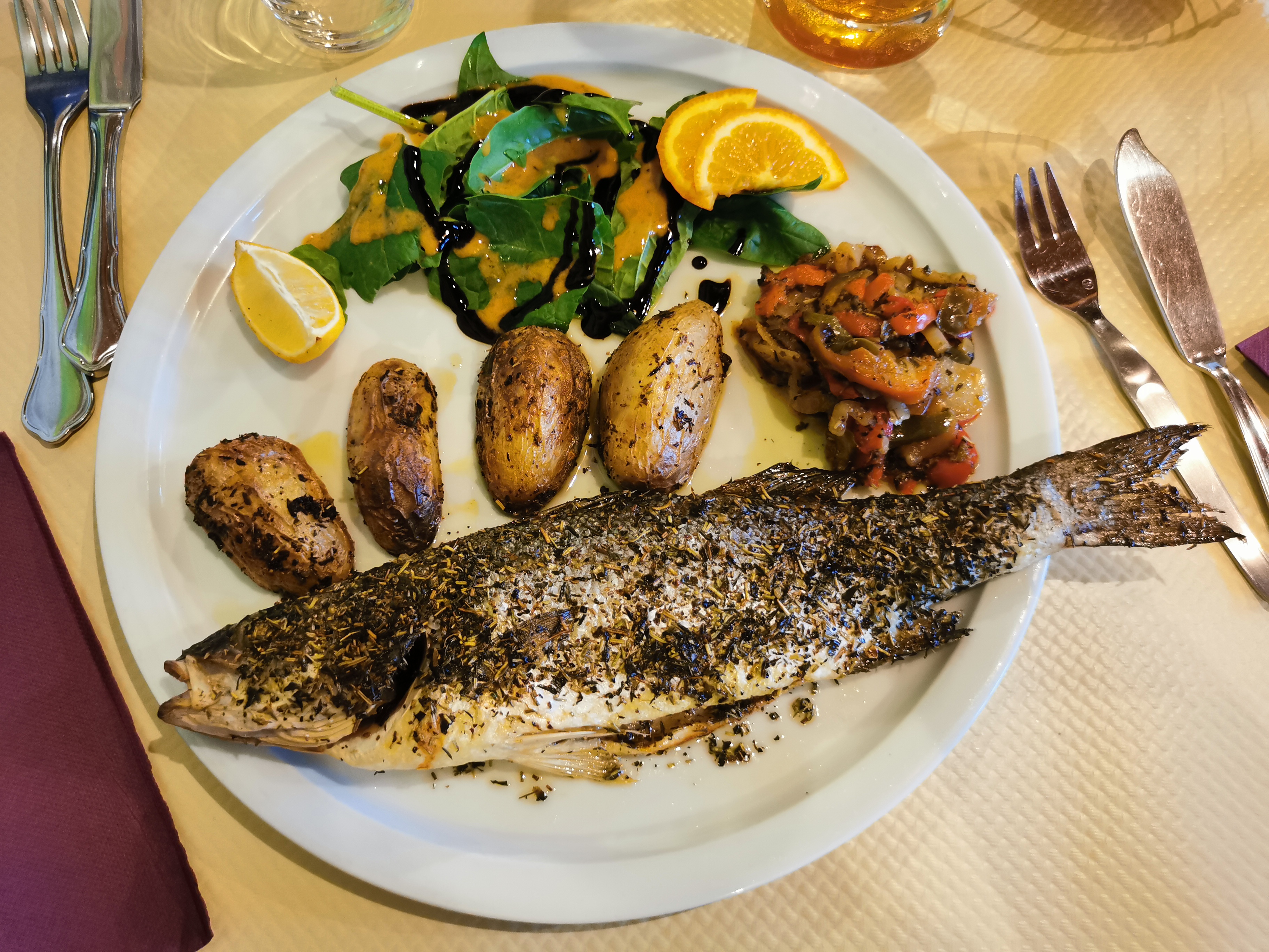 L’extérieur qui ne paye pas de mine mais une cuisine excellente et des plats abondants avec des produits d’une fraîcheur sans pareil. À expérimenter absolument pour son accueil tout aussi chaleureux.vaut le détour. Plat du jour Bar entier très frais et présenté comme un tableau..