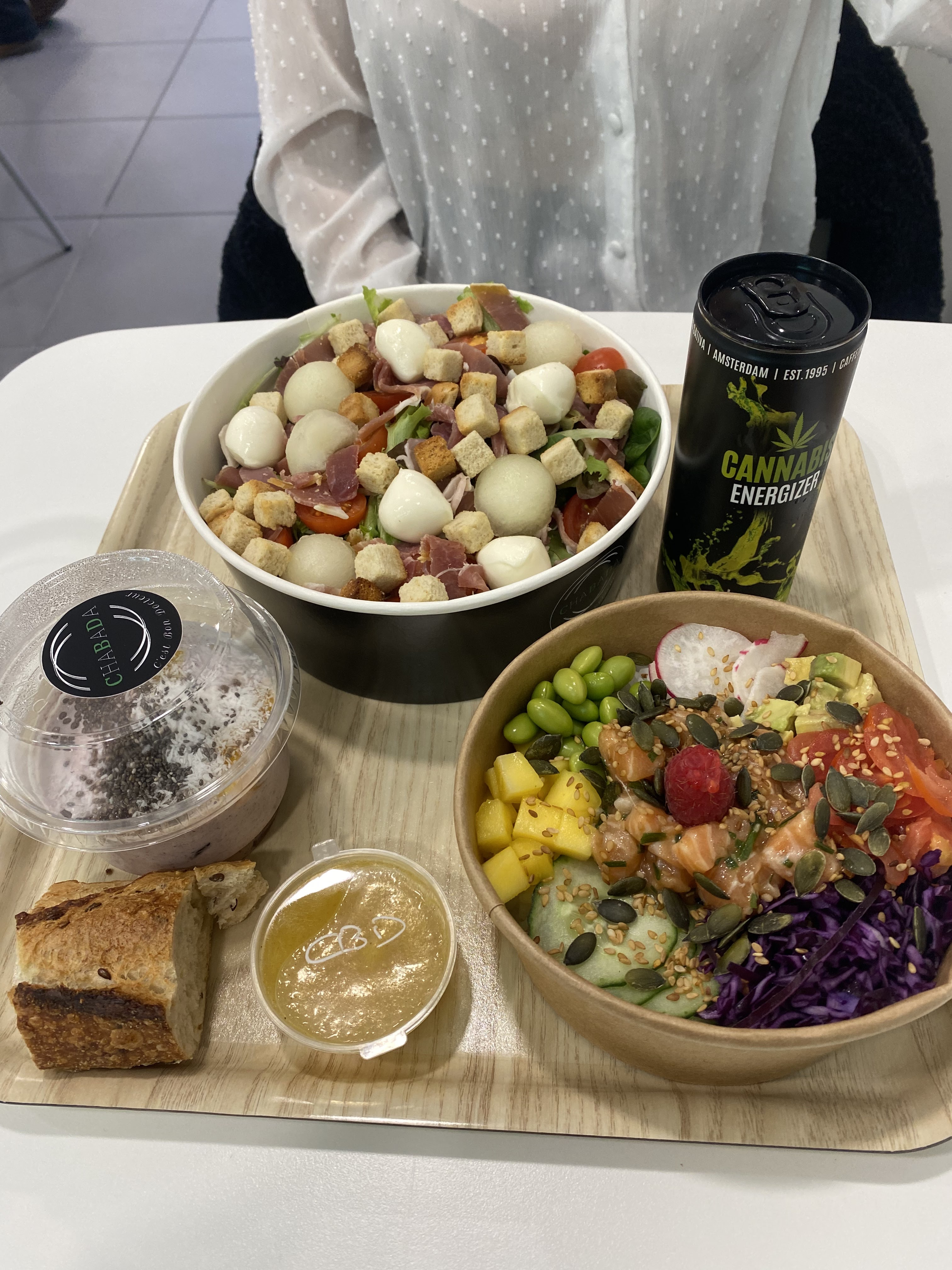 On cherchait un truc rapide à manger le midi avec ma copine, on est allez à chabada par hasard et franchement super découverte ! Sur place l'intérieur est apaisant, et les pokeball sont très abordable (8E le moyen) et très complet 😊 le petit bonus, ils ont des produit au cbd de qualitée ! (Sauce, énergie drink, bière thé et le brownie qui est délicieux)