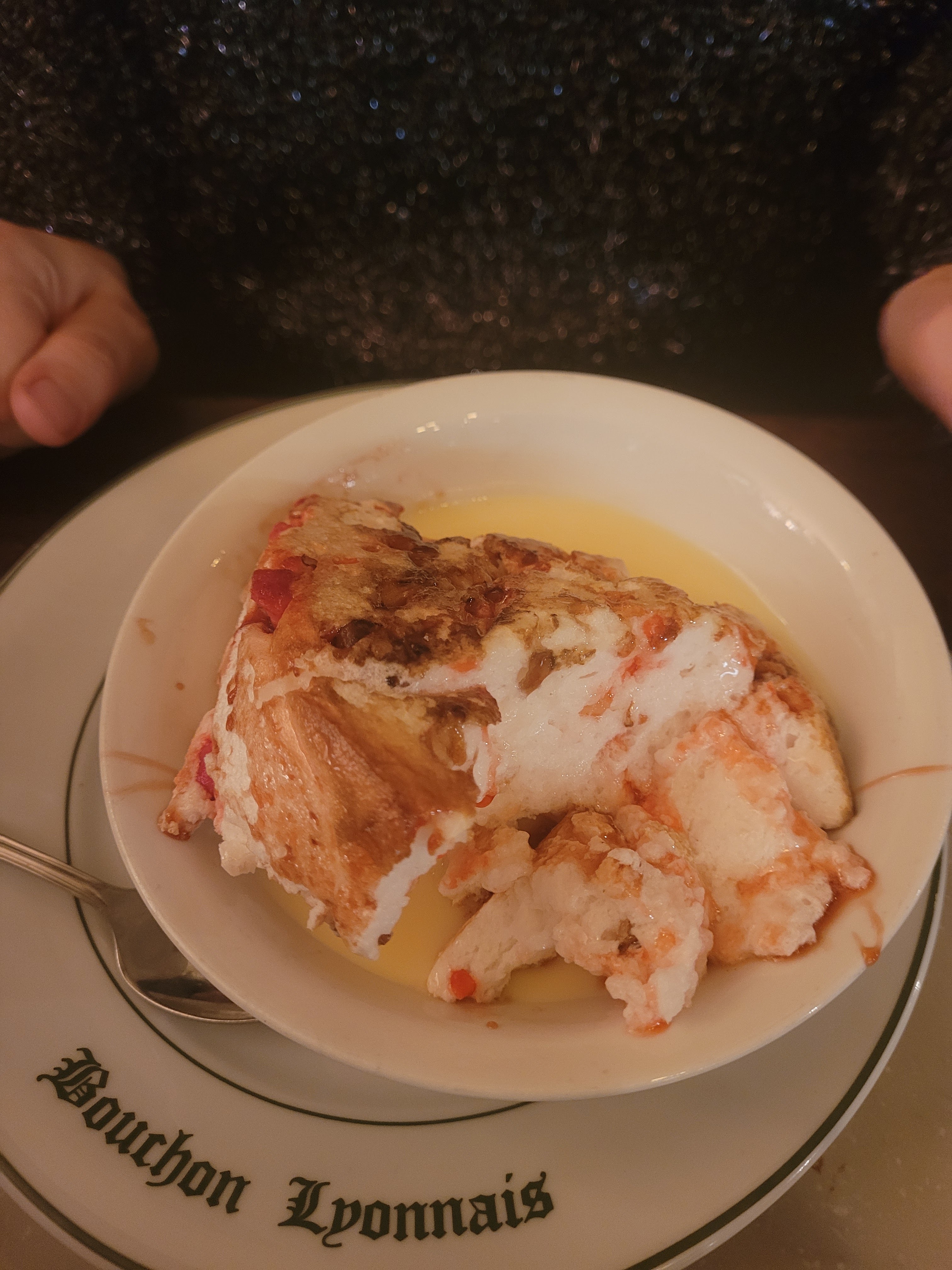 Les cuisses de grenouilles trop cuites, le magret de canard dur comme de la semelle, nous étions dans une salle de 30 m carré les un sur les autres et nous avons eu le malheur de quitter la table deux minutes pour prendre l’air et quand nous sommes revenus, la serveuse avait tout débarrassée même la bouteille d’eau et de vin que nous n’avions pas terminés, du coup nous sommes partis sans terminer notre menus à 39,50€ par personne!! Franchement je n’y retournerai plus dans un bouchon Lyonnais….