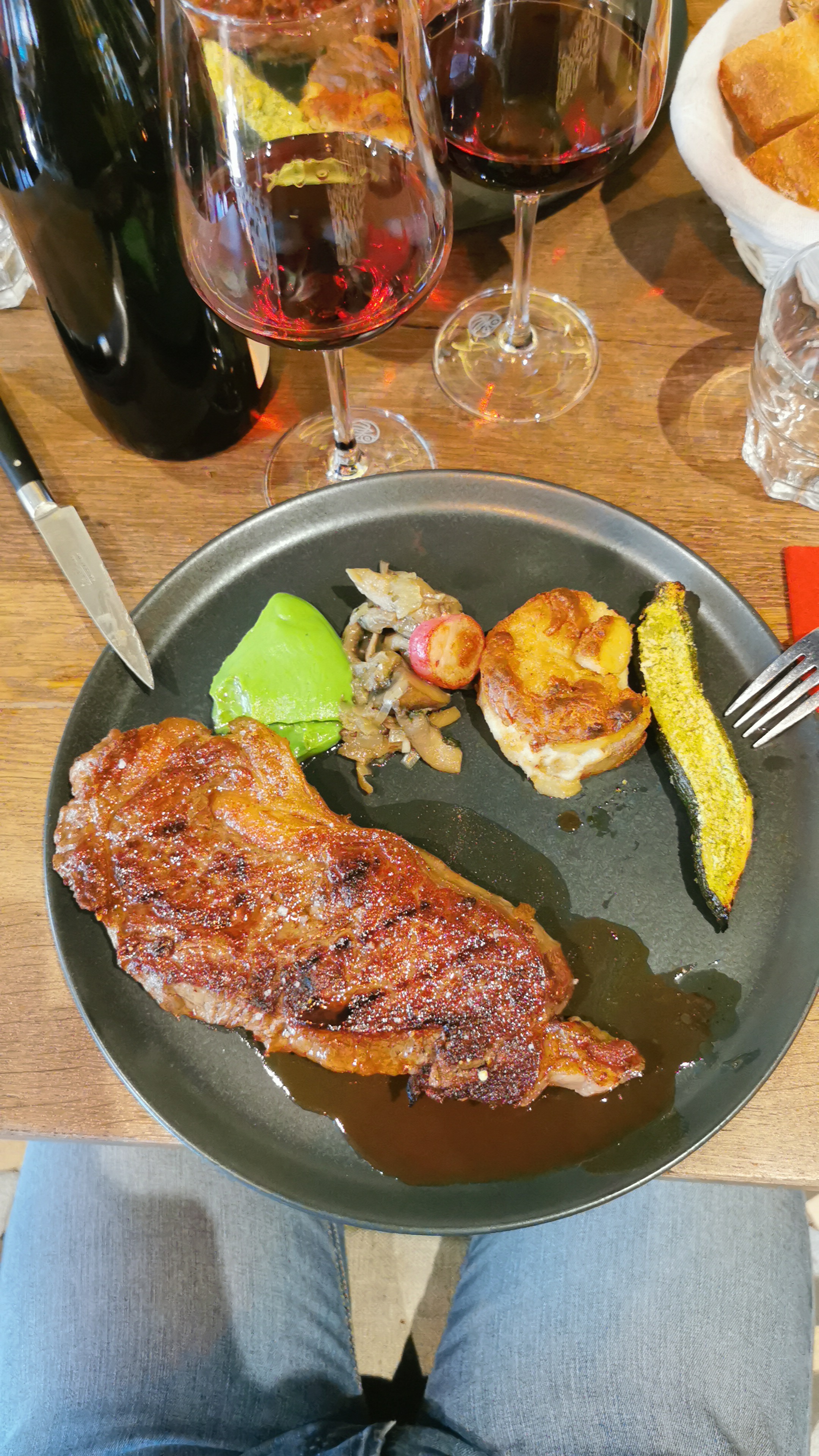 Très bonne viande!!! Une carte de vin gigantesque. Mais accueil sexiste, accompagnée par deux hommes, j'ai été ignorée de l'entrée à la sortie du restaurant. Le seul regard que j'ai pu échanger avec la serveuse était lorsqu'elle nous a incité à reprendre une coupe de champagne... Expérience bancale