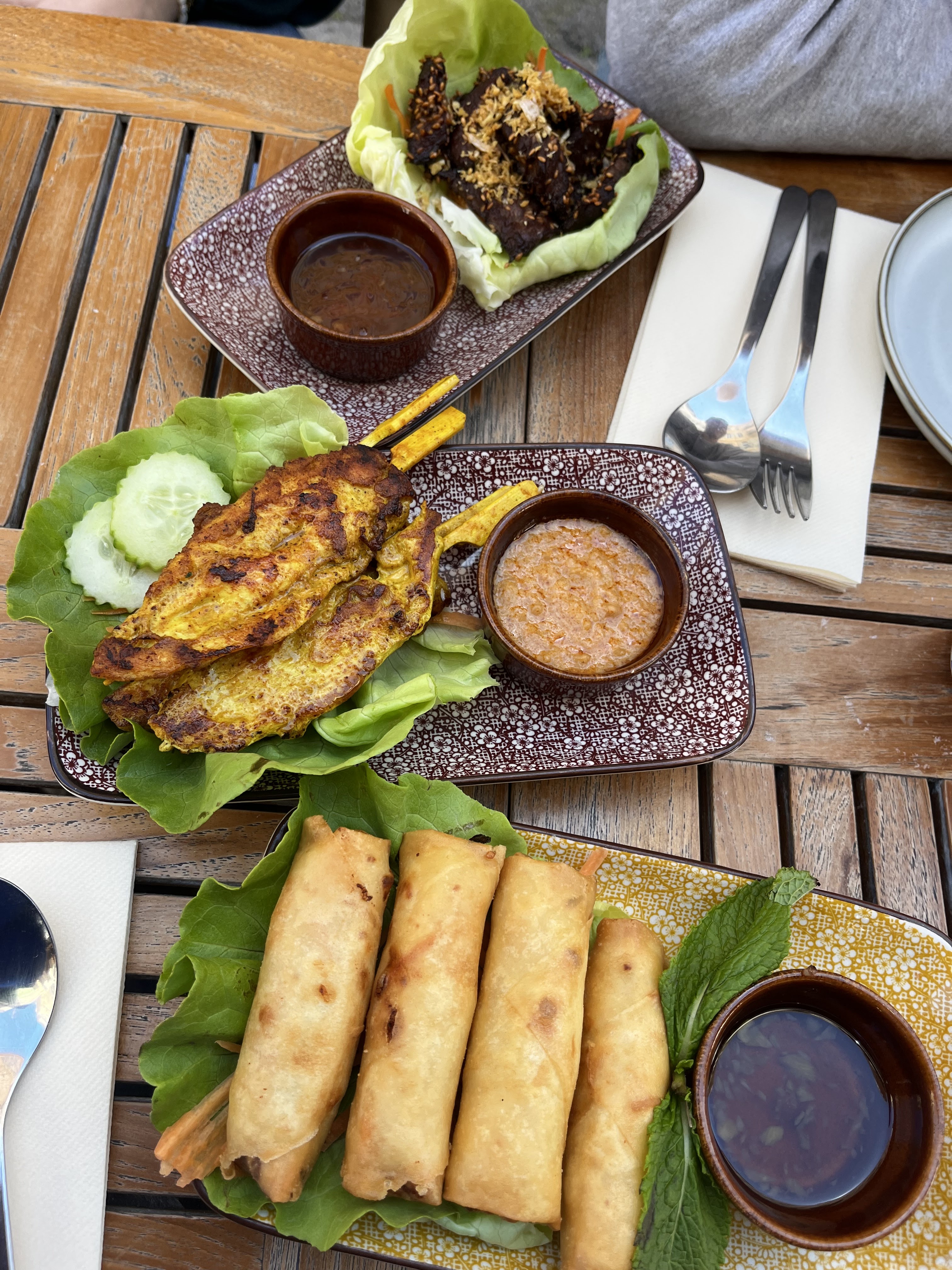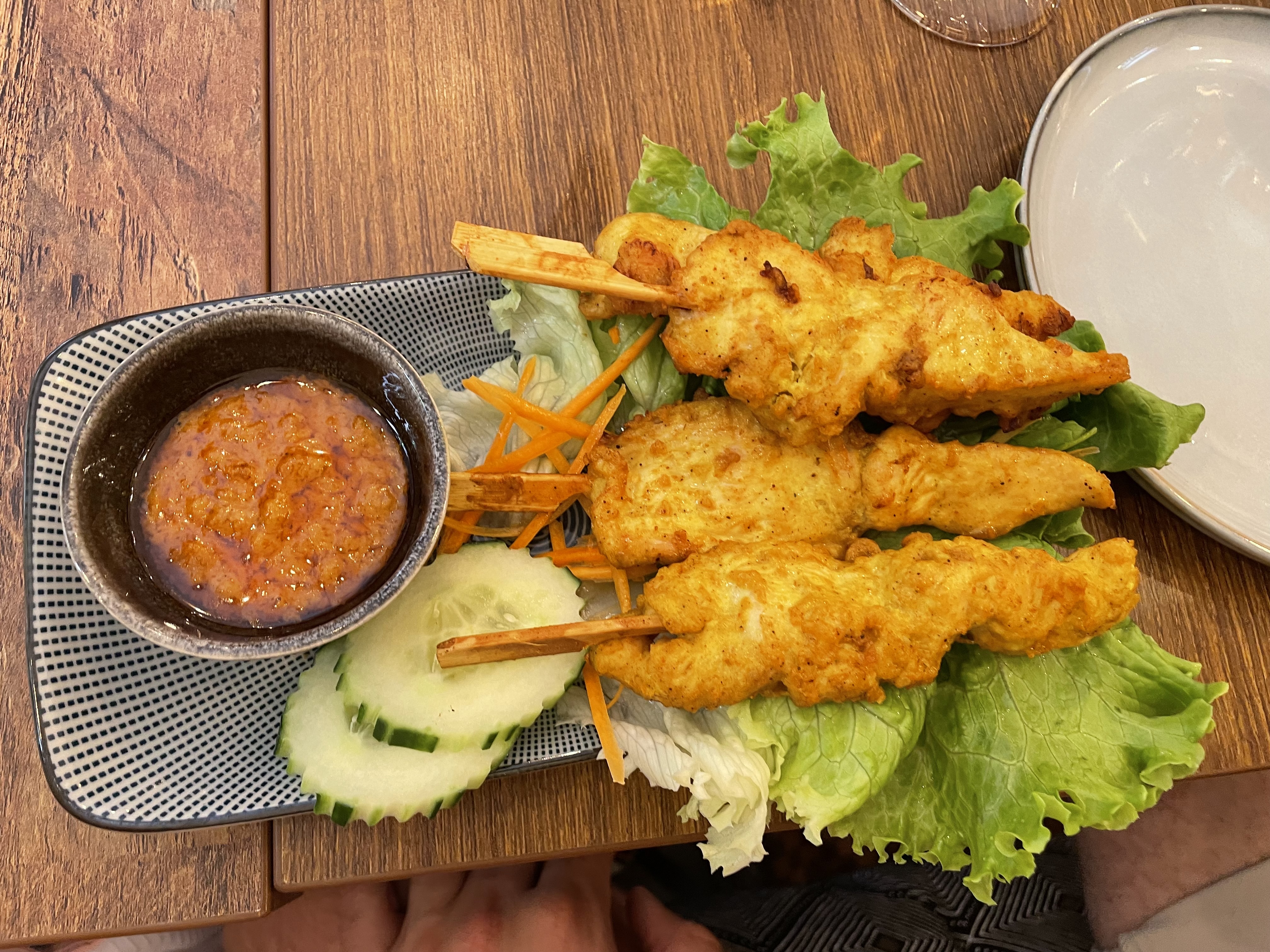 Nous y avons mangé à 3 hier. Accueil : parfait, 2 jeunes personnes fort sympa. Carte : pas mal de choix En terrasse, dans une petite rue pas très fréquentée par les voitures. Nous avons prix en entrée des nems vege, des brochettes de poulets sauce cacahouète, un délice. En plat principal, un pad thai crevette et un massaman kai poulet pour moi. Plats délicieux, très copieux. Et en prime, la note n'est pas salée. Allez y les yeux fermés.