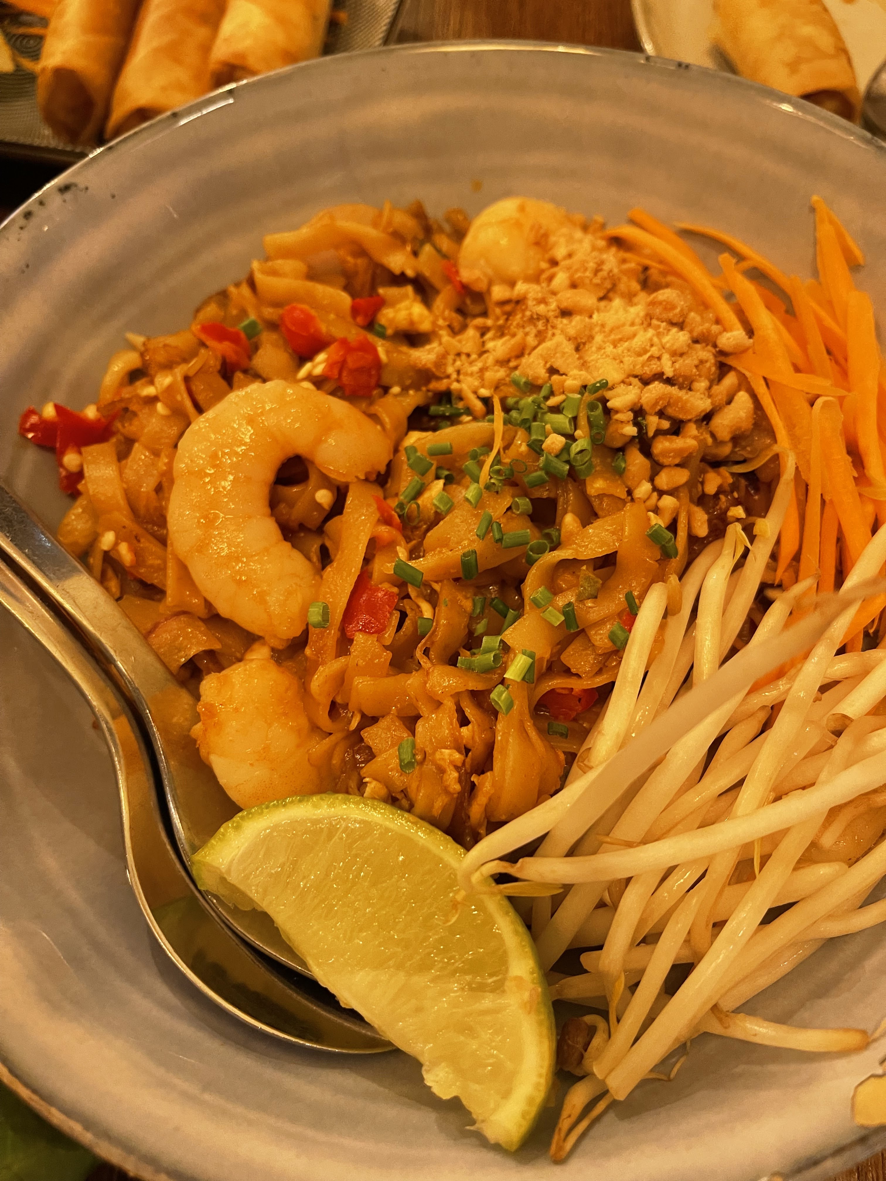 Super resto thaï !! Nous avons pris 2 pad thaï végé et des nems aux légumes 🌱 Un délice et prix très corrects, je recommande !
