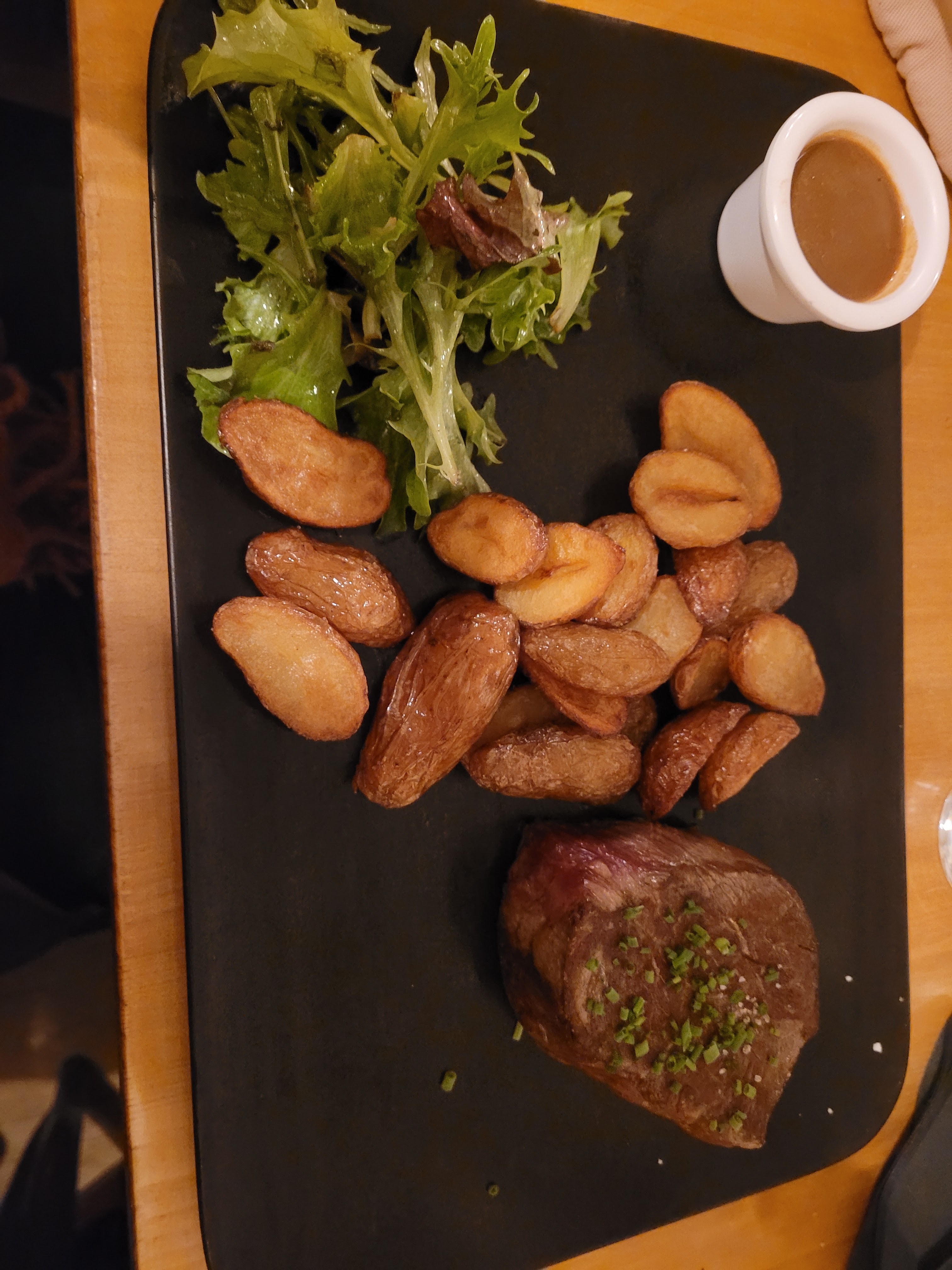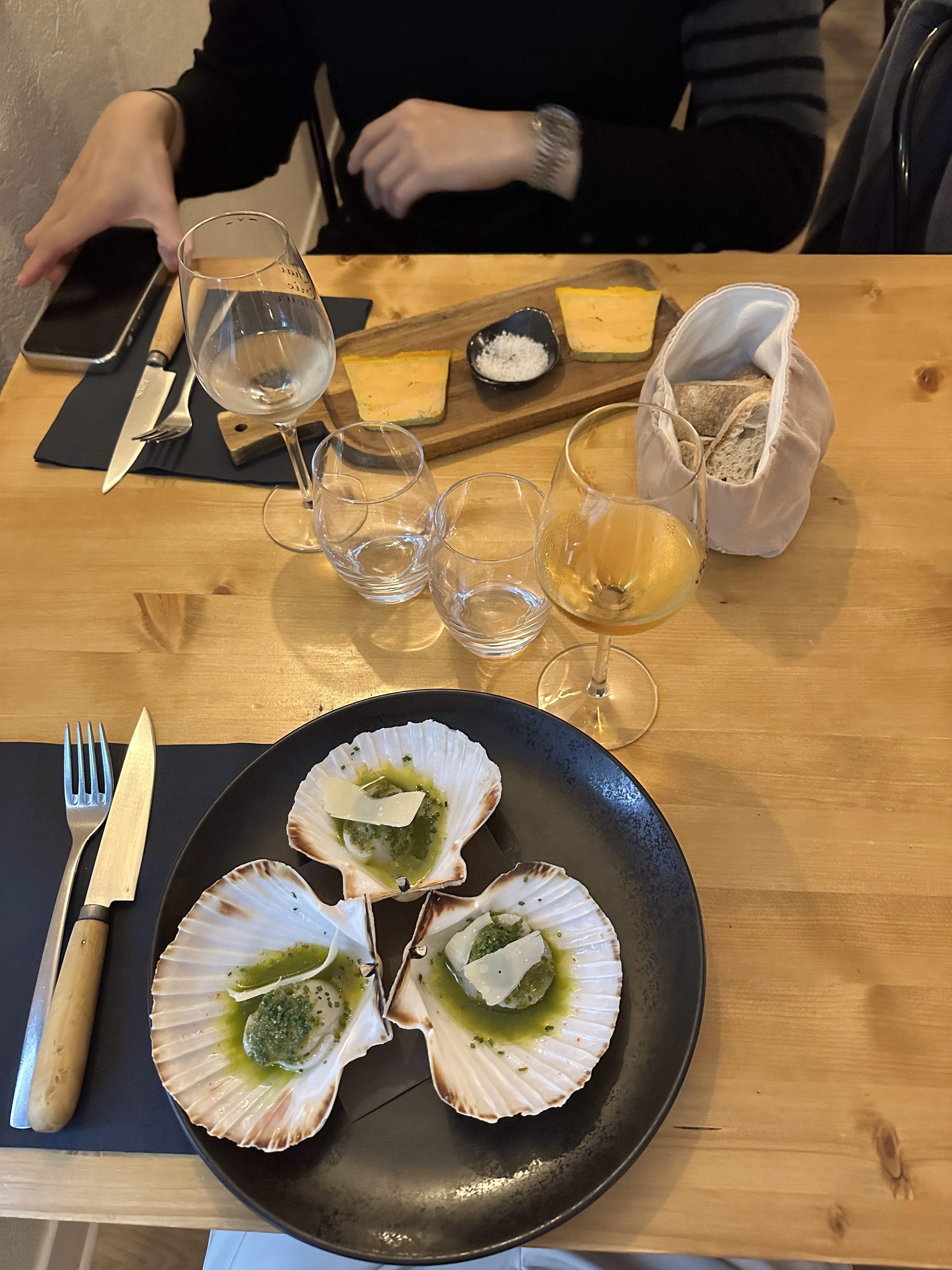 C’est un restaurant français très mignon avec beaucoup de client donc n’oubliez pas de réserver au téléphone. Le personnel est très sympas et à l’écoute (mais un chouïa débordé). Les tables sont bien espacé et les clients sont assez respectueux envers les autres. On a pas besoin de crier pour communiquer entre nous. La cuisine est très bonne. On a adoré les coquilles saint Jacques car c’était très frais (pas trop cuit) et surtout assaisonné par du citron je pense. Le foie gras avait une texture très crémeuse. D’après le serveur, il a été traité par du cognac si mes souvenirs sont corrects. En ce qui concernant les plats, la seule chose que j’ai retenu sont les petites pommes de terres très croustillantes. La viande était correcte, tout comme le dessert. Nous avions pris des verres de vins blanc et rouge. Il faut bien préciser ce dont vous aimez au serveur pour ne pas avoir de surprise ! Il y en a pour tous les goûts.