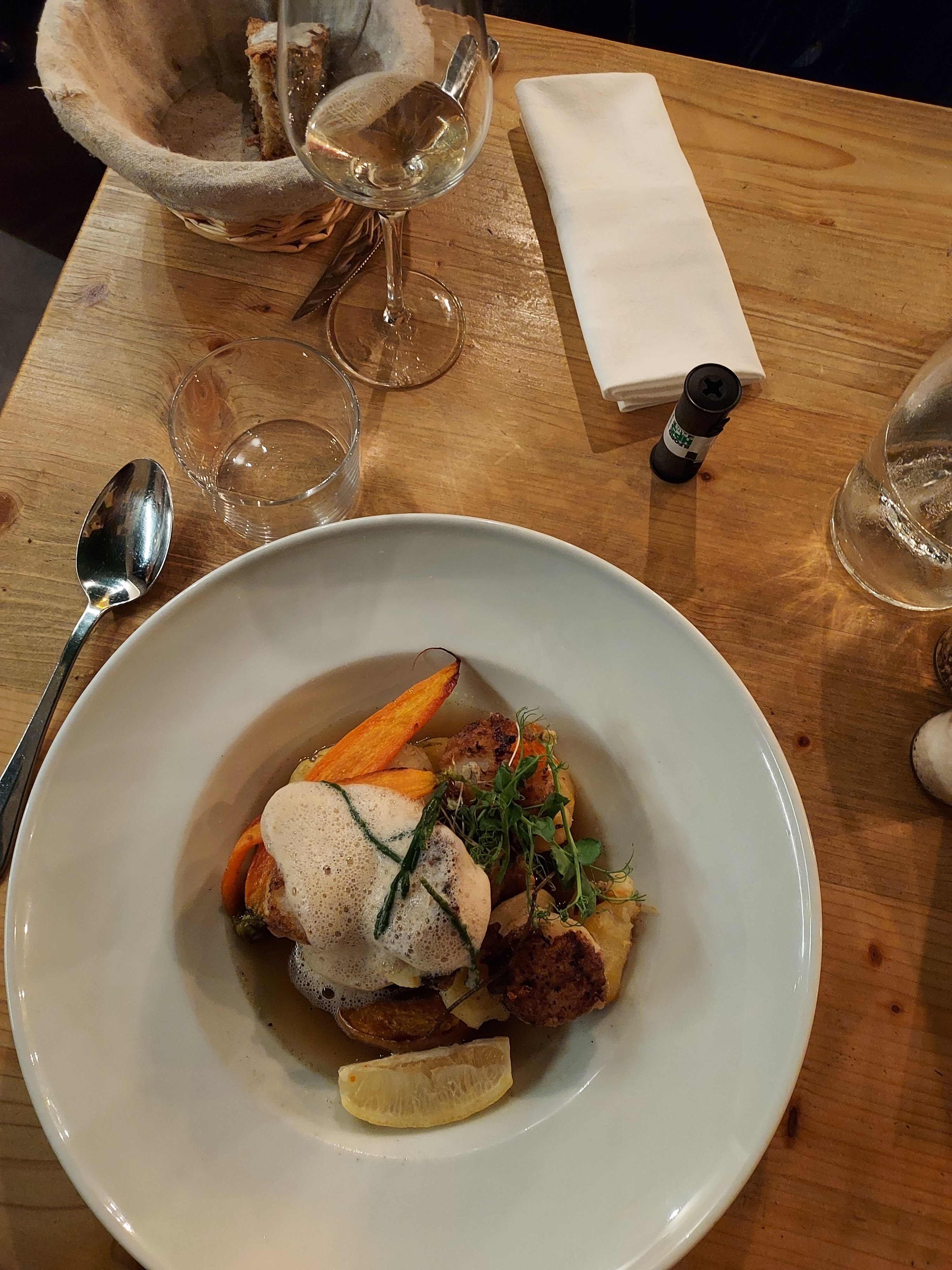 Ce midi, nous avons testé ce nouveau restaurant qui propose une carte qui a donné envie à tout le monde : gourmande, élaborée, pour un prix vraiment raisonnable ! Nous avons été conseillé sur un vin très goutu de la région par le patron, qui a été aux petits soins avec nous. Je conseille cette adresse, parfaite pour déjeuner (prochaine fois nous essaierons le soir, et la terrasse qui a l'air top)