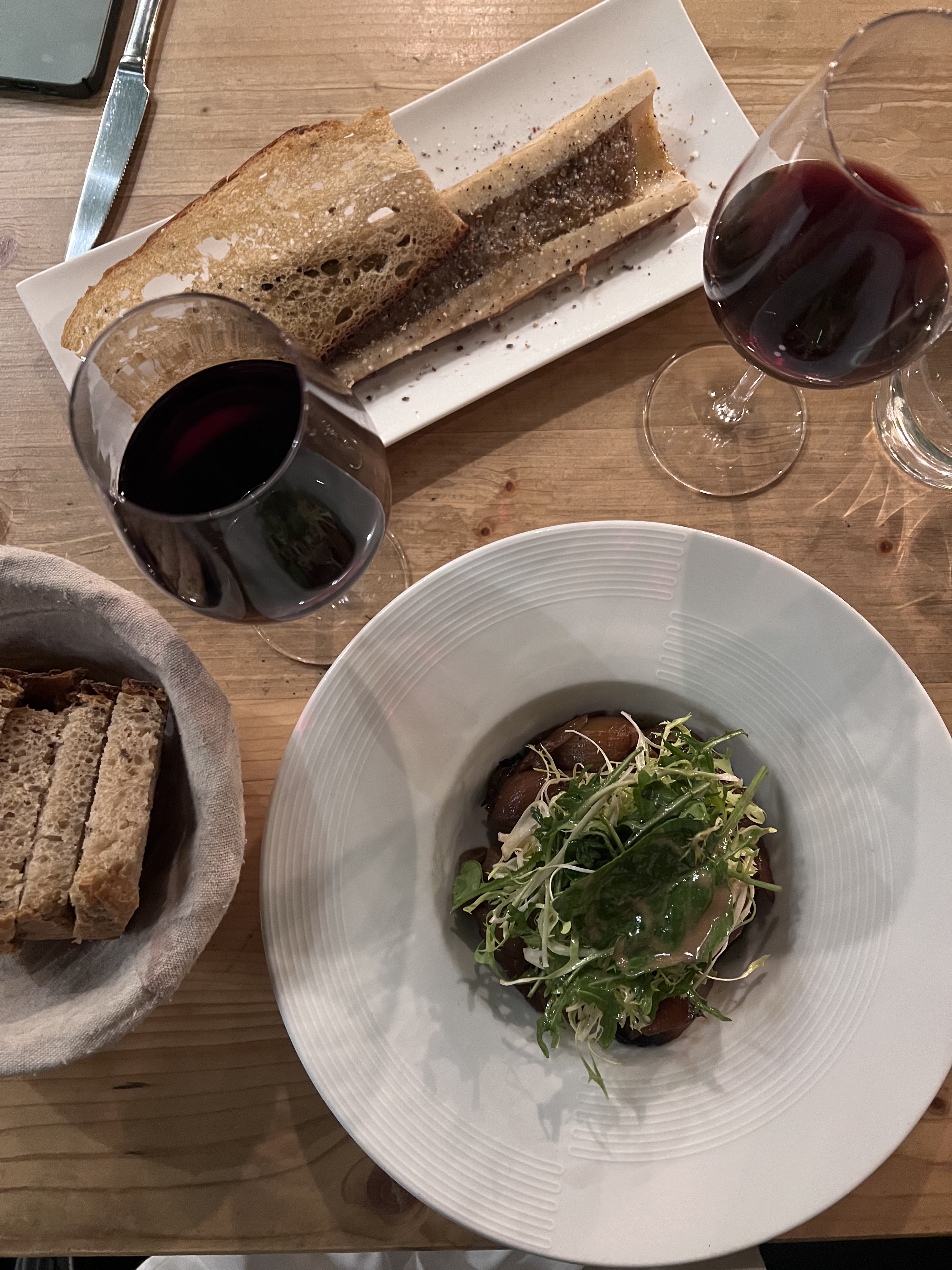 Nous étions trois mercredi soir : très bon accueil, et repas mais malheureusement la nuit j'ai été malade : vomissements. J'avais pris le tartare de veaux avec l'os à moelle et après l'entrecôte. Pour les deux autres aucun problème (camembert rôti, tatin échalote puis chipiron et pavé de veaux). Je ne sais pas si d'autres clients on été malade mais pas cool d'aller au resto et de se retrouver ko.
