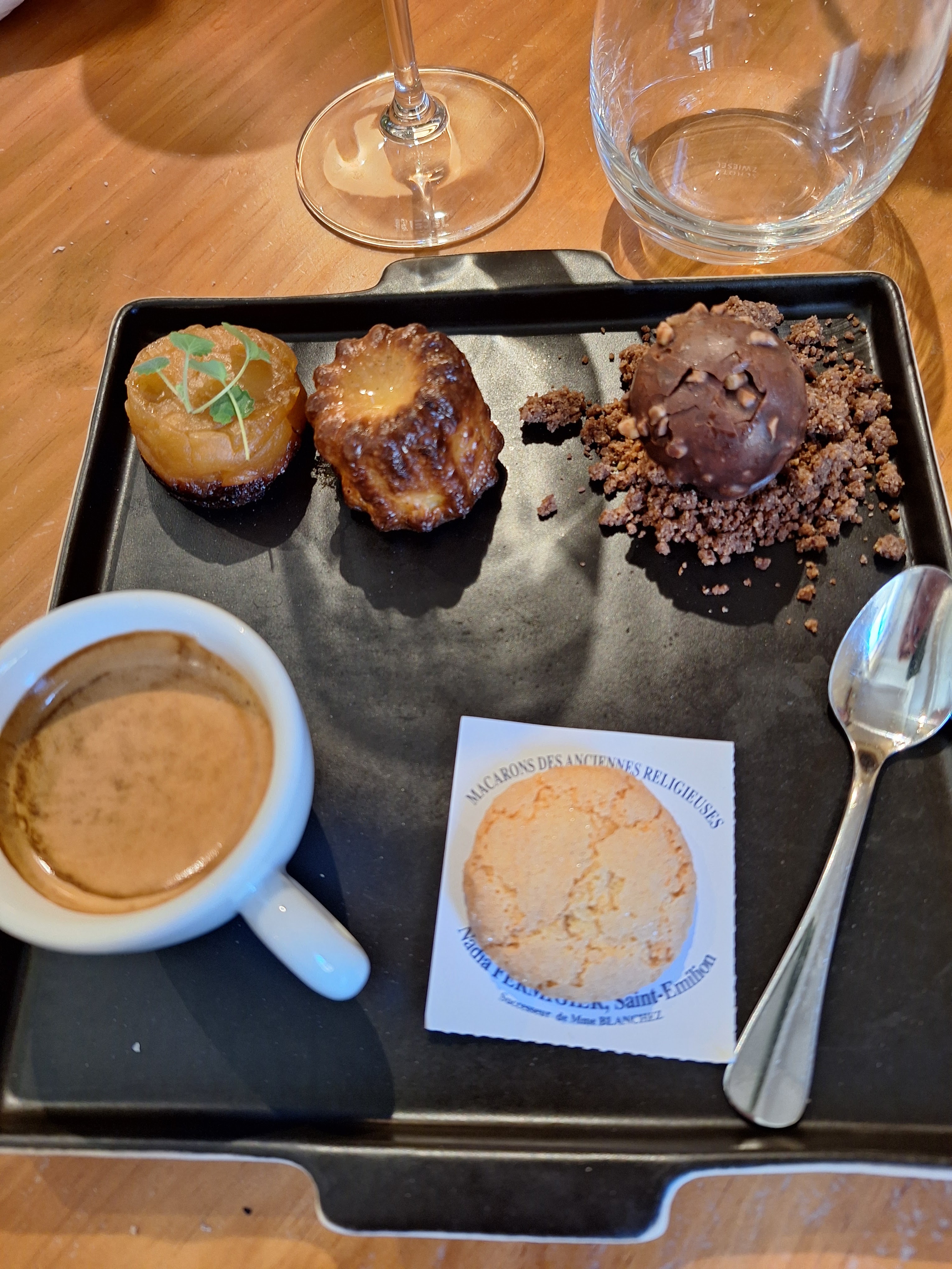Un agréable moment dans ce jolie petit restaurant décoré avec goût. Des serveurs souriants et qui vous accueillent tout au long du repas avec humour et qui ont pris le temps d’échanger avec nous sur nos vies respectives. Nous nous sommes vraiment régalés d’autant plus avec la petite attention des cannelés maison. Les assiettes sont joliment préparés. Nous reviendrons dès notre prochain passage à Saint Emilion.
