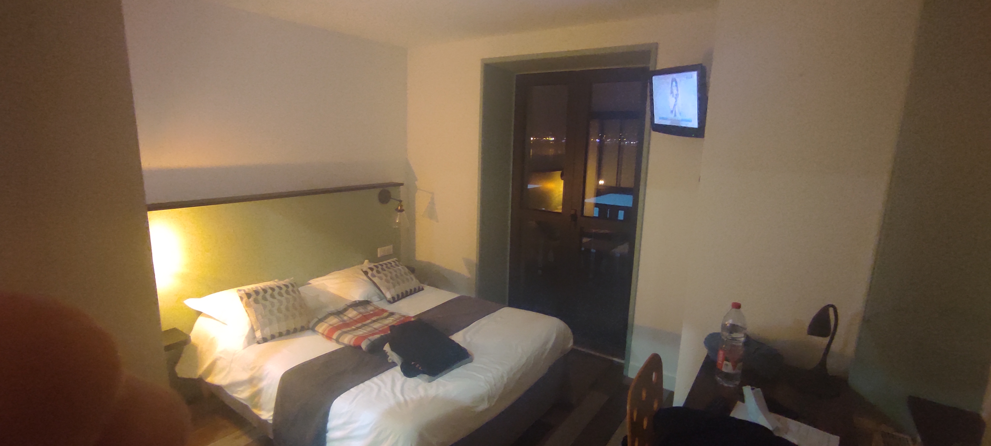 Petit hôtel bien situé, à l'autre bout du lac par rapport à la ville. Plusieurs points : L'accueil, c'est le minimum, des efforts à faire. Les repas, c'est correct mais le pique nique est un peu limite (en remplacement de votre déjeuner si vous sortez) L'hôtel et la chambre, aucun charme, aucun effort pour la décoration. Ne cherchez pas dans la chambre, y'en a pas du tout. La télé est perchée tout en haut du mur comme à hôpital, aïe mon cou... Pas de chauffage dans la chambre à notre arrivée, il a fallu toute la soirée pour nous réchauffer. Pas de rideaux dans la chambre et les volets laissent passer la lumière du jour, pas facile pour la grâce matinée. Le vent frappe de plein fouet la façade de l'hôtel, sans les volets ça siffle sans arrêt dans les fenêtres. Bref c'est bien dommage, j'ai pas eu l'impression d'être venu dans un hôtel, surtout vu le prix payé.
