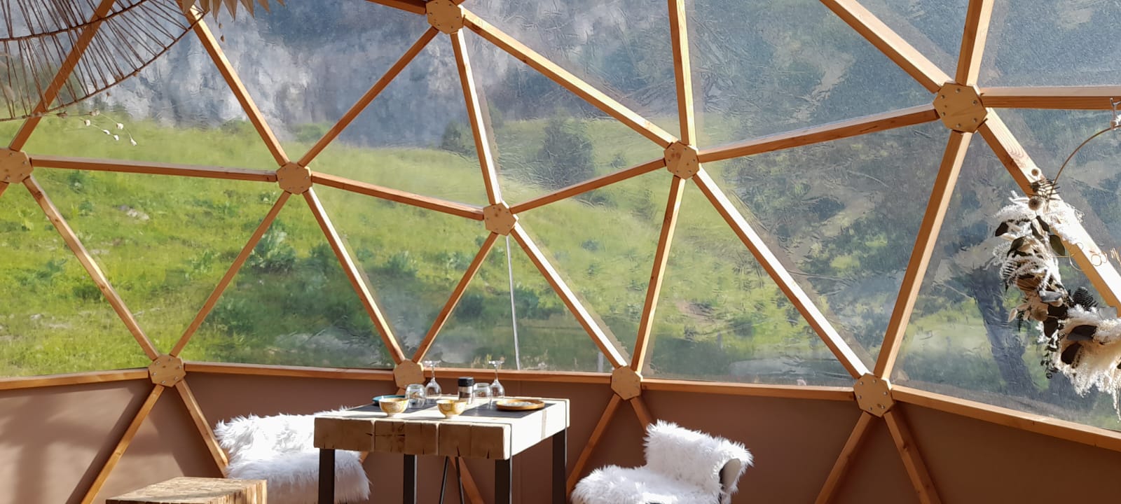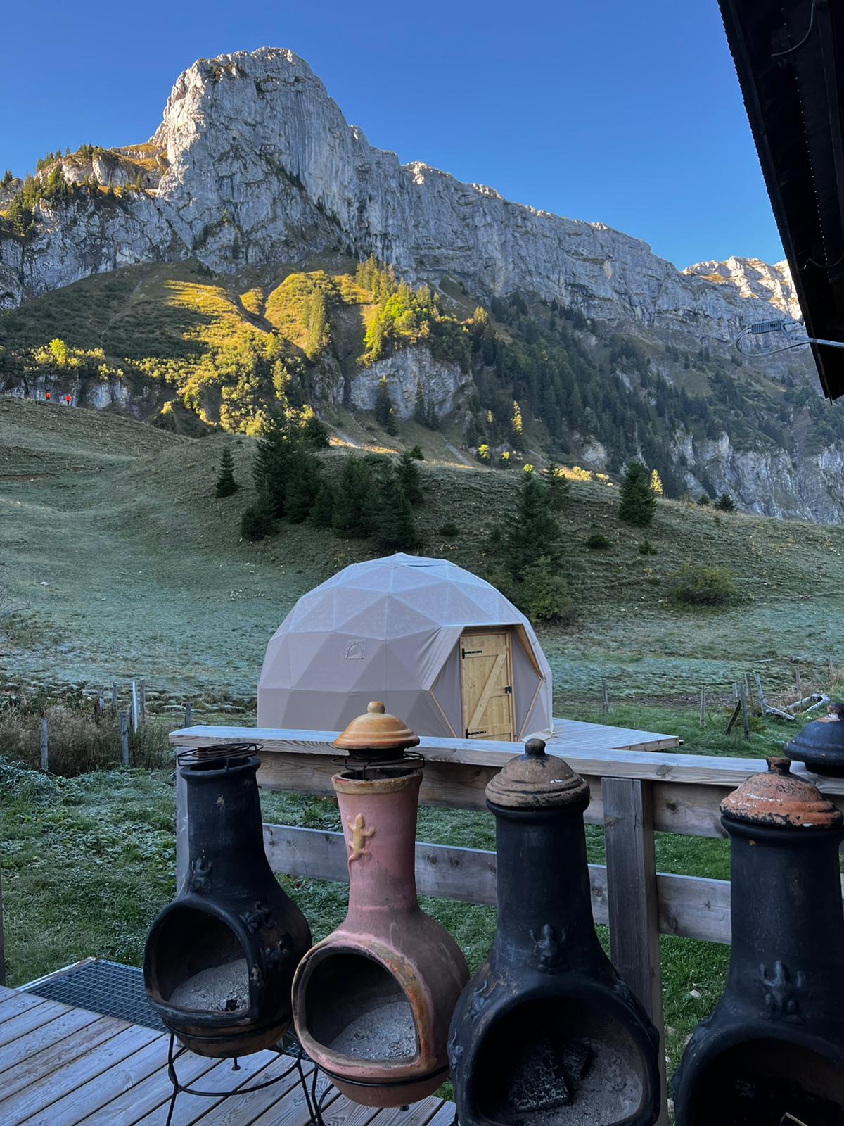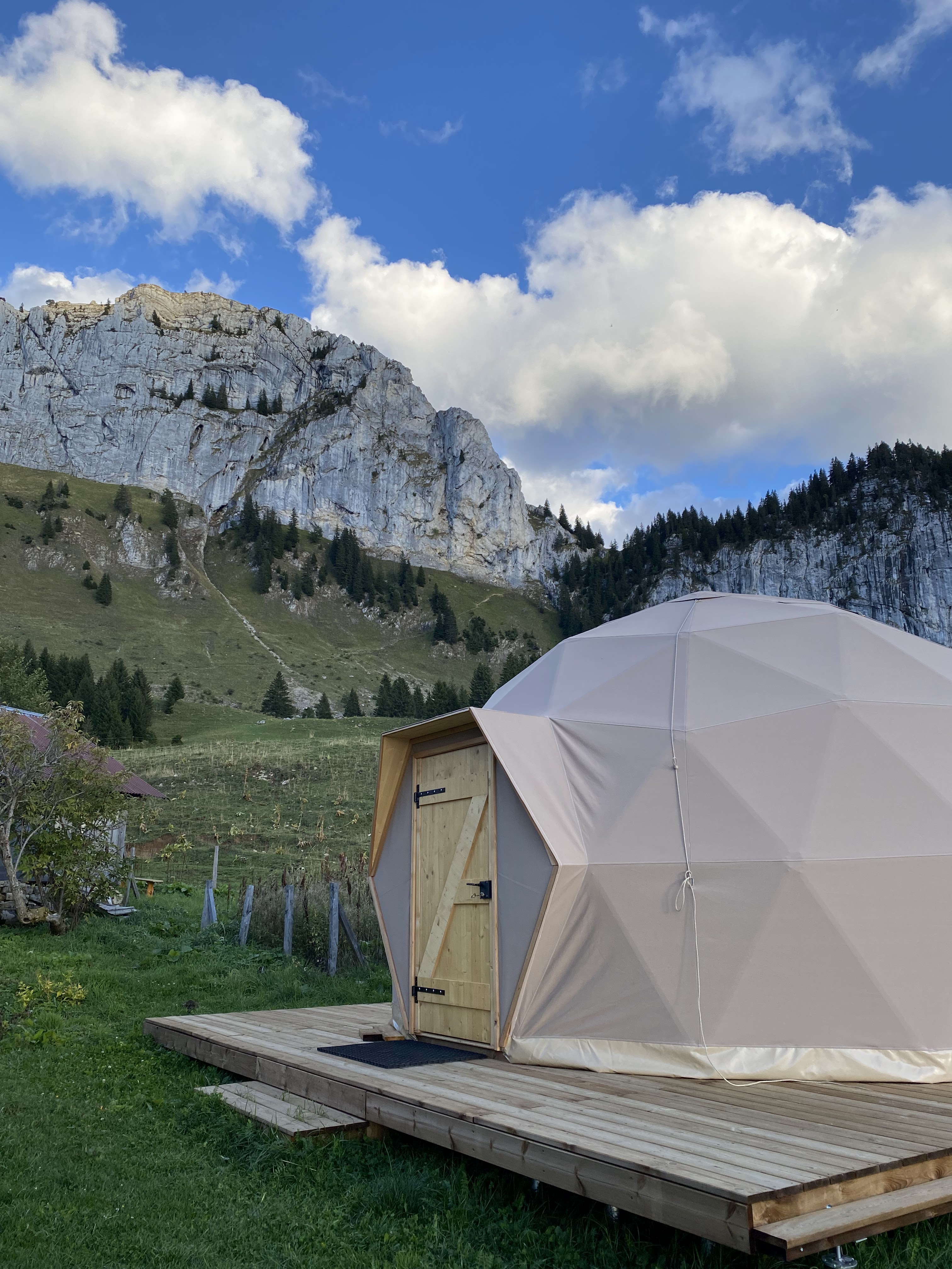 Quelle expérience! Nous ne pouvons que vous recommander chaudement les tentes géodes du chalet de Balme. Une randonnée agréable et accessible vous permettra d’accéder à l’alpage, véritable havre de paix! La tente est très confortable, aménagée avec goût, s’endormir dans un lit douillet avec le bruit du ruisseau ou de la pluie, le rêve! Amateurs de bivouacs, nous avons retrouvé les sensations tant appréciées avec une bonne dose de confort en plus! Foncez!