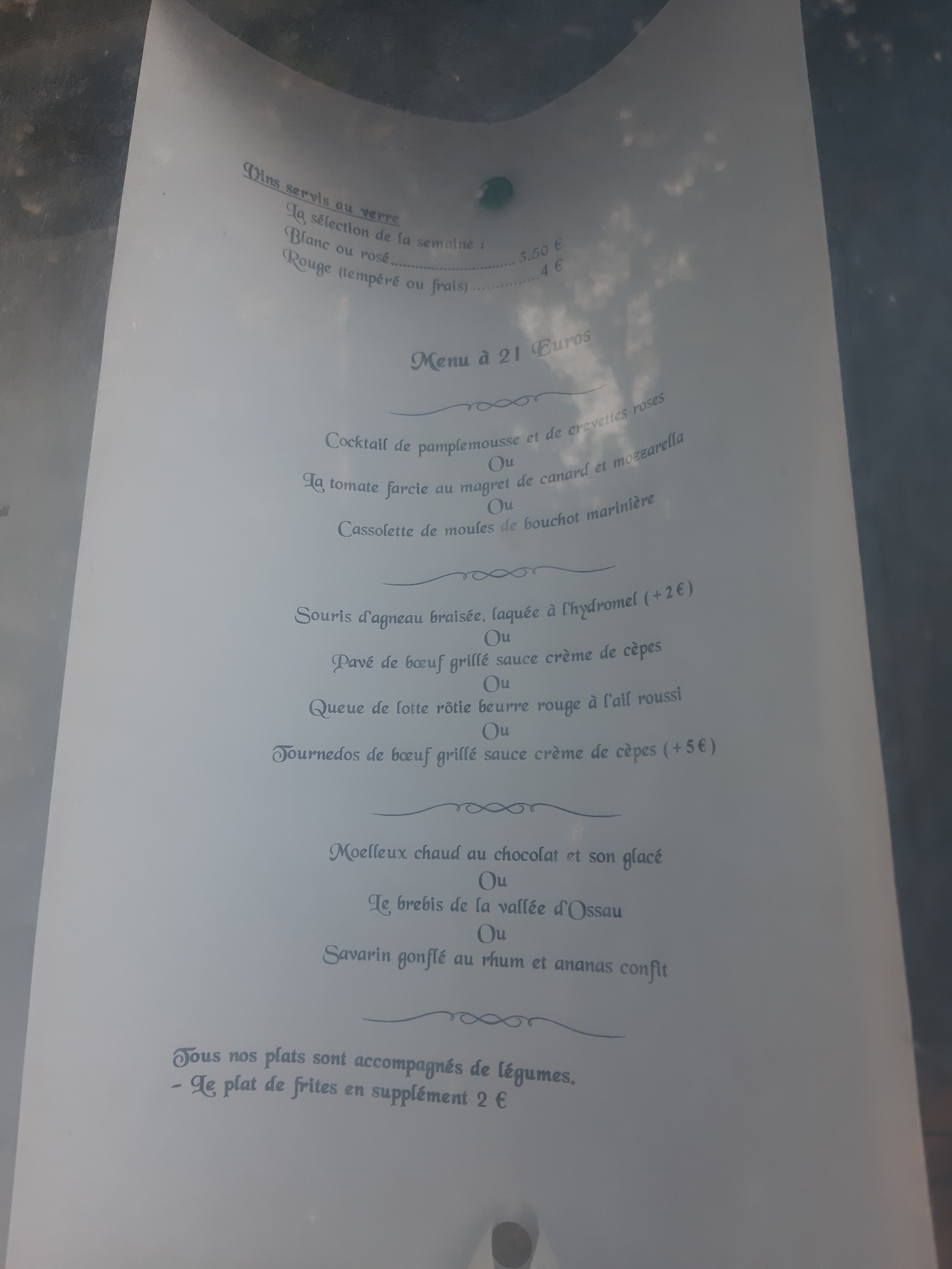 Plat copieux et menus pas cher 20€ le soir, service au top seulement la déco qui est un peux viello mais dans l'ensemble sa va.