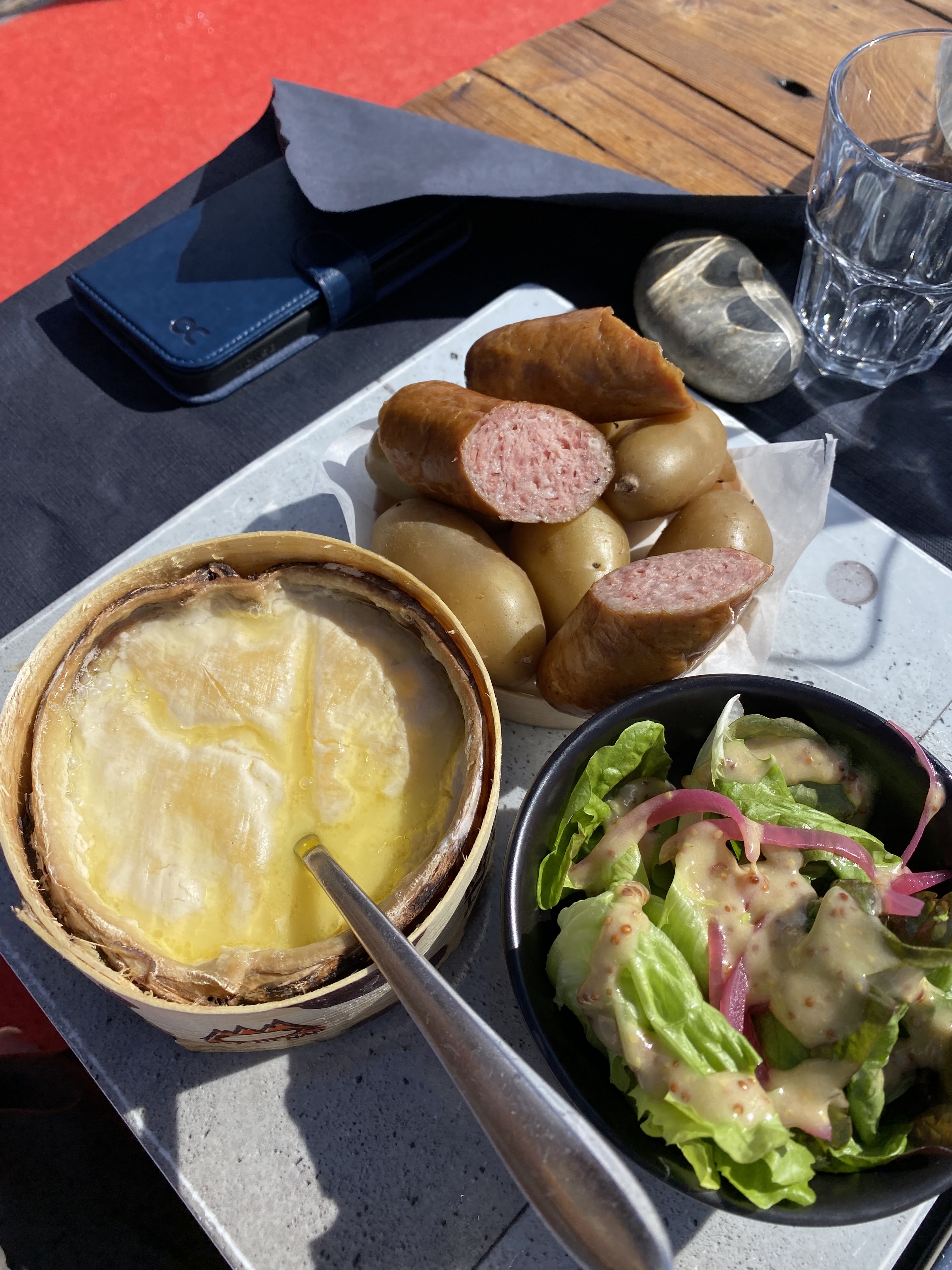 Nourriture fantastique, le service doit être amélioré Bel emplacement, le patio est fantastique par une journée ensoleillée. L'œuf et l'épaule d'agneau étaient savoureux et inventifs. Ils ont une bonne carte des vins pour tous les budgets. L'apremont local est croustillant, léger et charmant. Le service dépend de qui vous obtenez. Nous avions un jeune homme blond qui n'était pas fantastique, la plupart des gens assis dans notre région n'étaient pas contents, ils devaient le signaler et lui demander plusieurs fois pour commander, pour le chèque, etc.