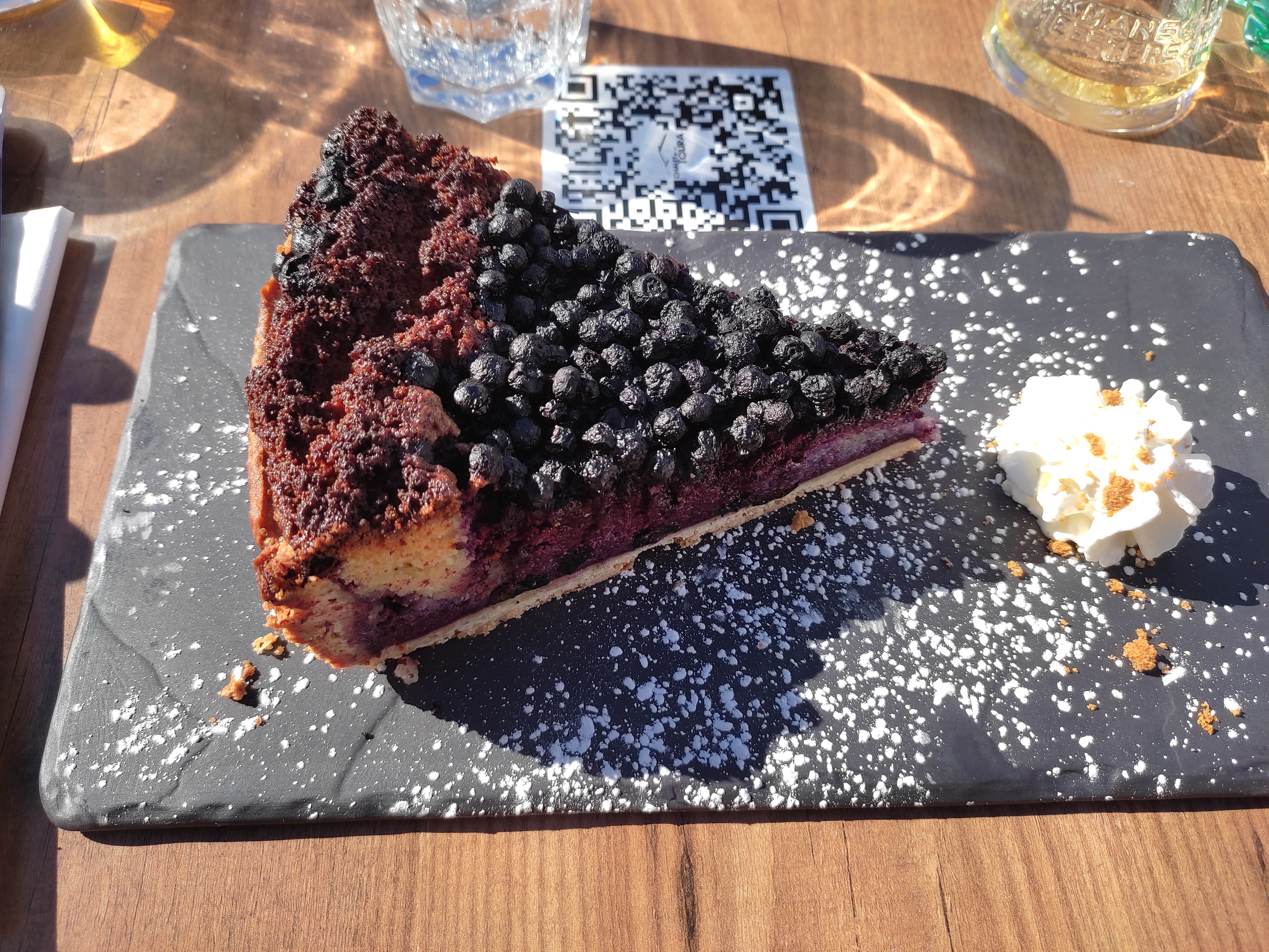 Une journée ensoleillée, une petite faim, c'est parti pour une pizza regina avec une bonne bière , et un dessert fruité (tarte myrtilles ! Parfait pour passer un bon petit moment, c’est parfait comme ça ! Coup de cœur pour se restaurant d'altitude