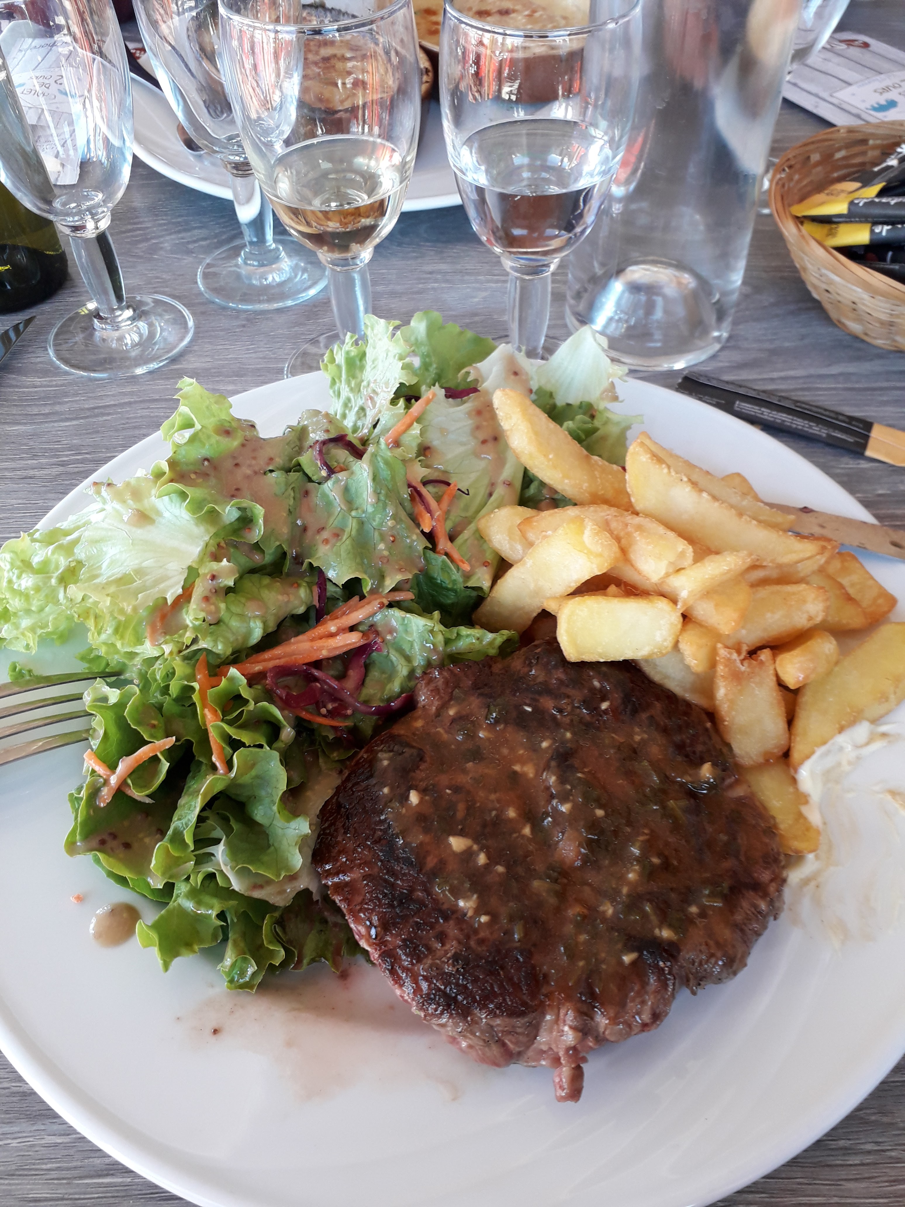Malgré l'affluence nous avons pu manger à 14h un exceptionnel tournedos rossini en plat du jour excusez du peu...l'emplacement et la terrasse sont top...les desserts sont faits maison...le café gourmand est très gourmand !... rien à voir avec celui d'un concurrent très connu dans la même station...Je préfère les restaurants à taille humaine comme celui-ci...quant à ceux qui se plaignent de l'attente, faites vous une raison car le manque de personnel dans ce métier ça n'est que le début...