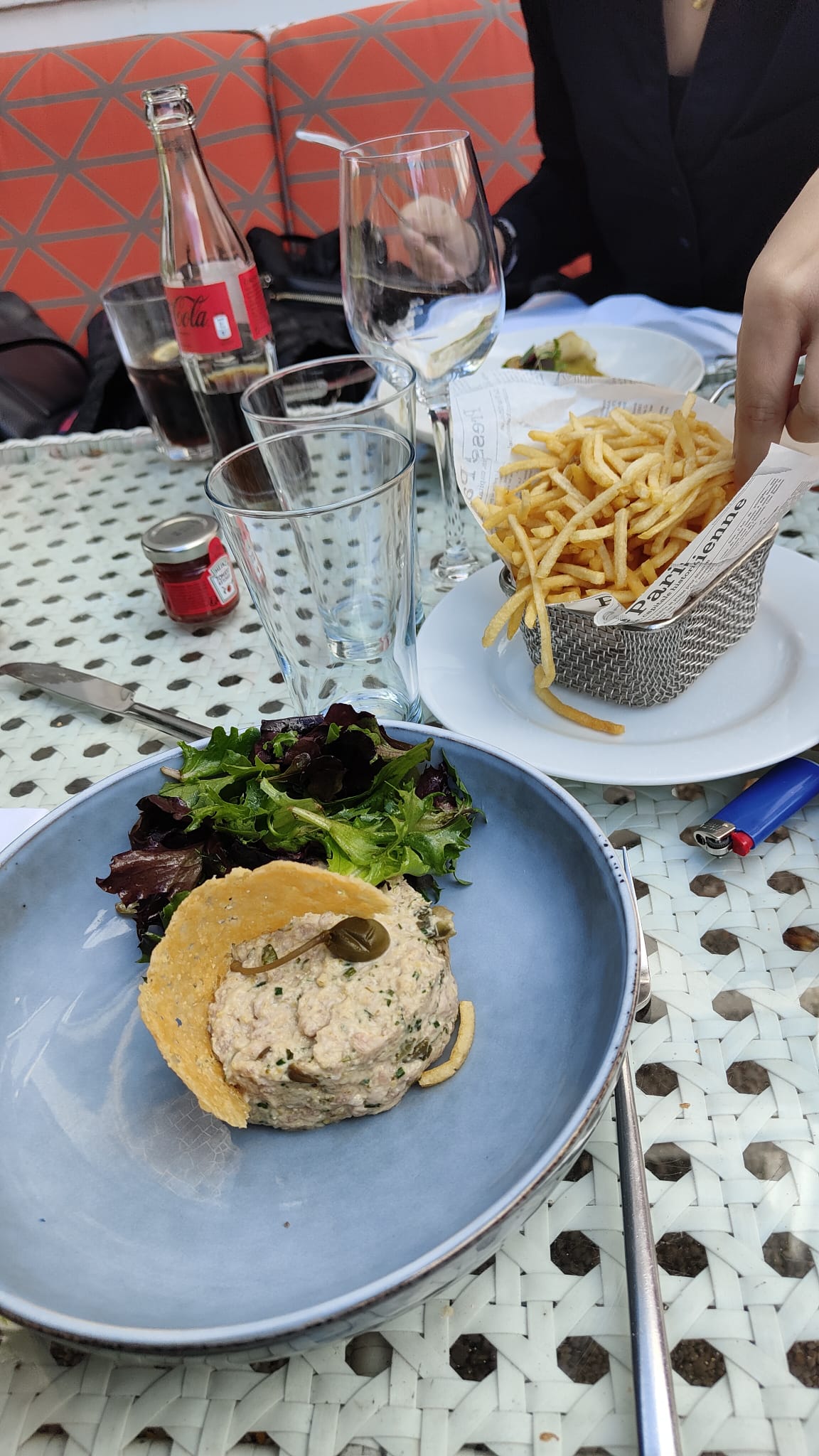 Cadre agréable Le restaurant est à bannir Hors de prix pour ce que c’est et limite inacceptable Payer 17€ un tartare de thon qui est de la taille d’un amuse bouche c’est du vol Quand au grand tartare je ne vois pas ce qu’il a de grand puisqu’il a la taille d’un tartare classique Demander un accompagnement différent et s’entendre dire par la serveuse que ce n’est pas possible quand on paye un plat 28 ou 30€ c’est aussi lamentable En revanche les desserts sont beaux mais certains sans goût comme le riz au lait Bref plus jamais