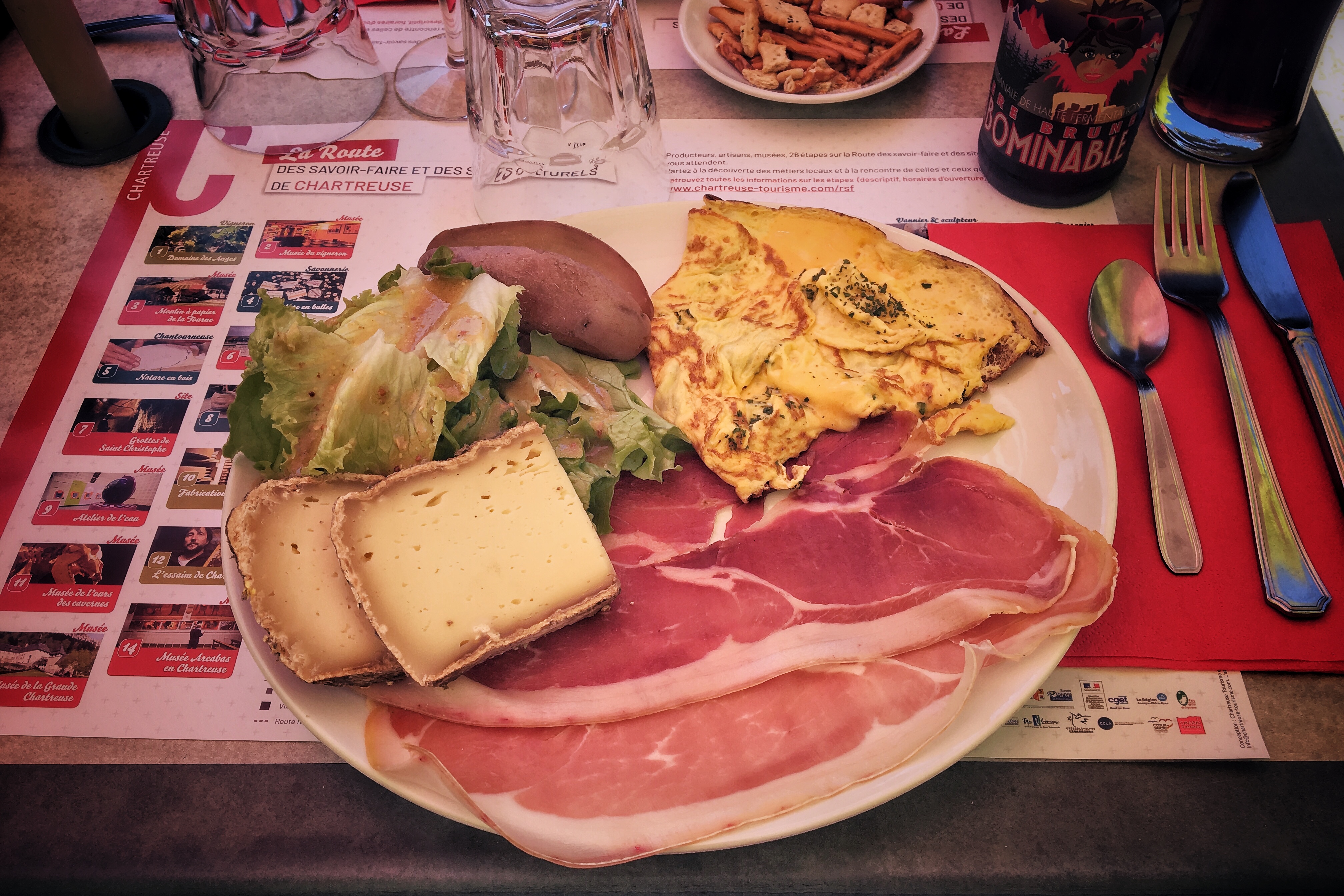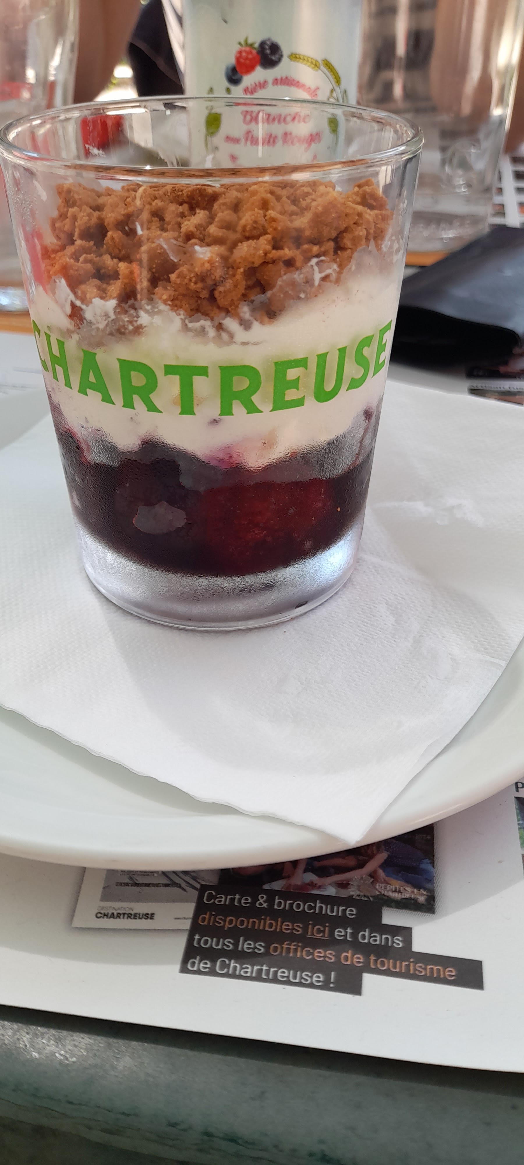 Rien de mieux qu'une petite halte pour récupérer les calories dépensées en randonnant jusqu'aux cascades du cirque de Même. Un excellent pascadou (farine de sarrasin) au jambon oeuf et tomme de Chartreuse accompagné d'une blanche aux fruits rouge brassée en Chartreuse. Tiramisu aux myrtilles.