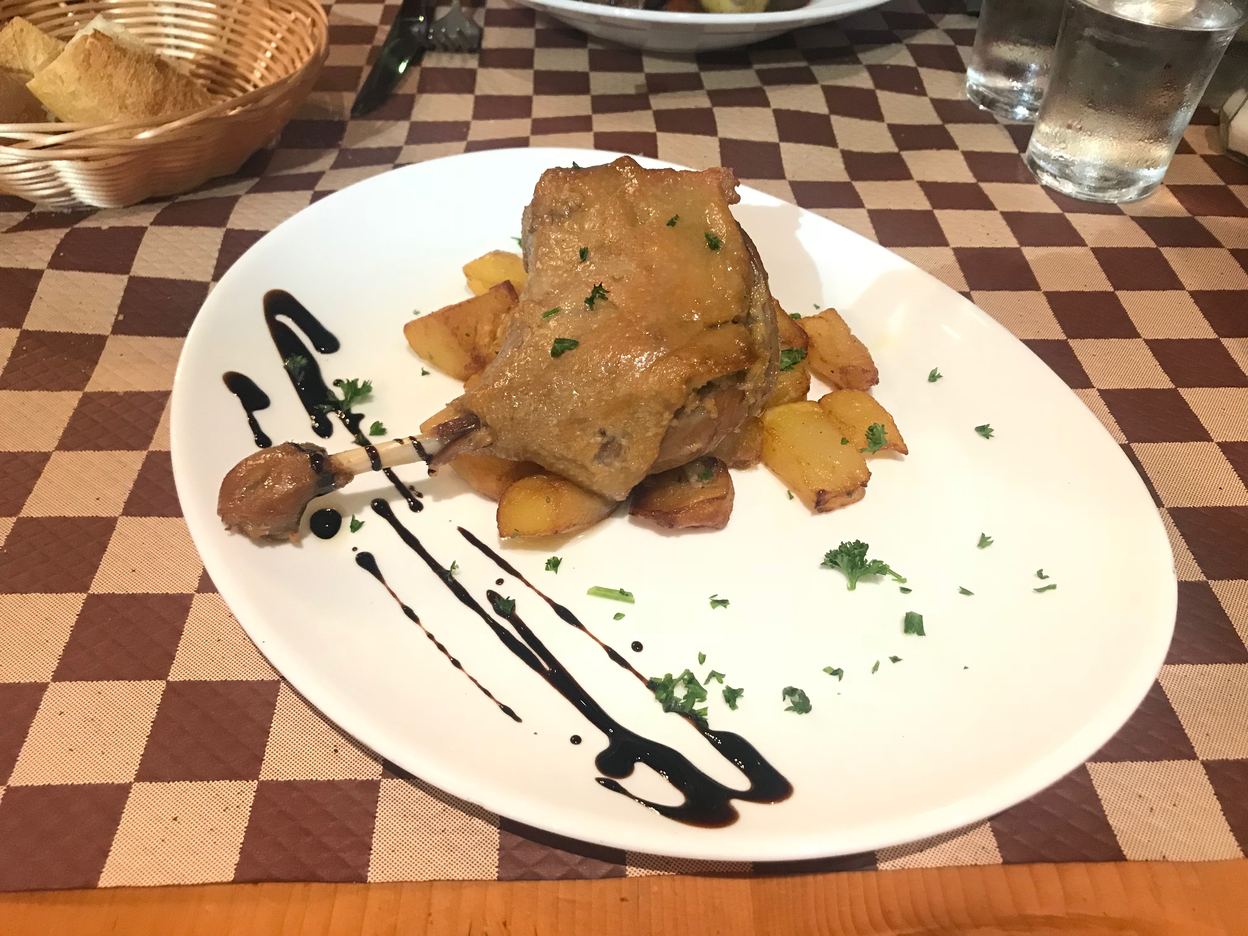 Bon choix économique pour notre famille de cinq personnes. Les enfants ont pu acheter des pizzas à la pizzeria de l'autre côté de la rue (les deux restaurants sont reliés) et les adultes ont pris le repas à trois plats.
