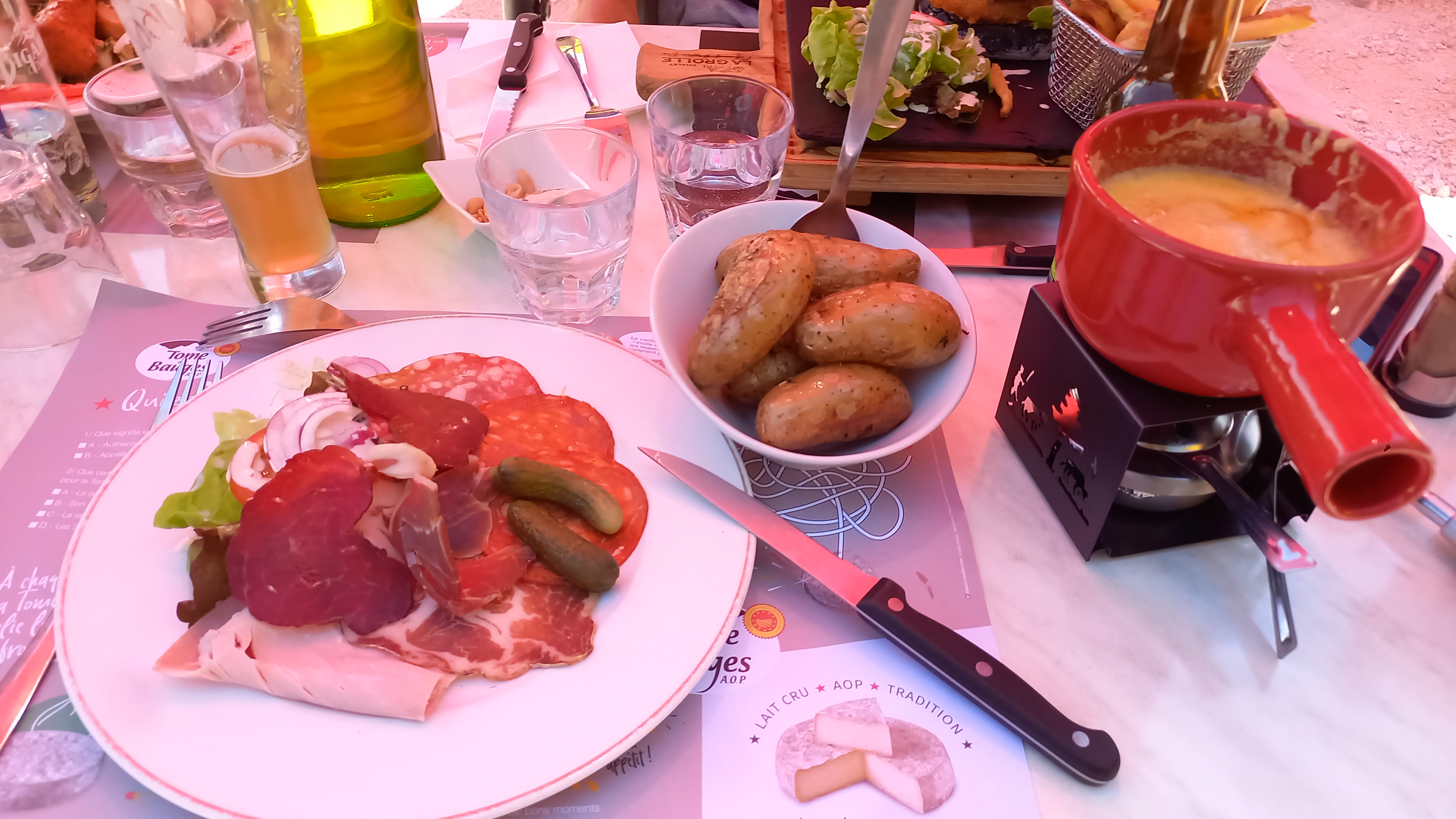 Alors que c'est affiché en gros de partout : plat du jour du mardi au vendredi et que nous sommes mardi, il nous ai répondu aucun plat du jour !?? Nous prenons une reblochonnade : charcuterie industrielle de base et pommes de terre pas assez cuites. Et un hamburger raclette . Fromage sans goût et frites surgelées pas assez cuites non plus. A éviter sauf si vous aimez la malbouffe.
