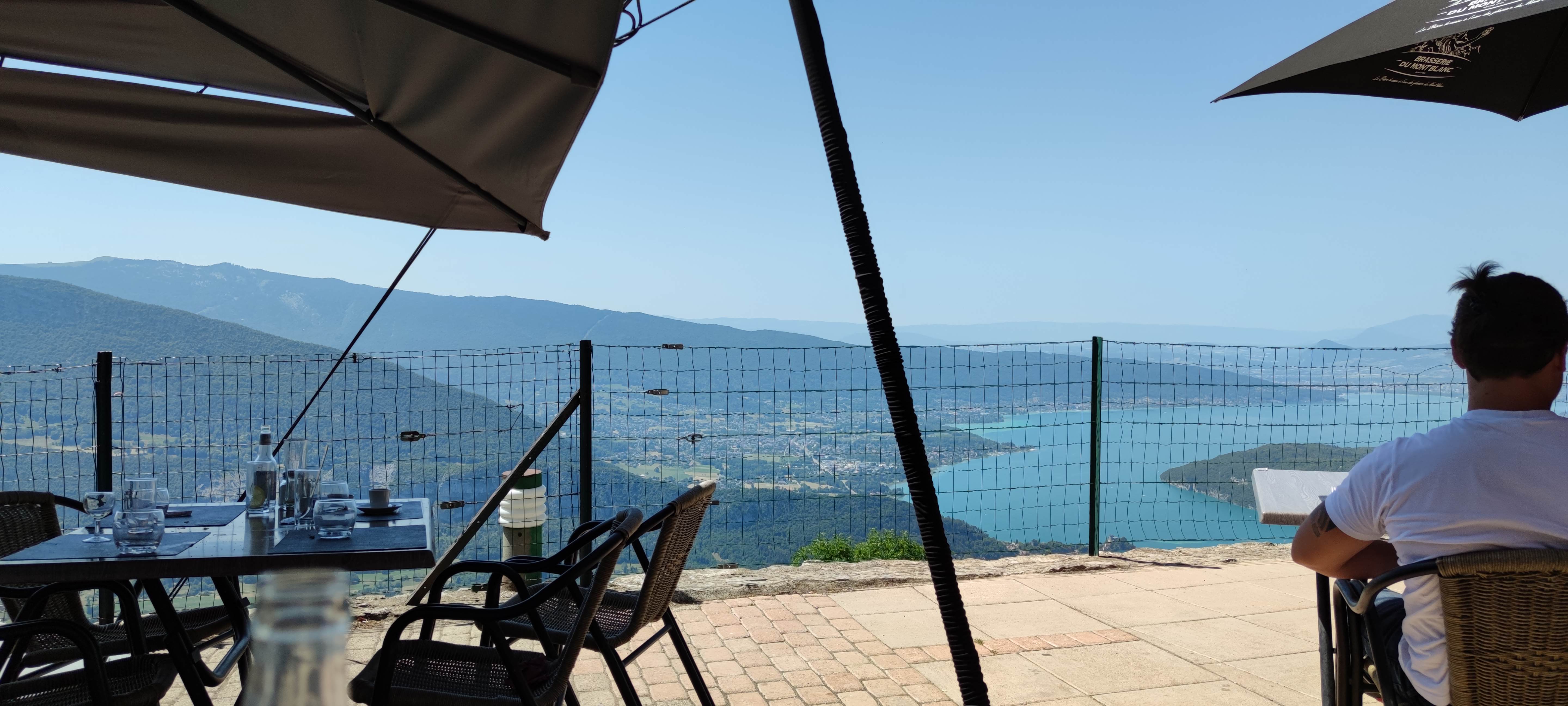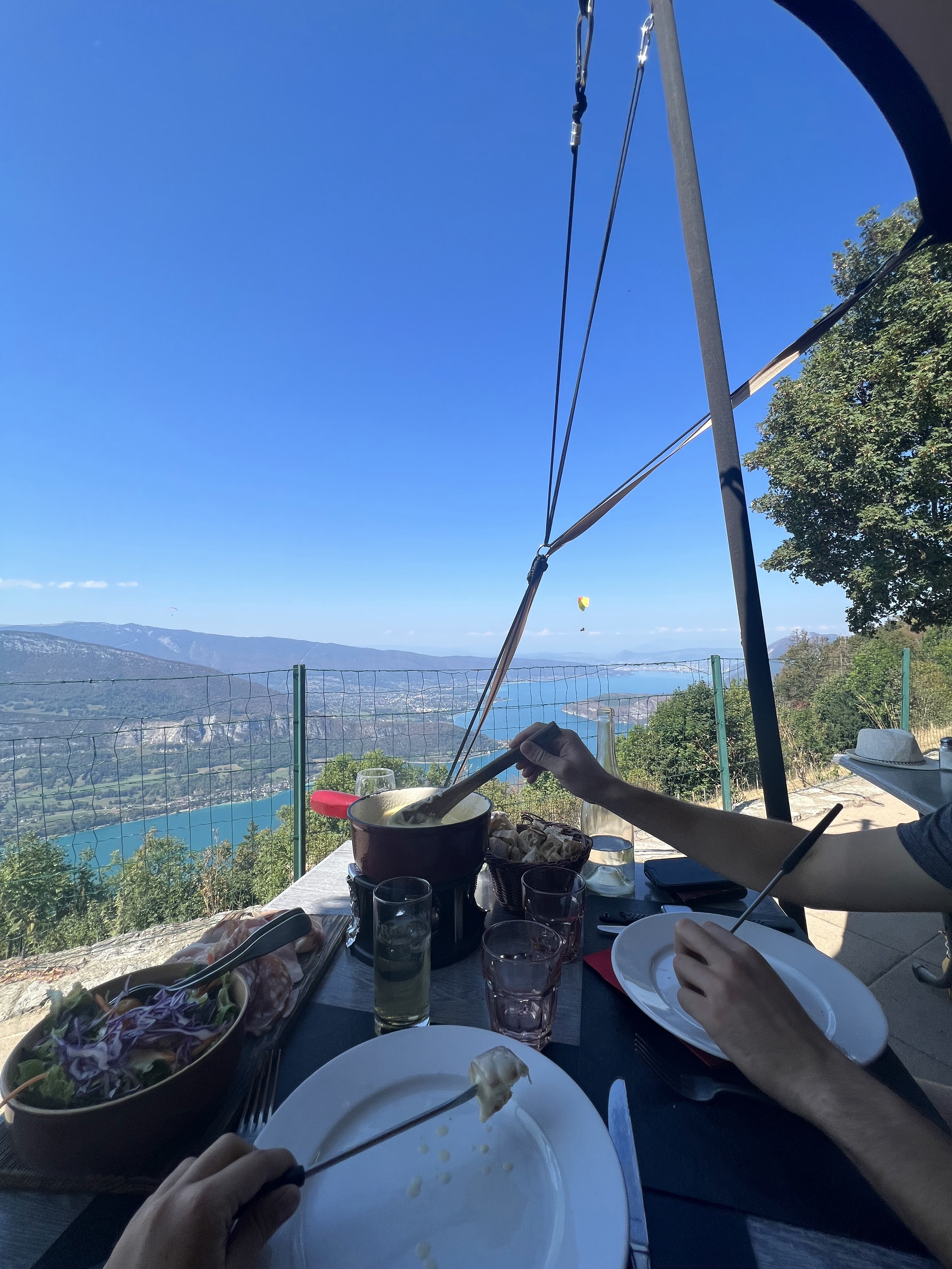 Excellente expérience. Belle vue sur le lac d'Annecy qui donne envie de faire du parapente. La nourriture est bonne mais sans doute le gros plus est la vue sur le lac.