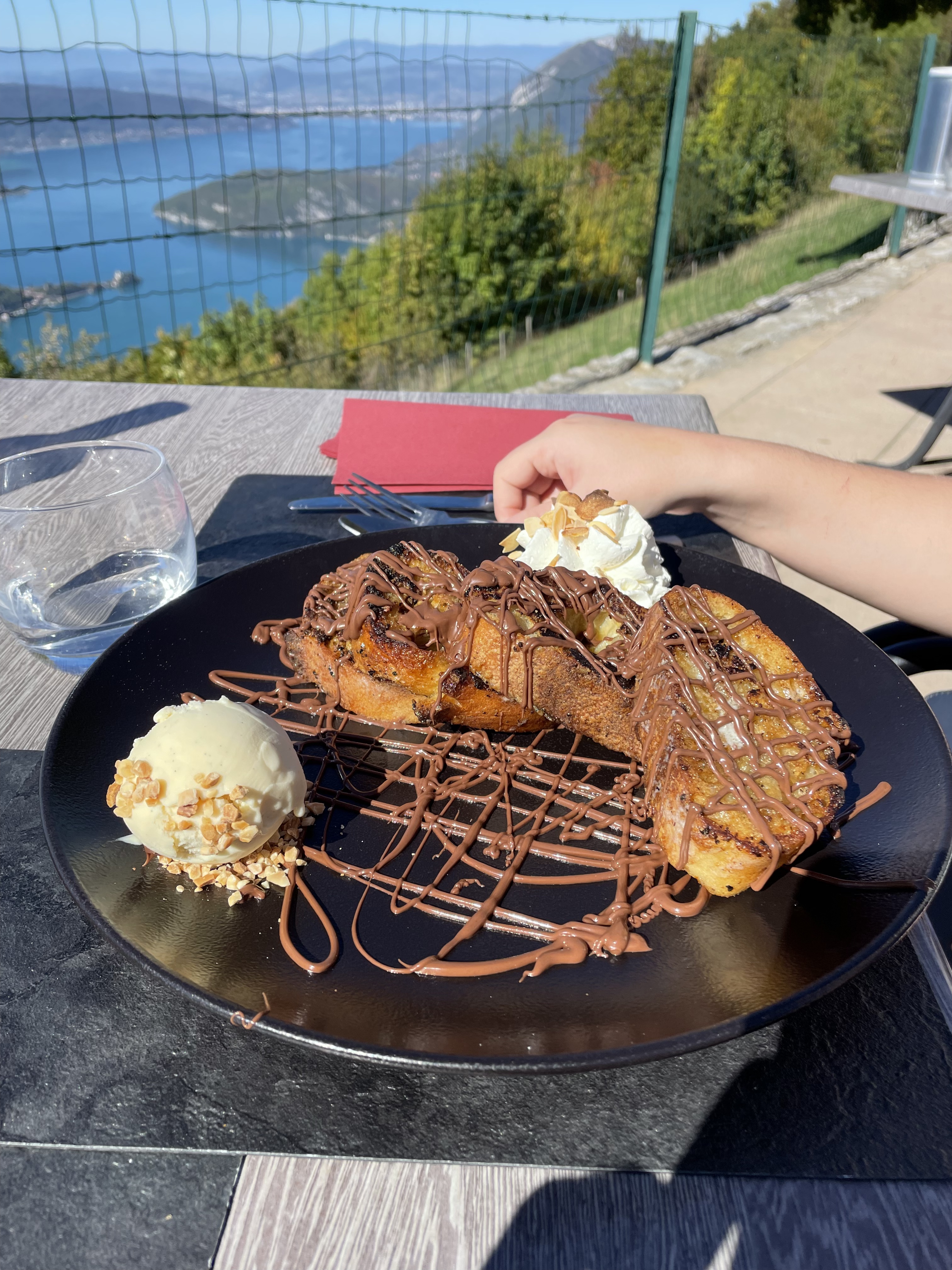 Le service est au top malgré l'affluence, efficace et agréable. Un peu déçu par les pains perdus, un peu dur pour des pains perdus ( les précédents étaient bien meilleurs). Cela n'a pas gâché pour autant notre soirée avec cette vue imprenable sur le lac et ce superbe coucher de soleil.