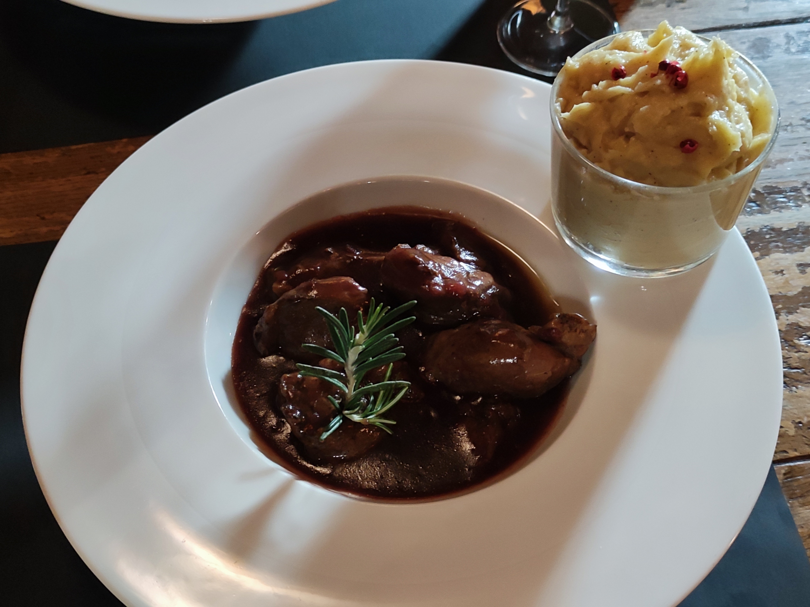 Alors vraiment déçu de ce faire servir une tambouille dans des assiettes froides du poulet, des frites à la place d une purée un cheesberger qui mérite pas un tel prix heureusement nous avons pris un vin jaune ...et le comble le pain coupé à 1m des toilettes...sur une table ...au secours