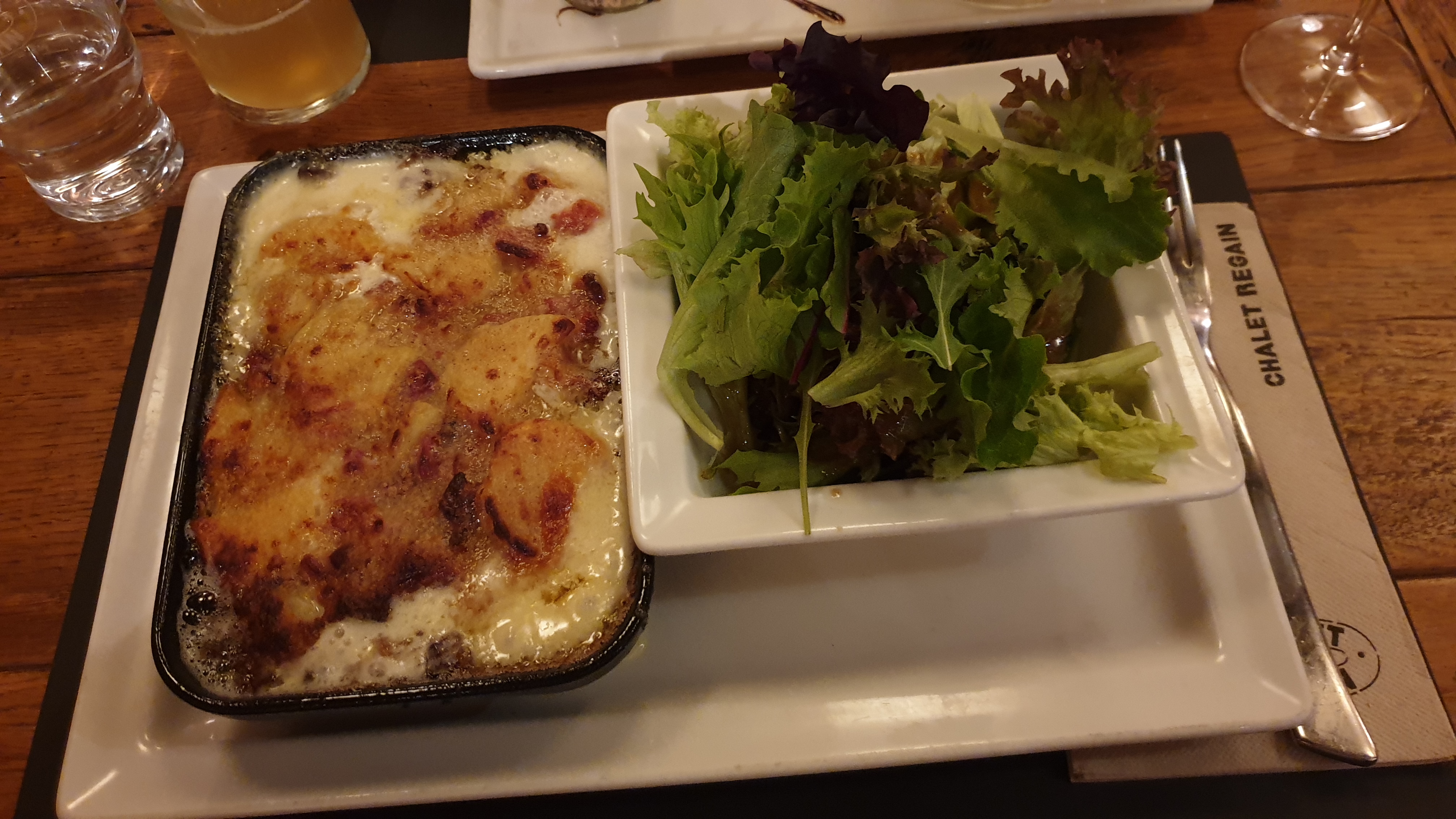 Une tartiflette avec des ingrédients qui ne sont pas à la hauteur de la renommée du chalet regain, des pomme de terre sous vide avec un fromage à tartiflette sans trop de goût et aucun assaisonnement du plat. Nous demandons au Serveur si il y a un endroit pour changer notre enfant, il nous répond qu’il va voir avec son patron. Le patron vient nous voir on nous demandant ce qu’il y a. Nous lui disons avez-vous un endroit pour changer notre enfant ? Oui, aux toilettes. Avez-vous une table à langer? Ah non pas du tout, vous pouvez le changer par terre. Je pense que cette personne n’a pas eu d’enfants c’est dommage d’avoir cette réaction…