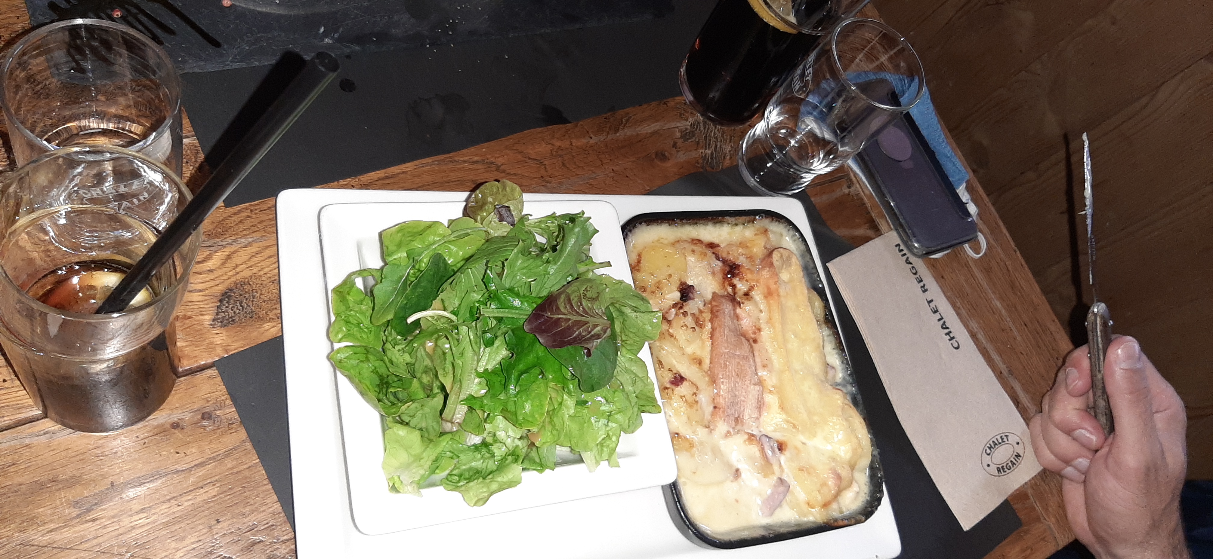 Salade copieuse,tartiflette en quantité suffisante et très bonne.Personnel agréable. Les cafés gourmand sont également sympathique.je recommande.prix correcte 2 adultes 2 enfants (menu enfant)sans apéritif :une soixantaine d euros.