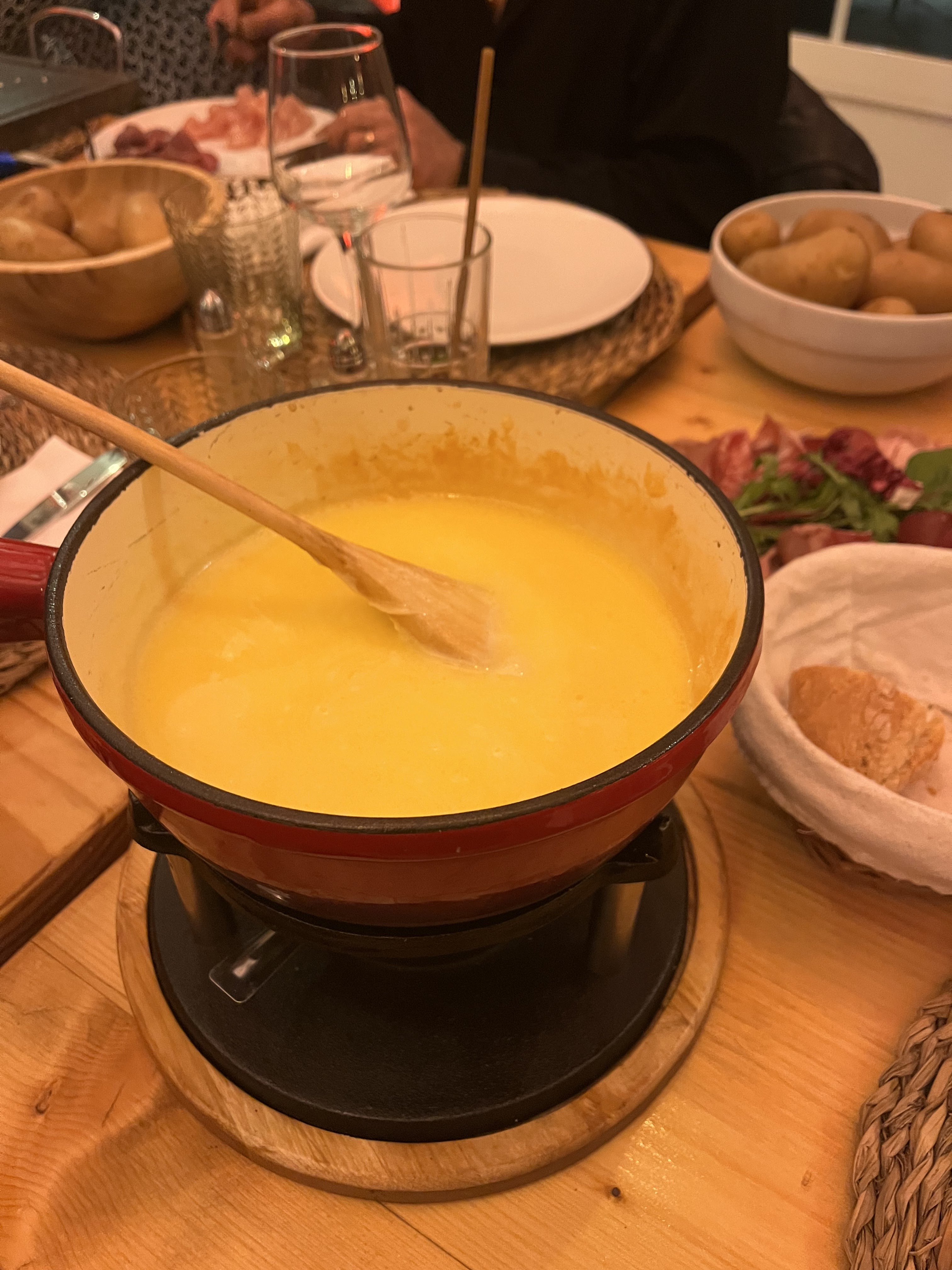 Quel beau moment passé dans le Chalet Vaudois....très beau cadre,service sympathique et compétent...et la fondue à la truffe et ses accompagnements...un délice....sans oublié le divin breuvage....carresse à Nino🐶