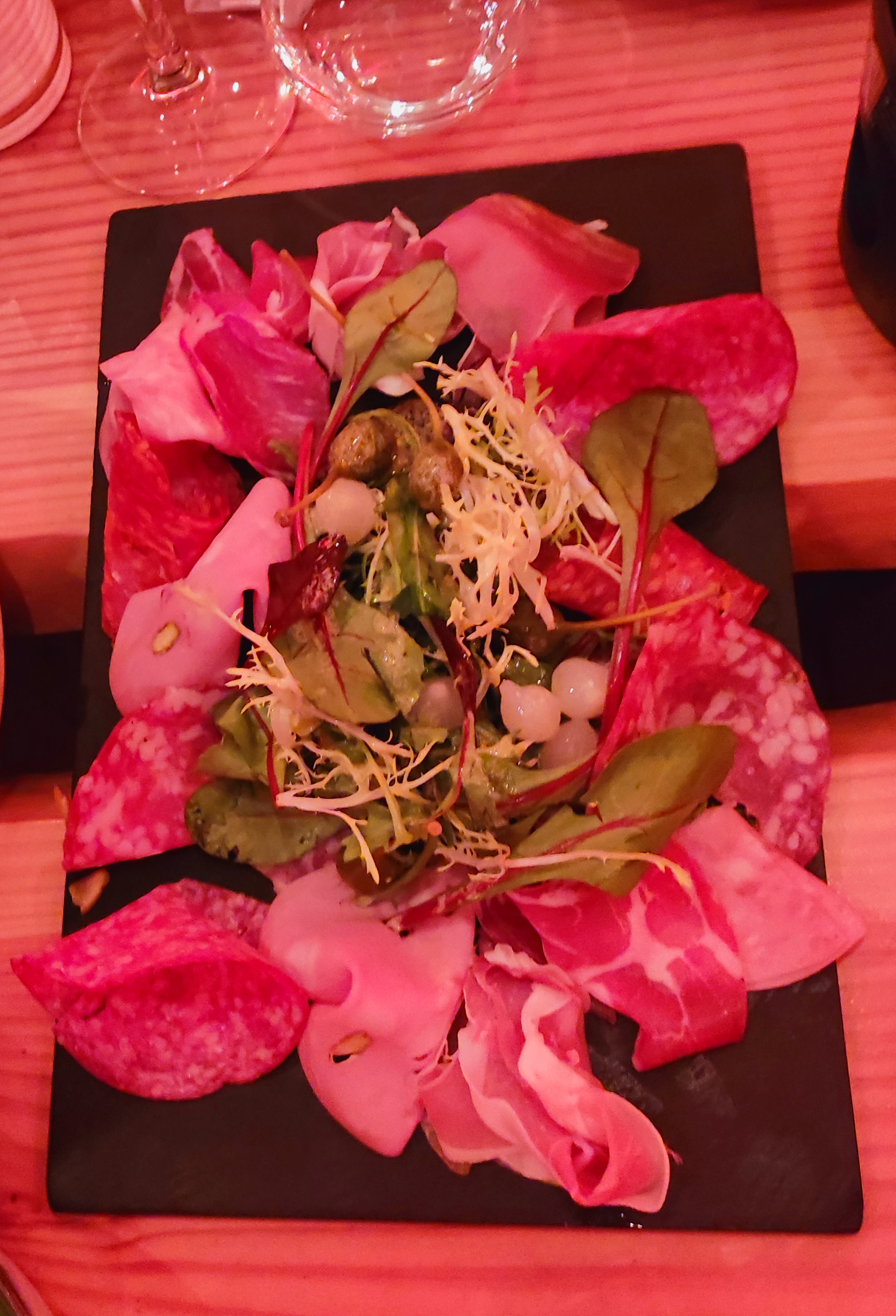 Superbe cadre. L'endroit est chaleureux et décoré avec goût. Accueil sympathique. Au niveau du service en revanche c'est un peu désorganisé et plutôt très long... Les quantités sont bien, repas copieux même si on aurait aimé plus de variétés niveau charcuterie. La musique est un peu forte pendant le repas, difficile de discuter. L'ambiance en deuxième partie de soirée est très bien. À tester et pourquoi pas re tester mais la qualité de ce qui est proposé n'est pas à la hauteur des prix. Un peu dommage car le concept et l'endroit sont vraiment sympas.