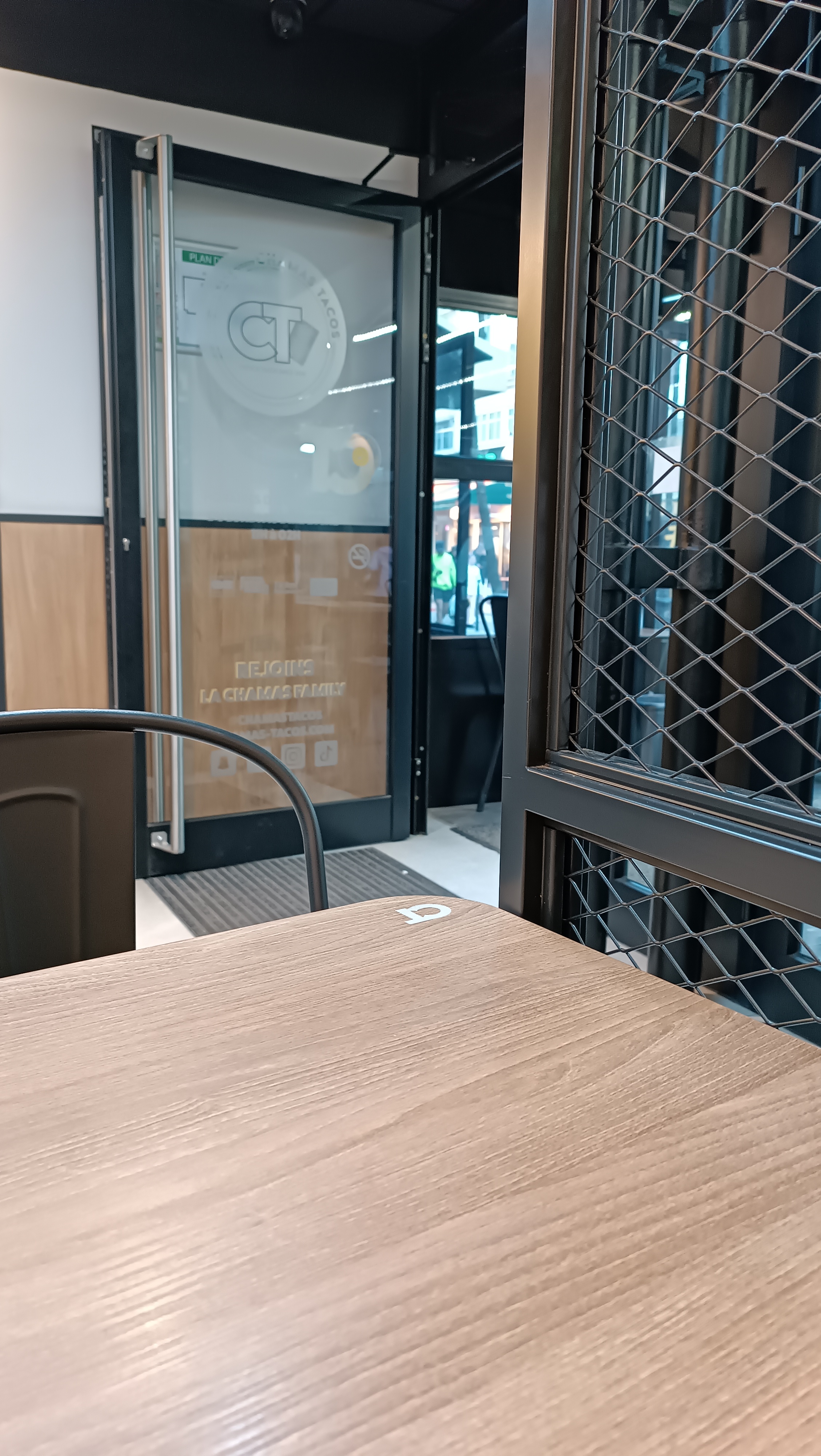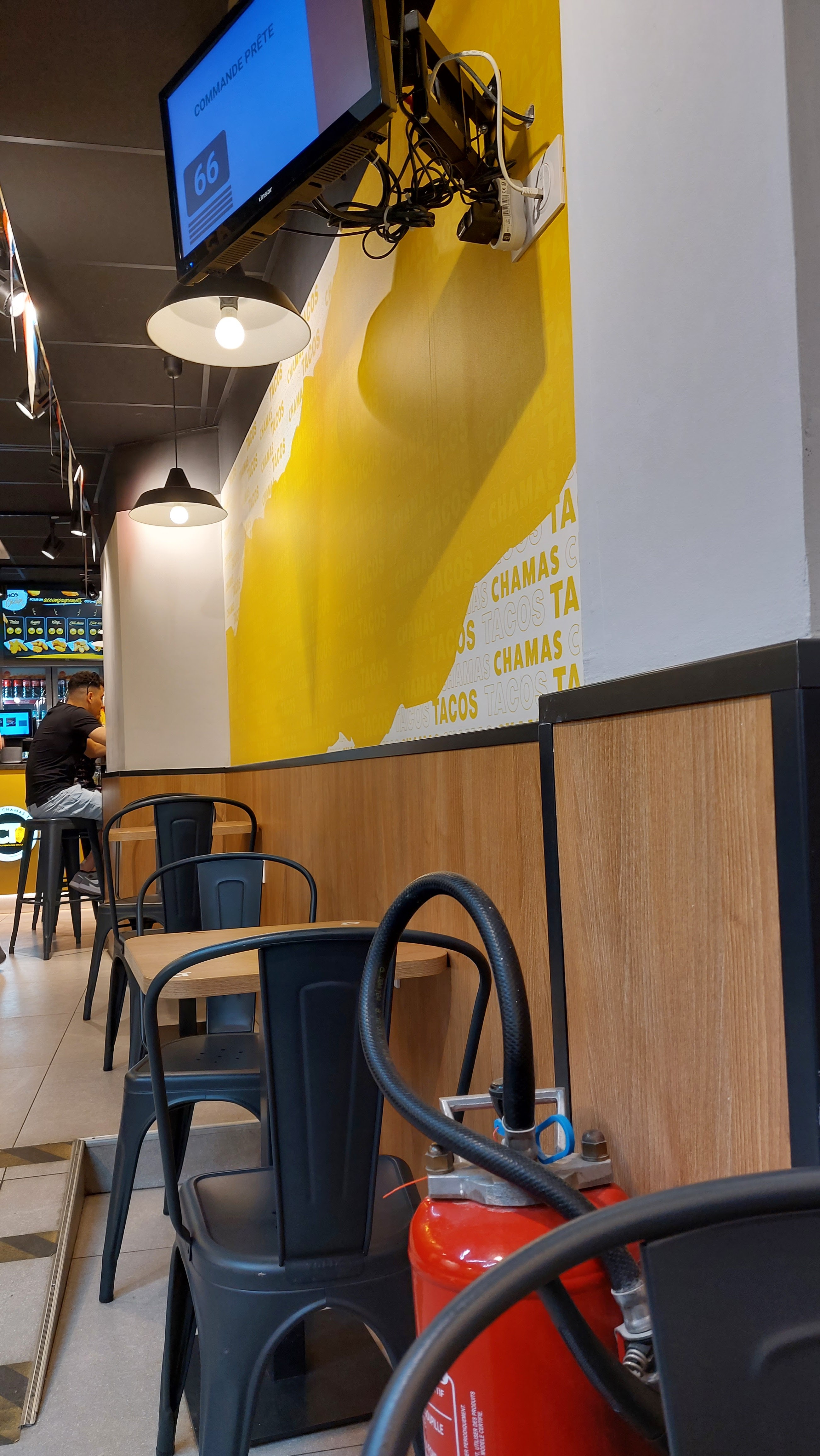 Allez hop des tacos à déguster . Les caisses automatiques sont à l'entrée à gauche pour bien voir les menus . Car en effet j'ai réussi à commander à la caisse un truc en pensant qu'il y aurait les frites avec .....ben non... C'est tout petit mais la musique dynamique fait digérer . Gentil accueil. Les tables sont très petites ..... Et c'est propre et ça a été pensé pour le rester .