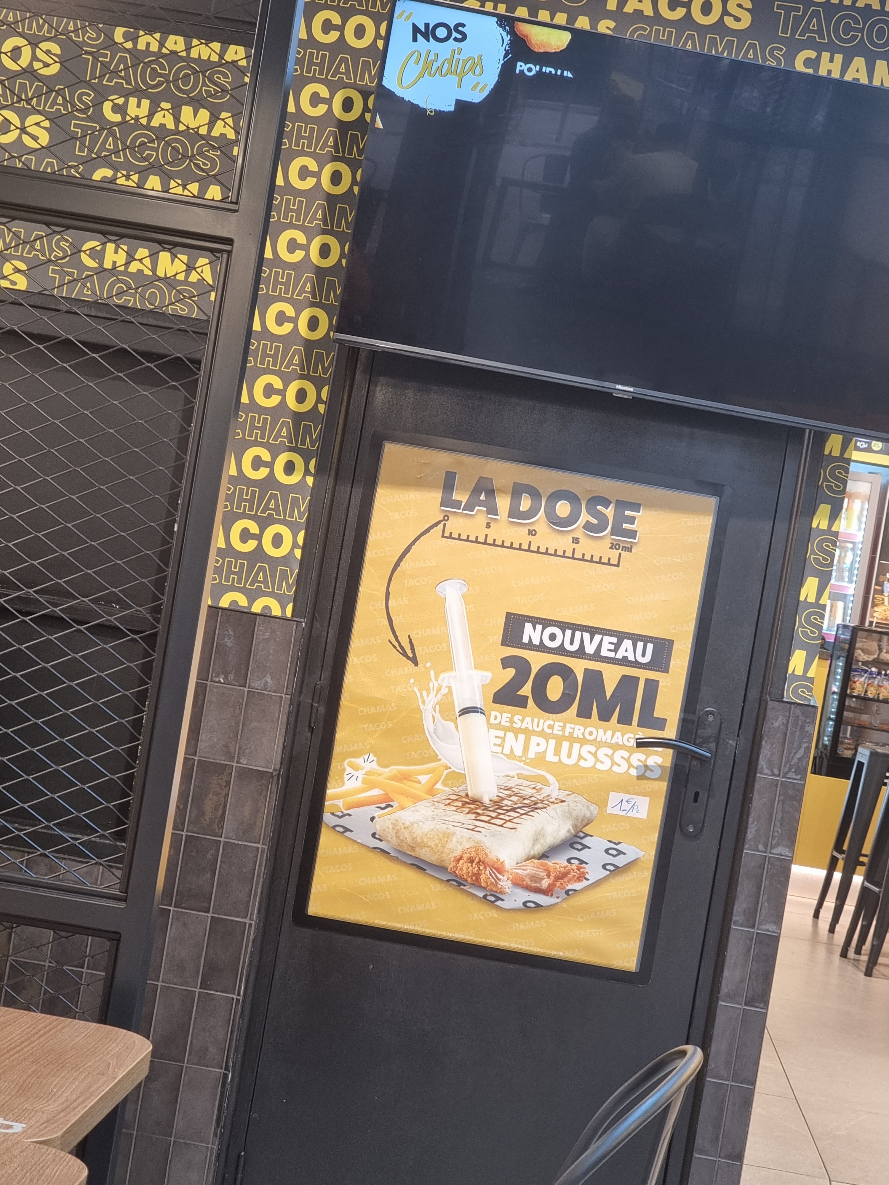 J'aime le principe de la sauce fromagère en supplément, puis la commande à la borne en mode macdo génial, seul bémol, trop de frites dans le tacos, sinon il était plutot bon