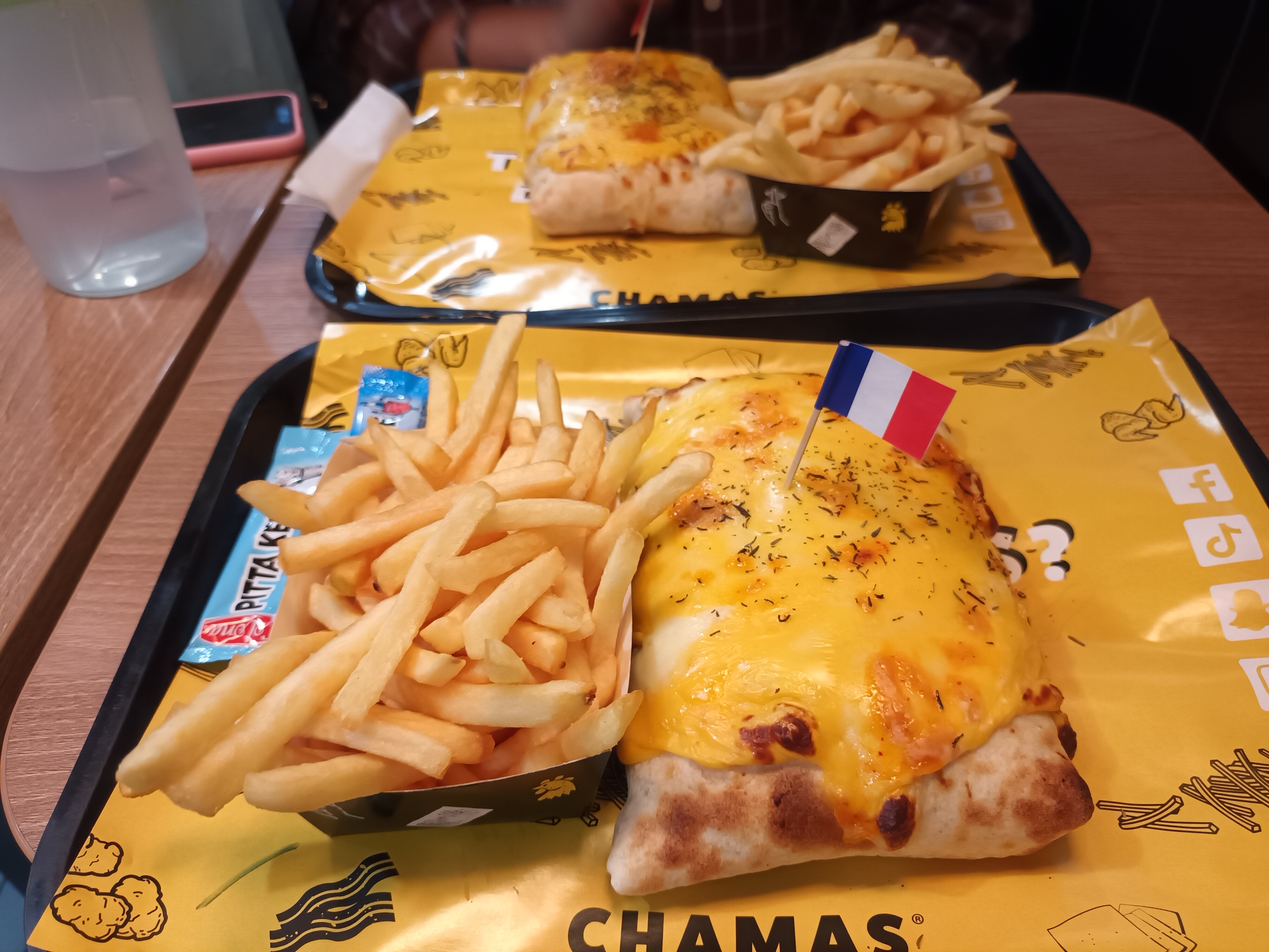 Découverte du chamas tacos sur Uber eat, point négatif : erreur dans la commande, remplacement de produit non prévenu et produit manquant. Point positif : le croque étais bon le tacos cava mais blindé de sauce et manque les suppléments. Bref peut être que j'essayerai une deuxième fois 🤷♀️