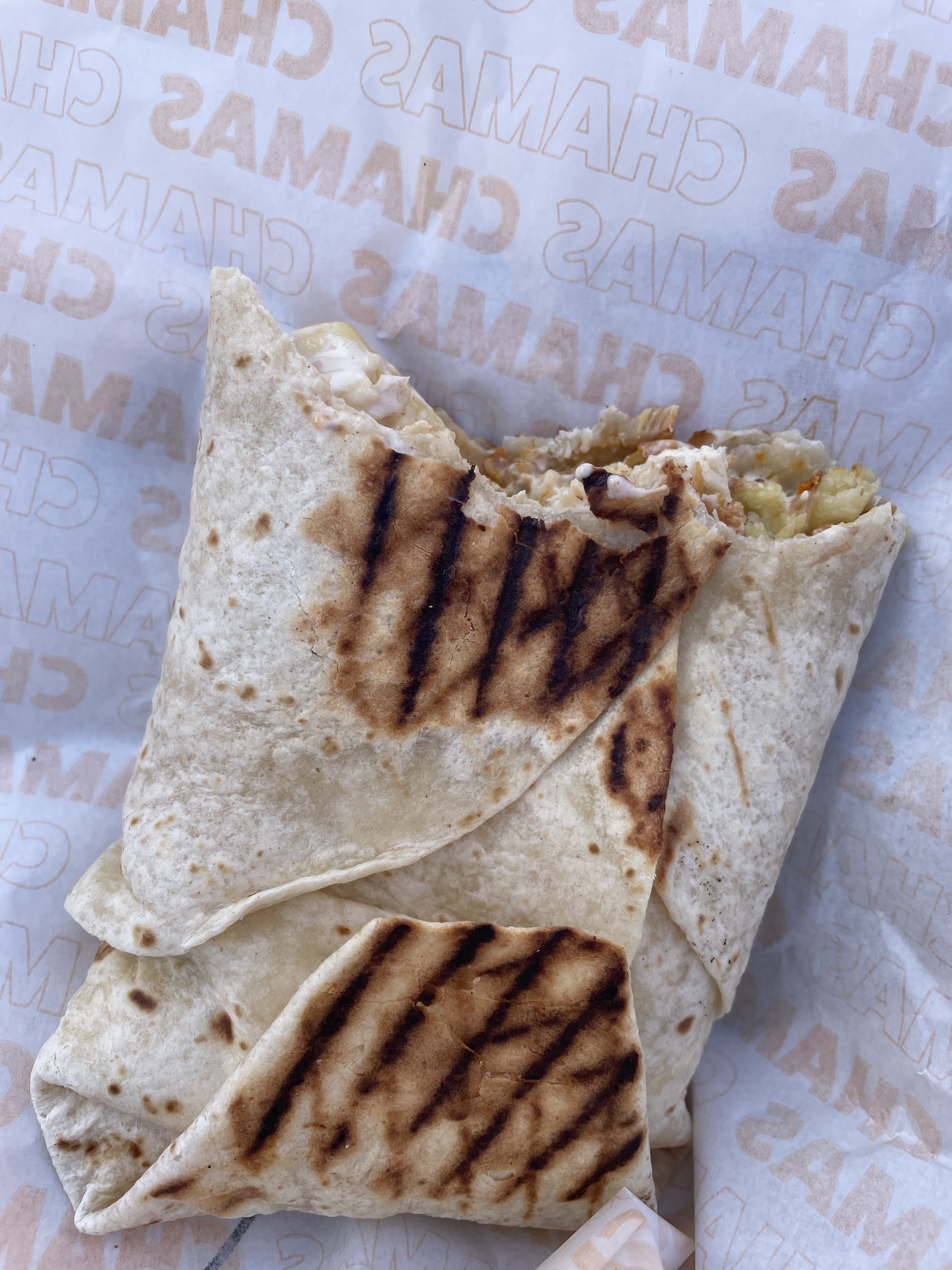 Voulant essayer un nouveau tacos, je me suis rendu chez Chamas tacos, au premier abord, plutôt sympatique, malheureusement j'ai attendu 30 minutes minimum pour mon tacos, des personnes arrivés après moi était servi avant moi, pas de geste commercial de la part du gérant, ah si parce que je lui ai demandé et j'ai eu le droit à un capri sun, balancé dans mon sac comme ci il venait de perdre son CA (j'en ai quand même eu pour 24€ seul), une fois près à manger, le sandwich n'était pas mauvais, mais au bout de trois crocs, un morceau de paille de fer, déçu par la prestation, je reviendrai peut être pour ne pas rester sur un mauvais avis.