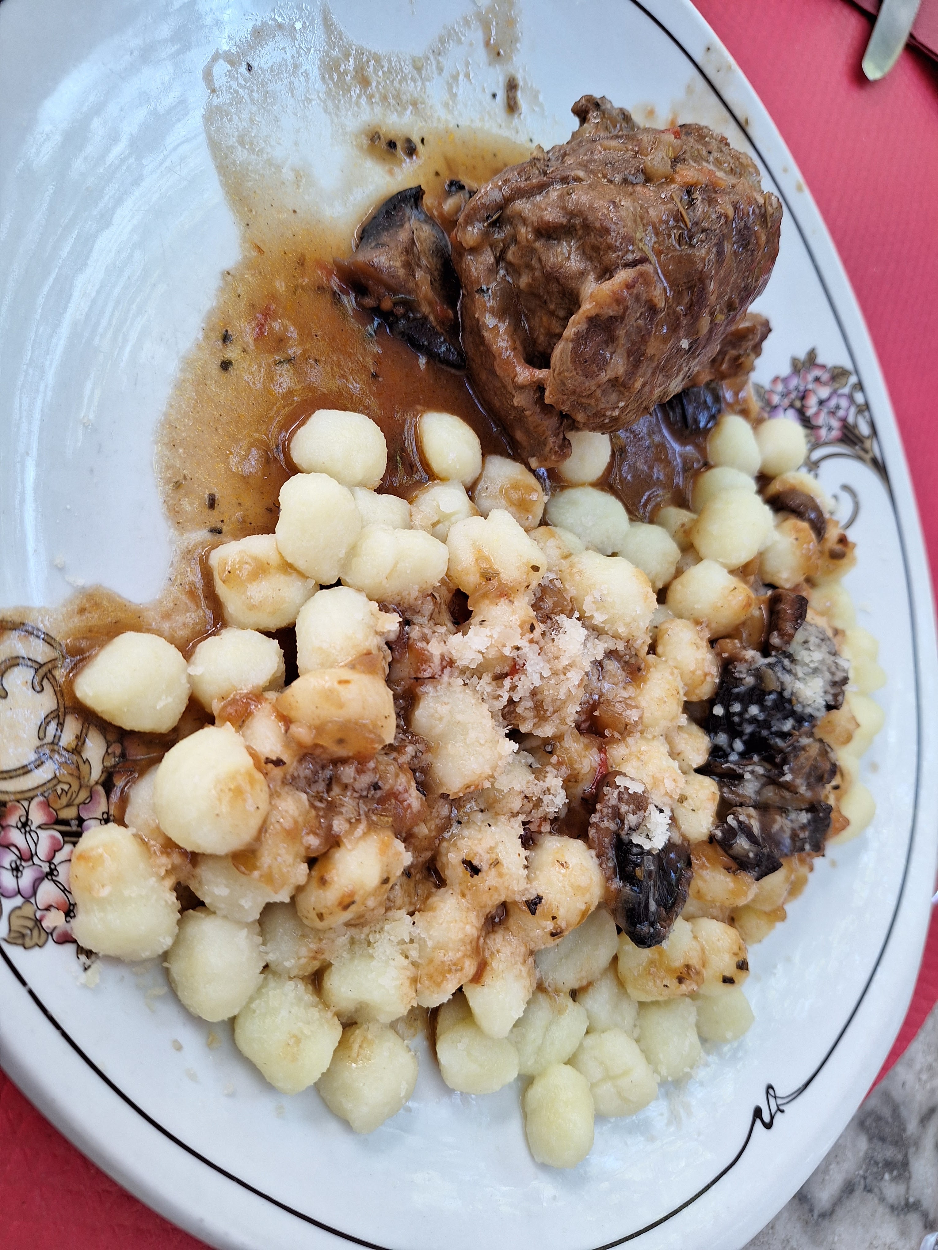 Nous nous sommes arrêtés à cet endroit en venant du tout-terrain à La Brigue. Au début, cela ressemblait à un vieil endroit abandonné de l'extérieur, les tables sont un peu rouillées, les plantes envahies par la végétation... Mais le rôti et les pommes de terre que nous avons reçus ont dépassé mes attentes. Le prix est un peu élevé mais je suppose que c'est la vie en France...