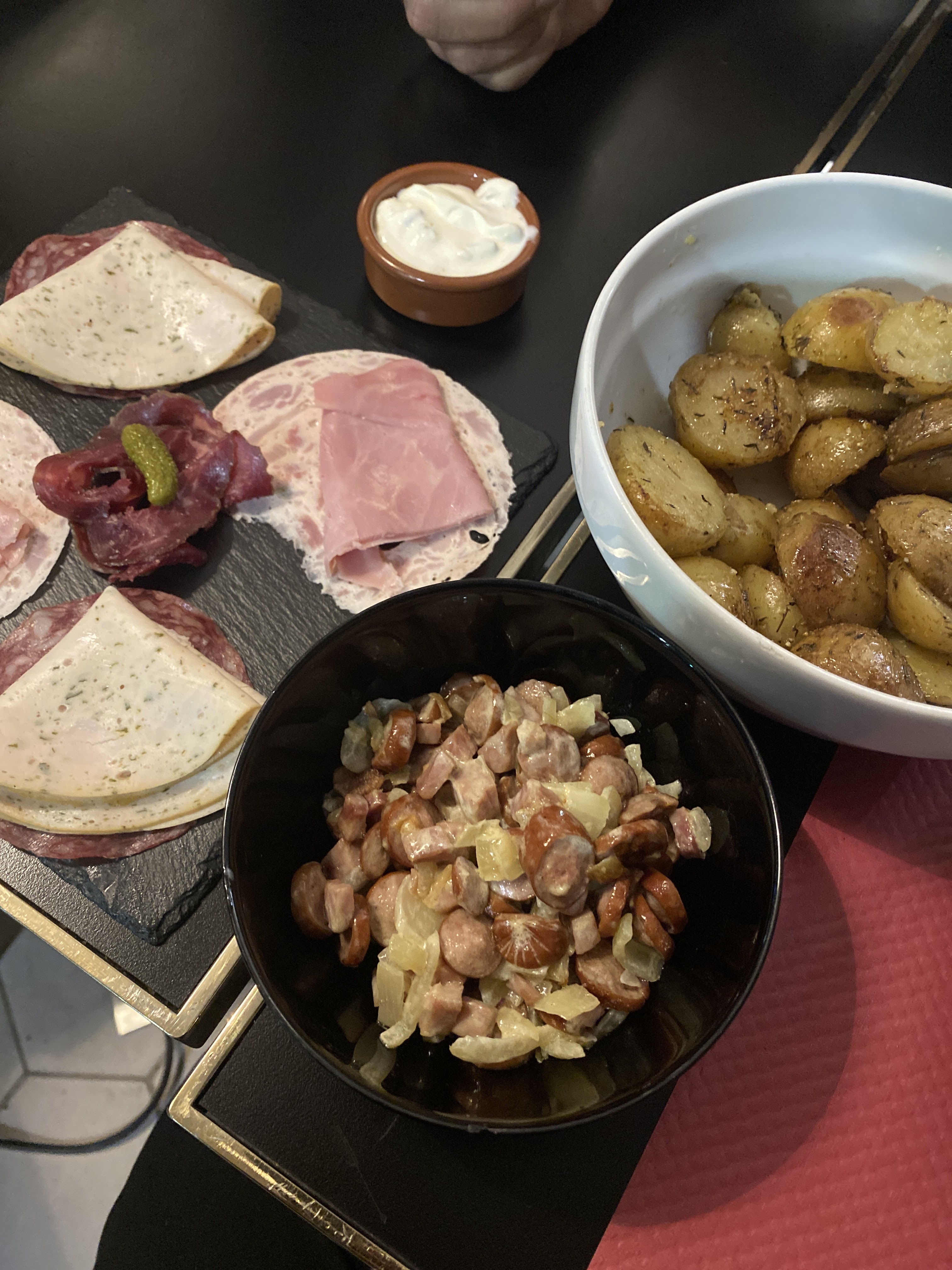 De la fondue Des gratins De la raclette et des tas de charcuteries halal J'y retrouverai Merci a l'équipe très sympa