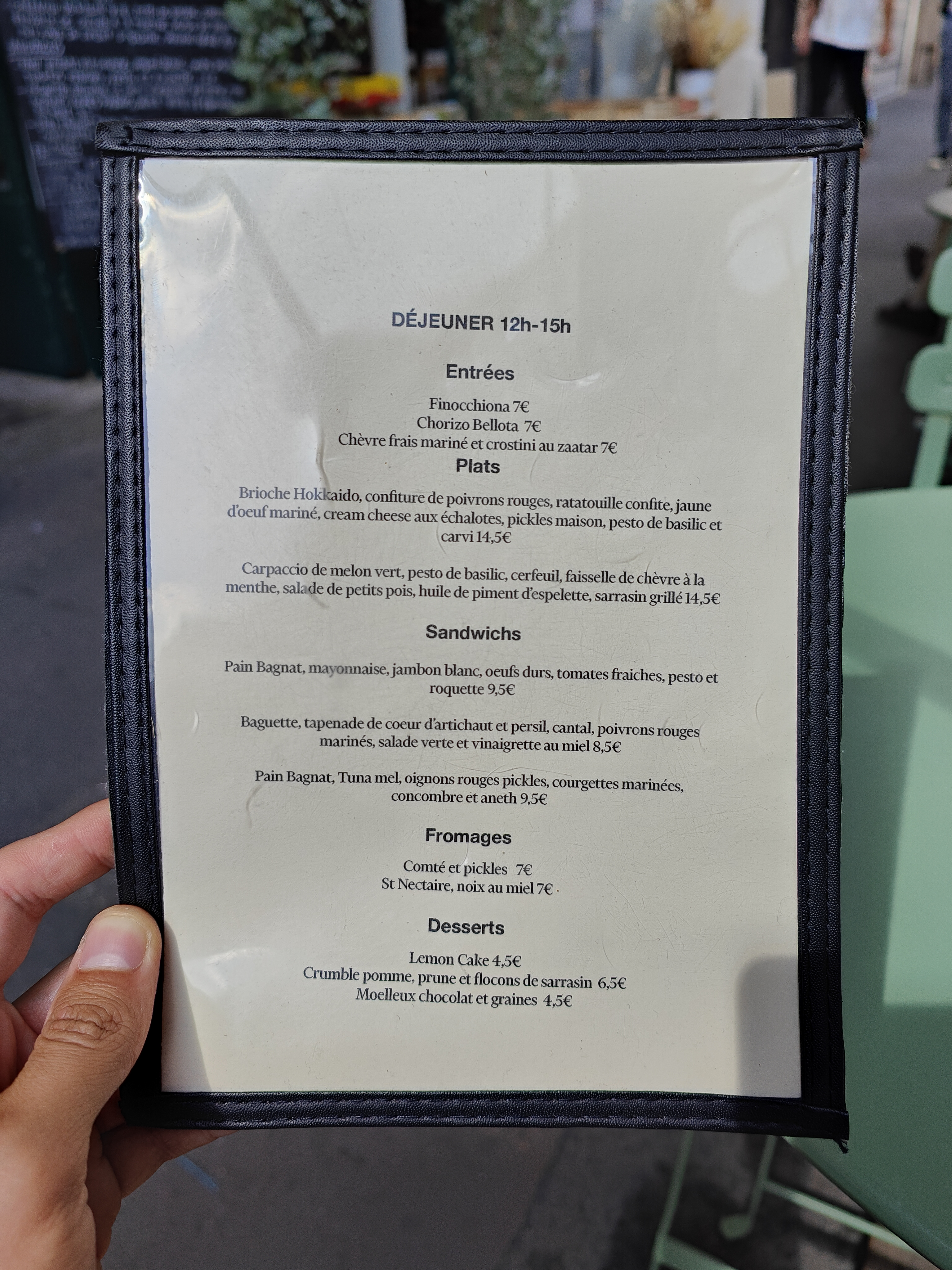 J'ai adoré ! Je suis tombé sur cette adresse un peu au hasard en me baladant La serveuse, pas Française je précise, est super attentionnée et adorable (Katy si ma mémoire est bonne !), super accueil, j'espère que vous la garderez Elle m'installe en terrasse et me donne une bouteille d'eau directement, pas toutes les adresses le font ! J'ai pris un sandwich avec des poivrons marinés (le deuxième sur la carte), très bon et très frais ! Je reviendrai pour toi 😊mais aussi pour tester les autres plats 🫢 Je recommande d'essayer 👌