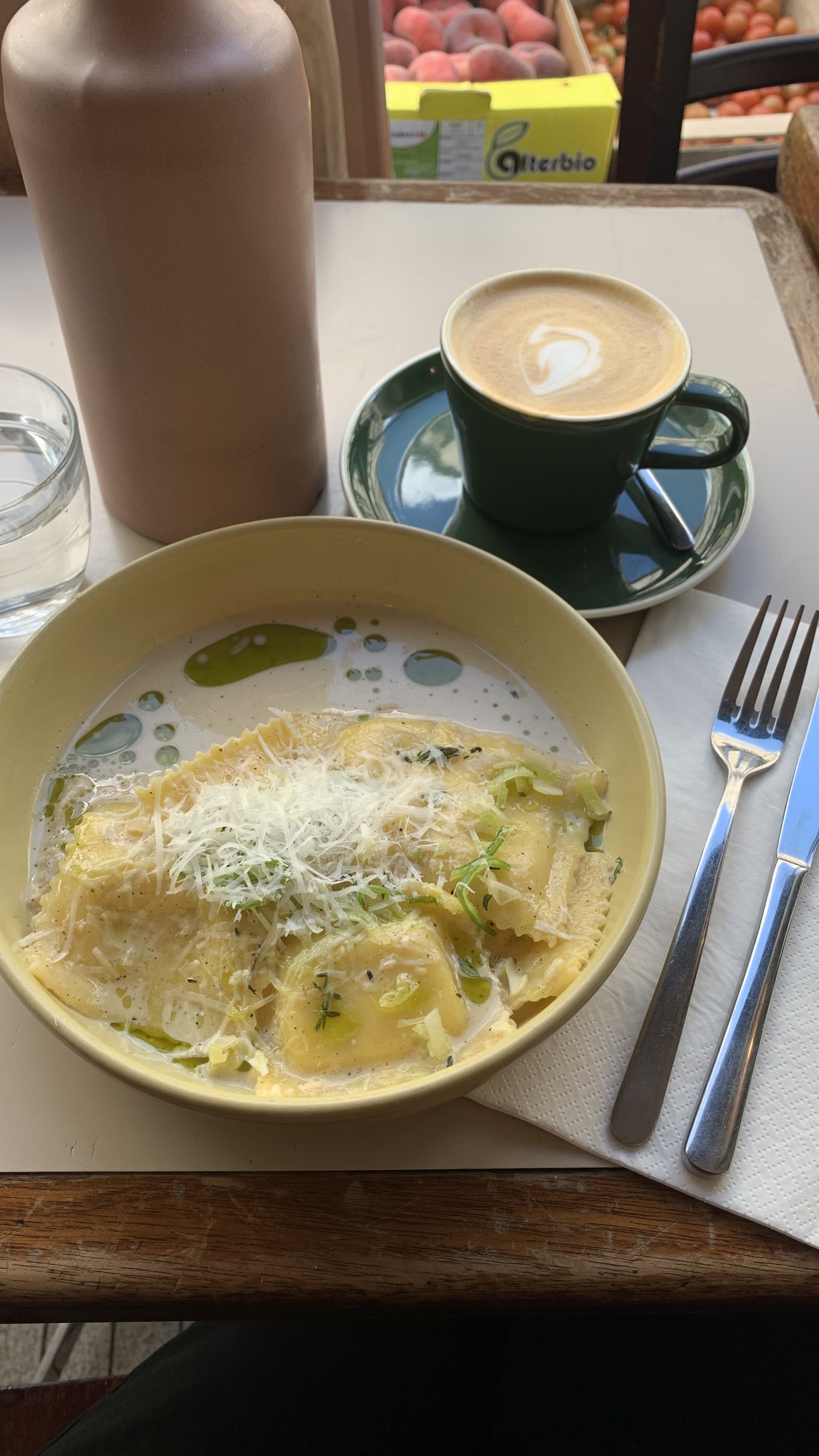 La nourriture et le café sont tous incroyables !! Facilement le meilleur déjeuner que j'ai eu à Paris? Les raviolis et le gâteau au chocolat recommandés par le propriétaire - tous deux délicieux. Recommande fortement!