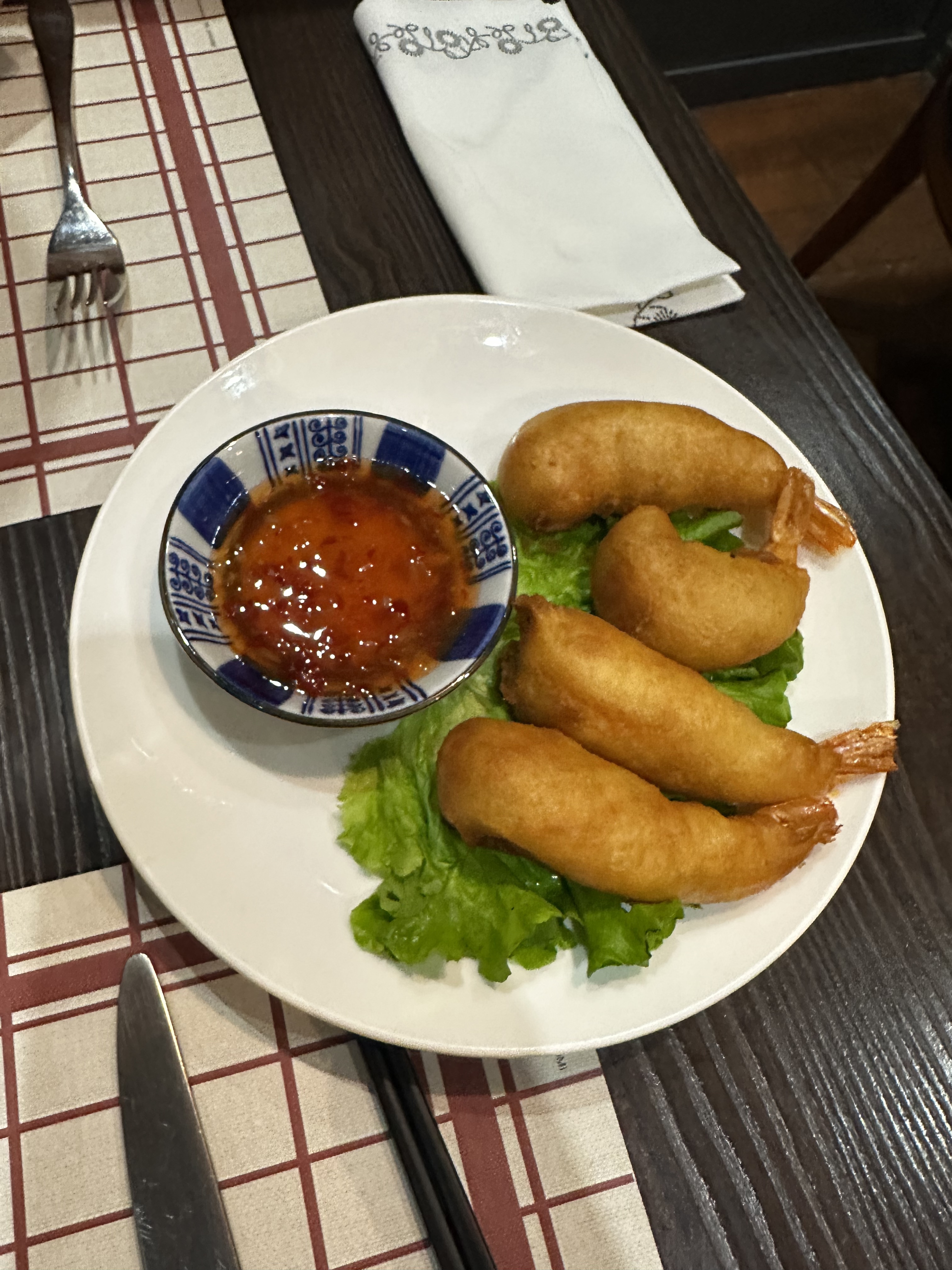 Crevettes sauce piquante excellentes ! Tout à l'air bon. Bien cuisiné ! Belle présentation. Cadre agréable. Je reviendrai !