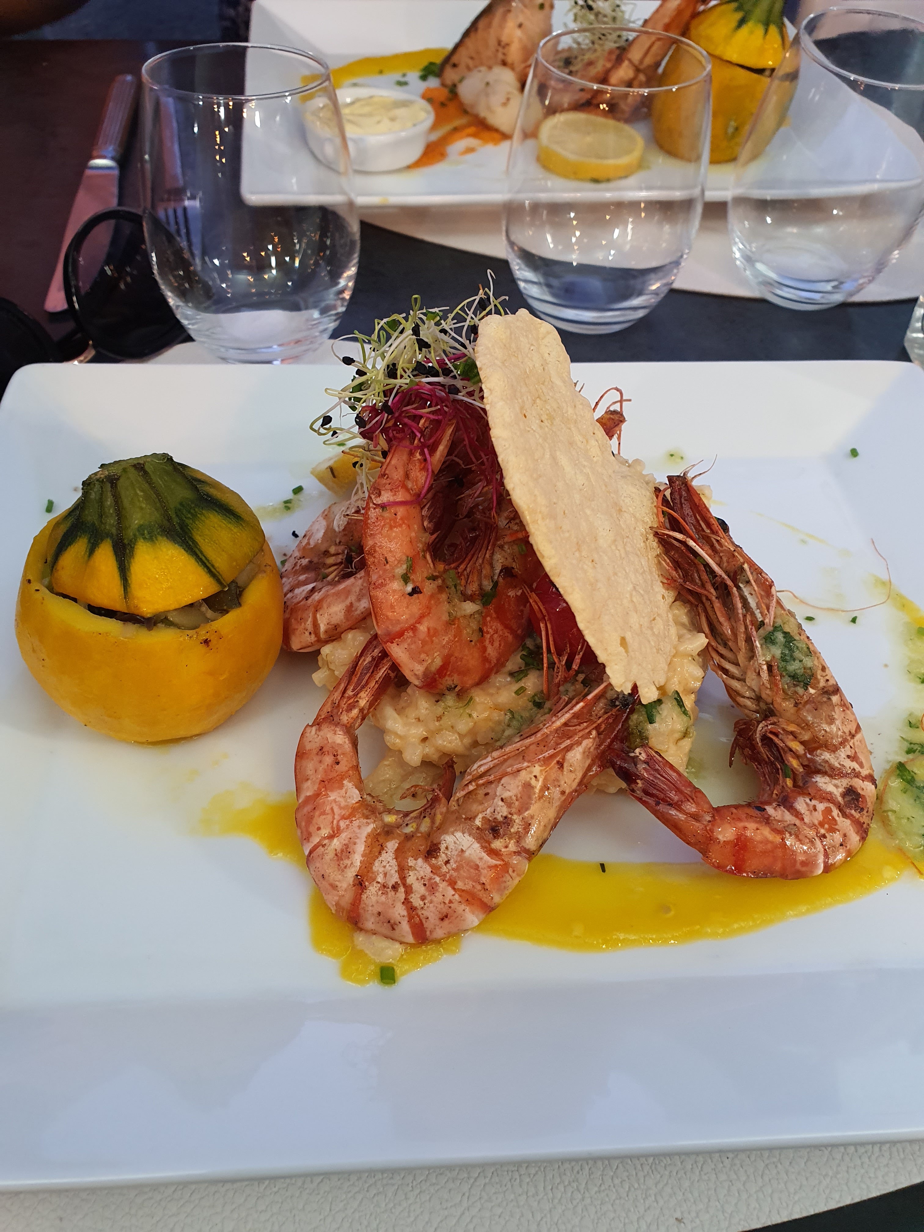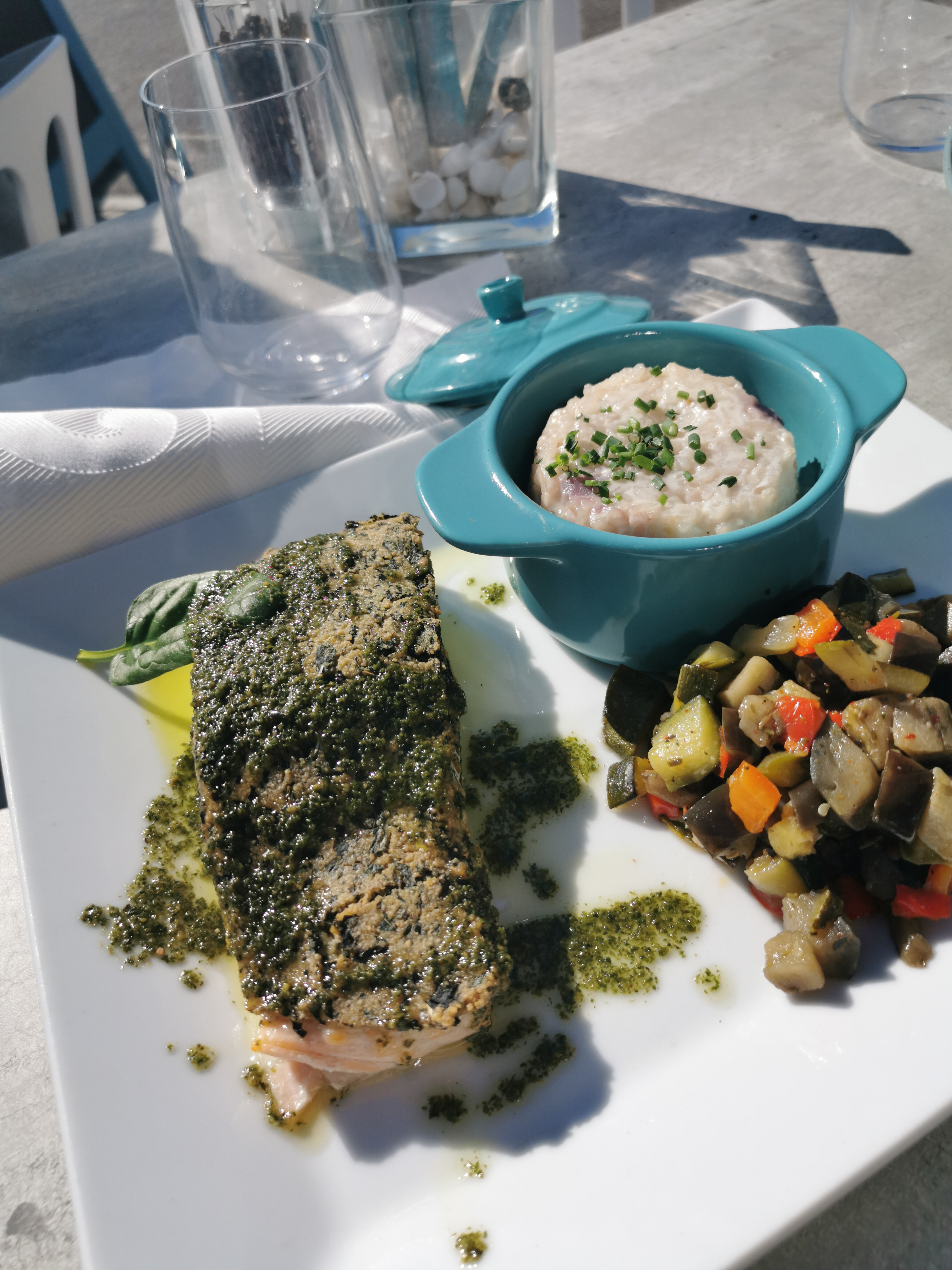 Merci pour ce repas délicieux : daurade avec petits légumes, risotto, straciatella, amandes, cacahuètes…un Vrai Régal et dessert : pain perdu de brioche avec chantilly, caramel : top ! + café. Le tout 19€ 🤪. Joli cadre, sur le port, serveuse sympa, musique. Vraiment rien de négatif. On a trouvé le resto de nos week-ends ! Merci Angélique
