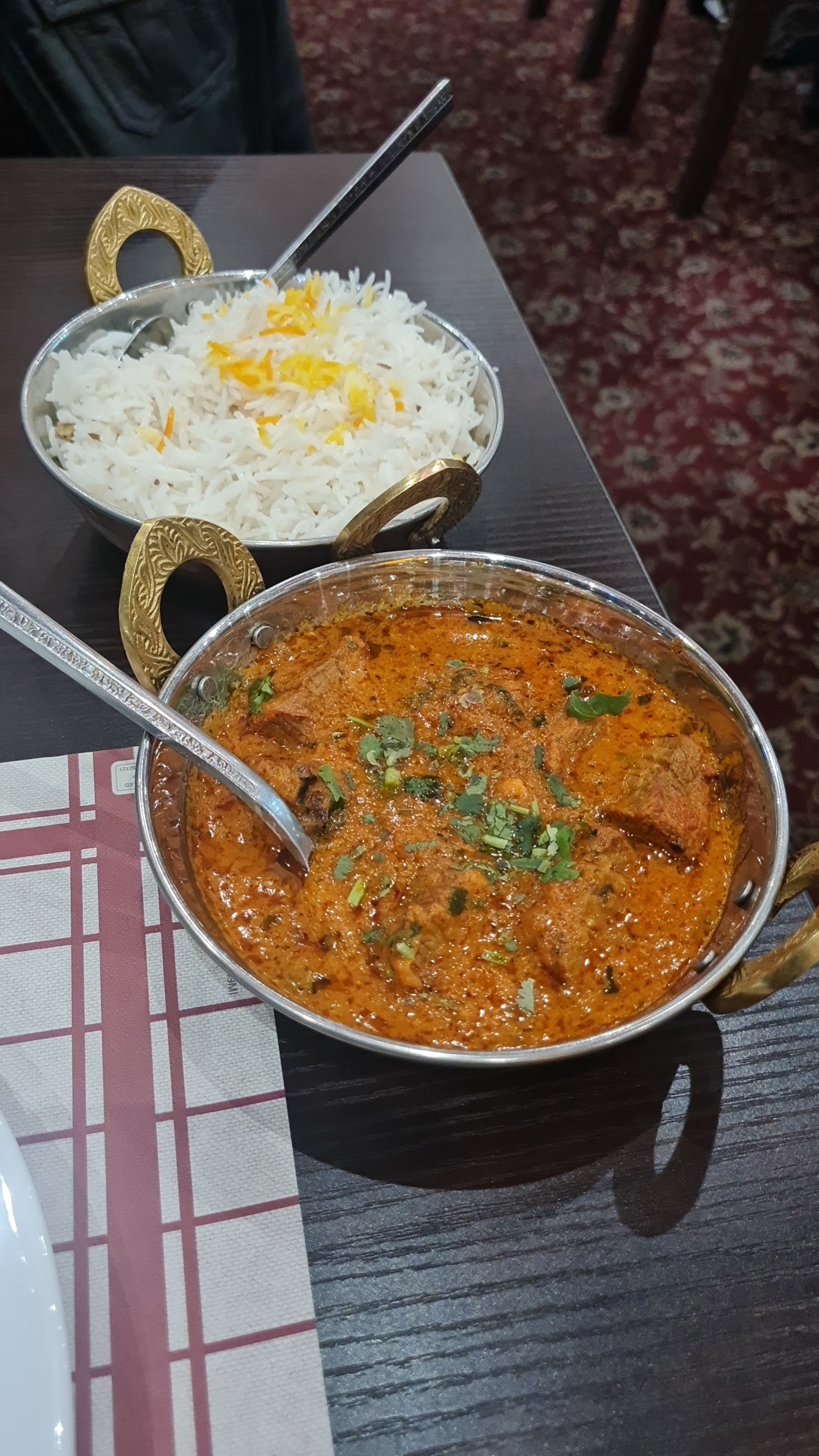 La deuxième dans ce restaurant de spécialité indienne et pas déçus ! Accueil chaleureux, restaurant très propre ( la salle à manger, le sol les murs, la vaisselle tout est super propre, même les sanitaires) Les nan cheese au top. L’agneau aux épinards super délicieux , hindi ghost aussi. Bcp de choix bcp de plats à découvrir pour les prochaines fois. Si vous êtes à deux optez à prendre 1 ris non pas deux car le plat de riz peut suffit pour deux , vous pouvez en rajouter si vous en voulez. Je vous recommande fortement ce restaurant, parmi les meilleurs au centre ville.
