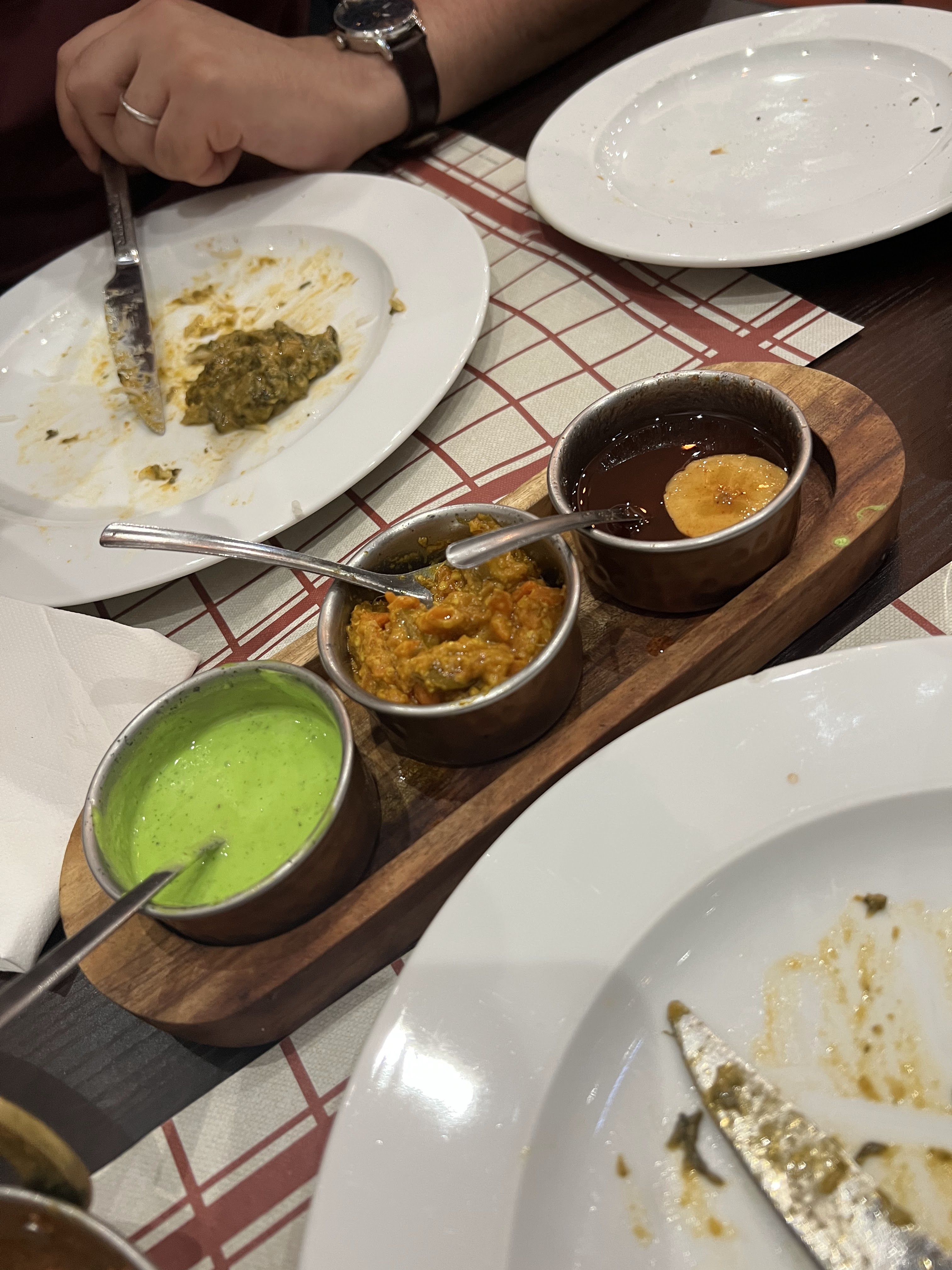 Je m'attendais à mieux. Pour le + un bon accueil client. Pour les plats: pain au frommage exellent et lait salé très bon. Pour les moins: demander à la commande, 3 plats principal non piquant, résultat tous les plats piquants !!! Riata entrée au yaourt trop liquide et une épice qui gâche tous le goût du Riata. La sauce rouge des pains trop liquide et en gros c'est du sucre rouge. La glace quasiment aucun goût, aucun intérêt. Habitué à manger indien, j'avoue être déçus.