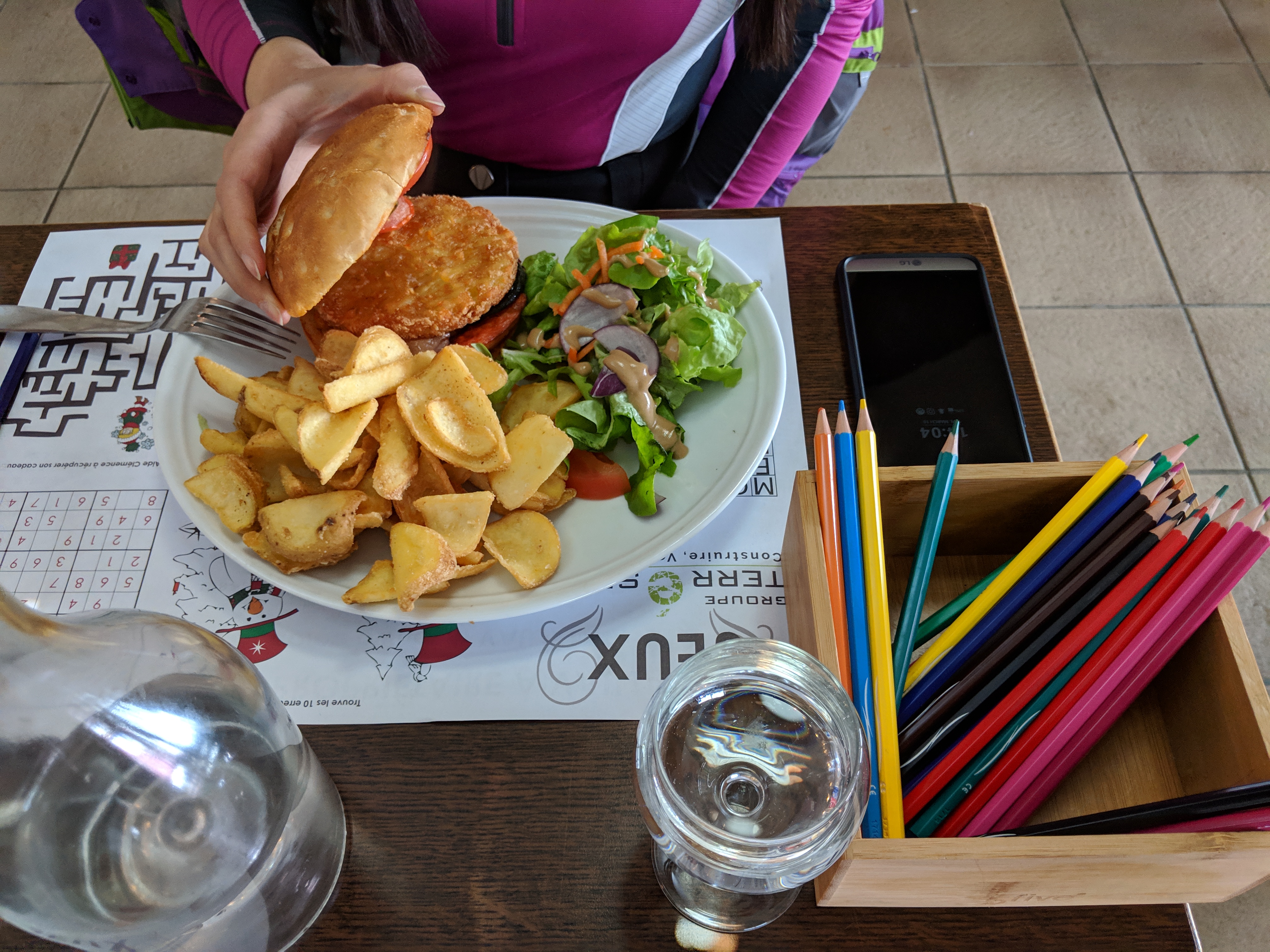 Excellent service, des tonnes d'options et confortable. Un peu cher mais vu la taille des assiettes c'est un excellent rapport qualité/prix. Les chiens semblent autorisés à l'intérieur, un gros malamute était à table derrière nous et recevait de l'eau dans un bol. Des crayons étaient disponibles pour dessiner/jouer aux jeux au dos du napperon en papier (? Presque certain que ce n'est pas le bon mot. Un objet en papier sous l'assiette pour faciliter le nettoyage). Burger végétarien à disposition et frites délicieuses. Je vois à peine ce que cet endroit pourrait faire de plus étant donné qu'il se trouve à flanc de montagne.