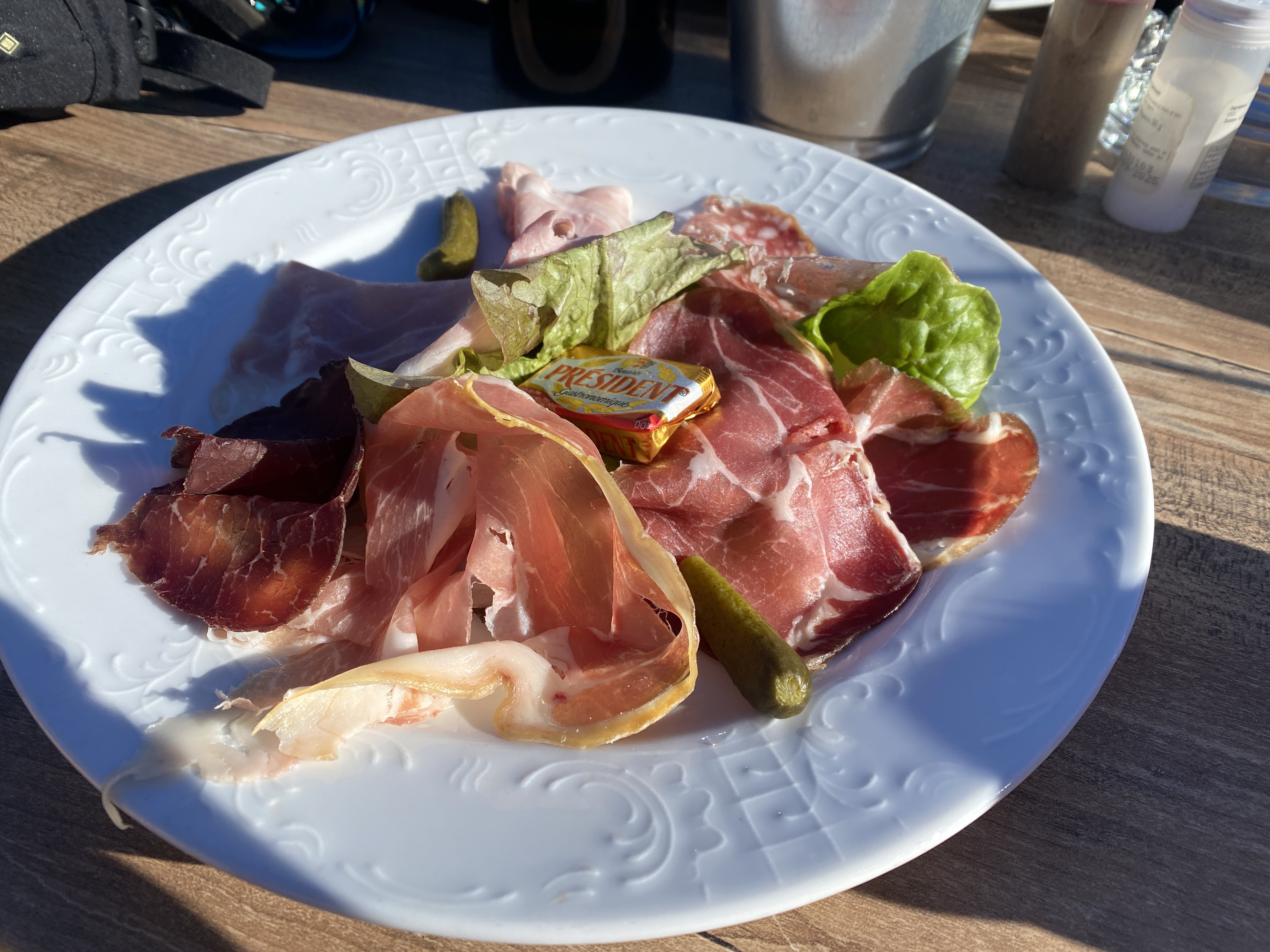 Sur les pistes, on a mangé dans une petite cabane de 6 personnes avec la spécialité de la maison, Très bon restaurant.