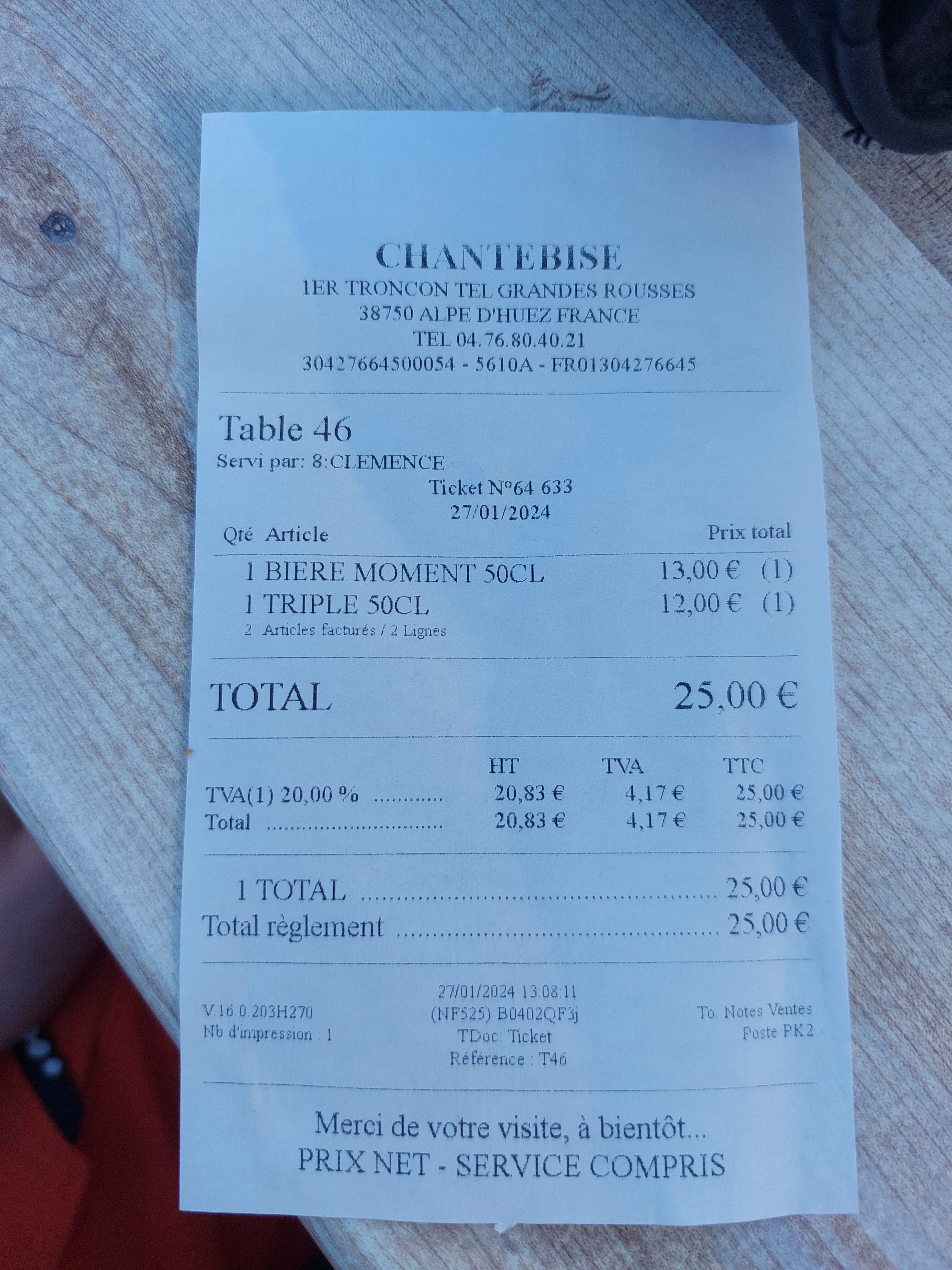Je ne sais pas comment c’est hors période de festival (TML Winter), mais pour y avoir mangé aujourd’hui, je peux vous dire que c’est une aberration ! 50€ pour un menu plat + dessert. - Le pain est dur comme du béton. - Pas d’eau gratuite (pourtant obligatoire en France). - Les cuissons des viandes ne sont pas respectées et les accompagnements quasi inexistants. - La sauce servie avec les bavettes ont tourné et sont inmangeables. - Service désagréable et erreurs dans nos commandes. Enfin bref, c’est clairement de l’abus et une vraie insulte au monde de la restauration !